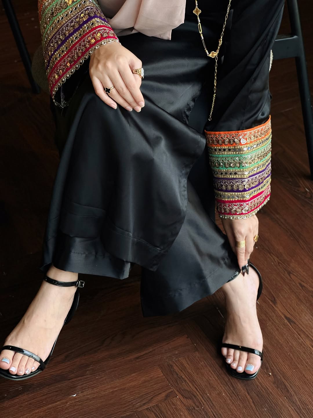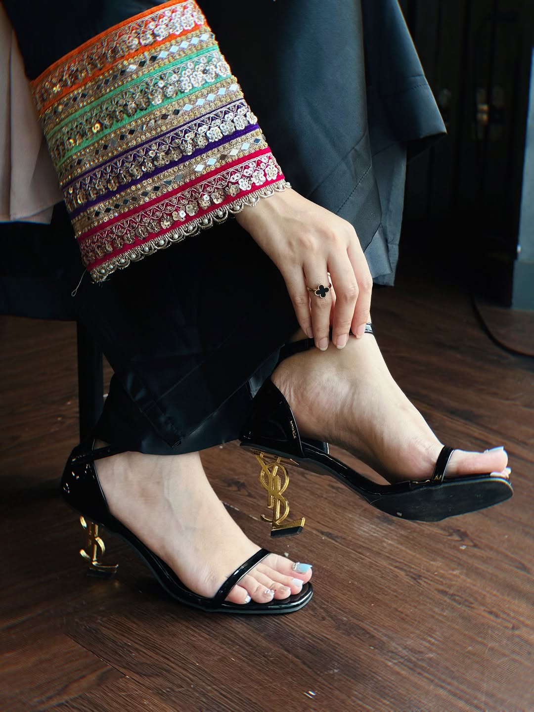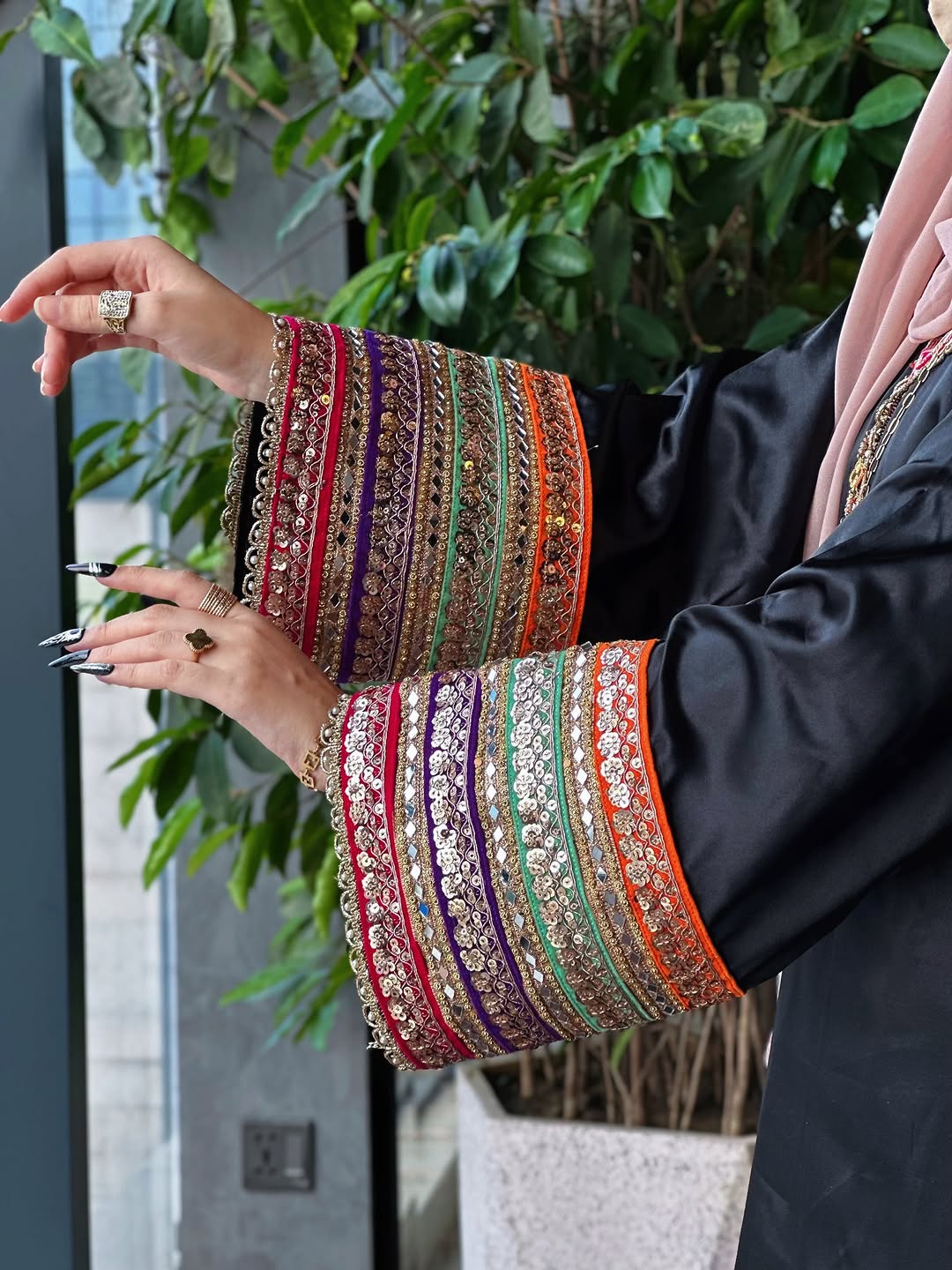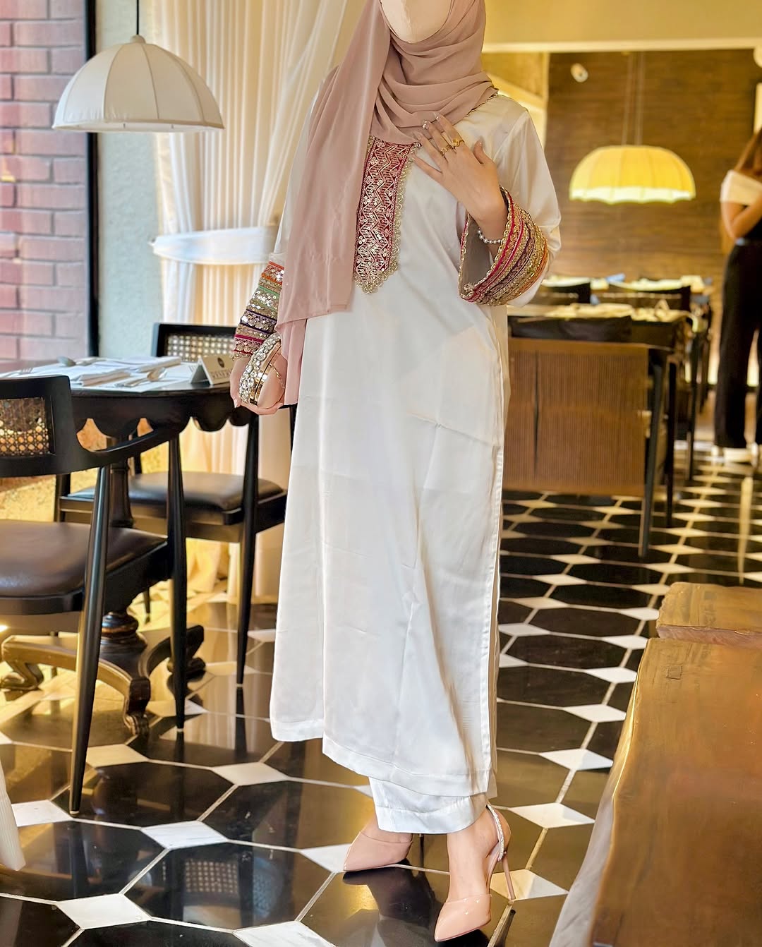 This cord set, designed by the Elite Fashion, features intricate multi gotta patti lace work on the sleeves and neck. The perfect combination of traditional and modern, this set adds a touch of elegance to any outfit. Expertly crafted and stylish, this set is sure to elevate your wardrobe.