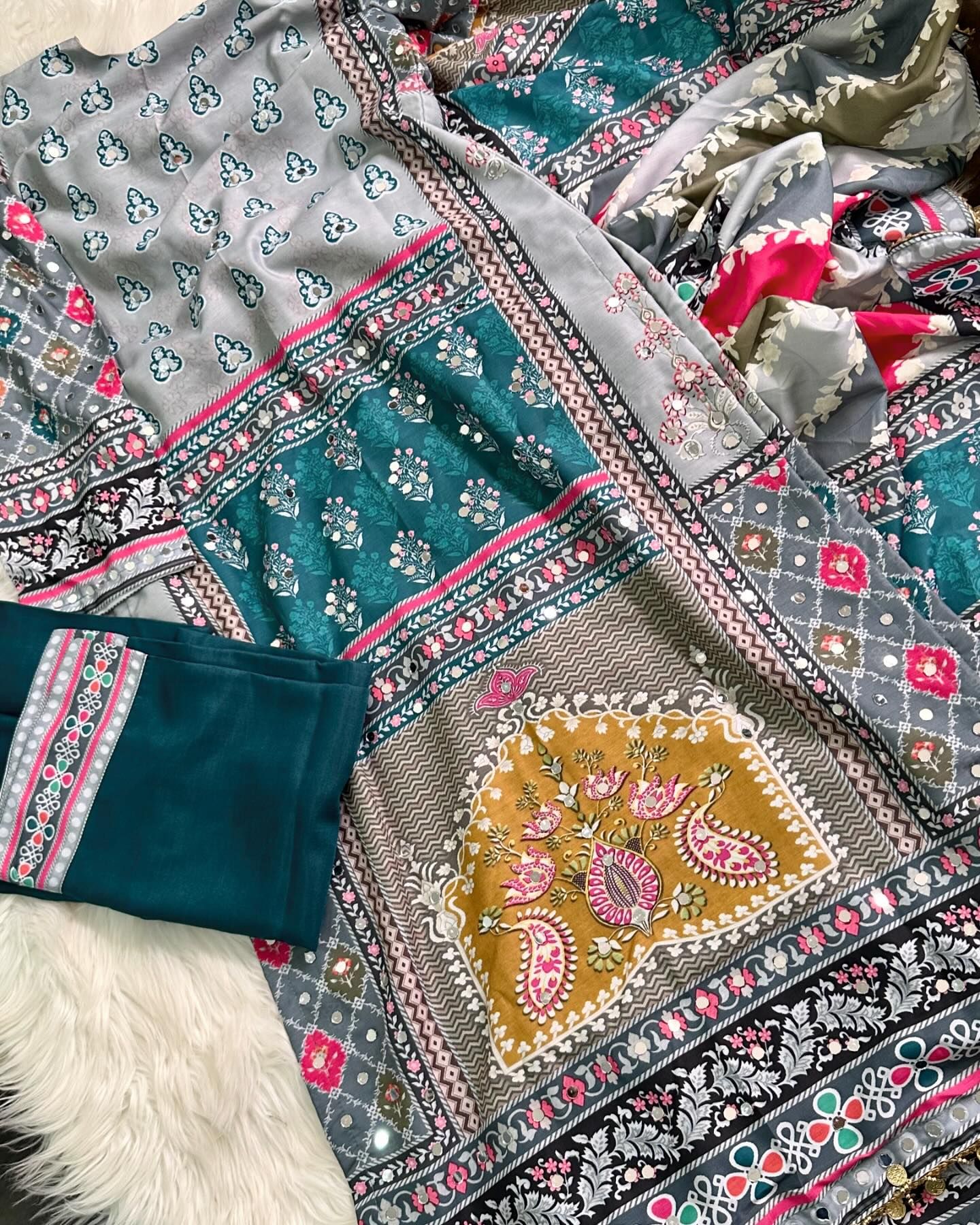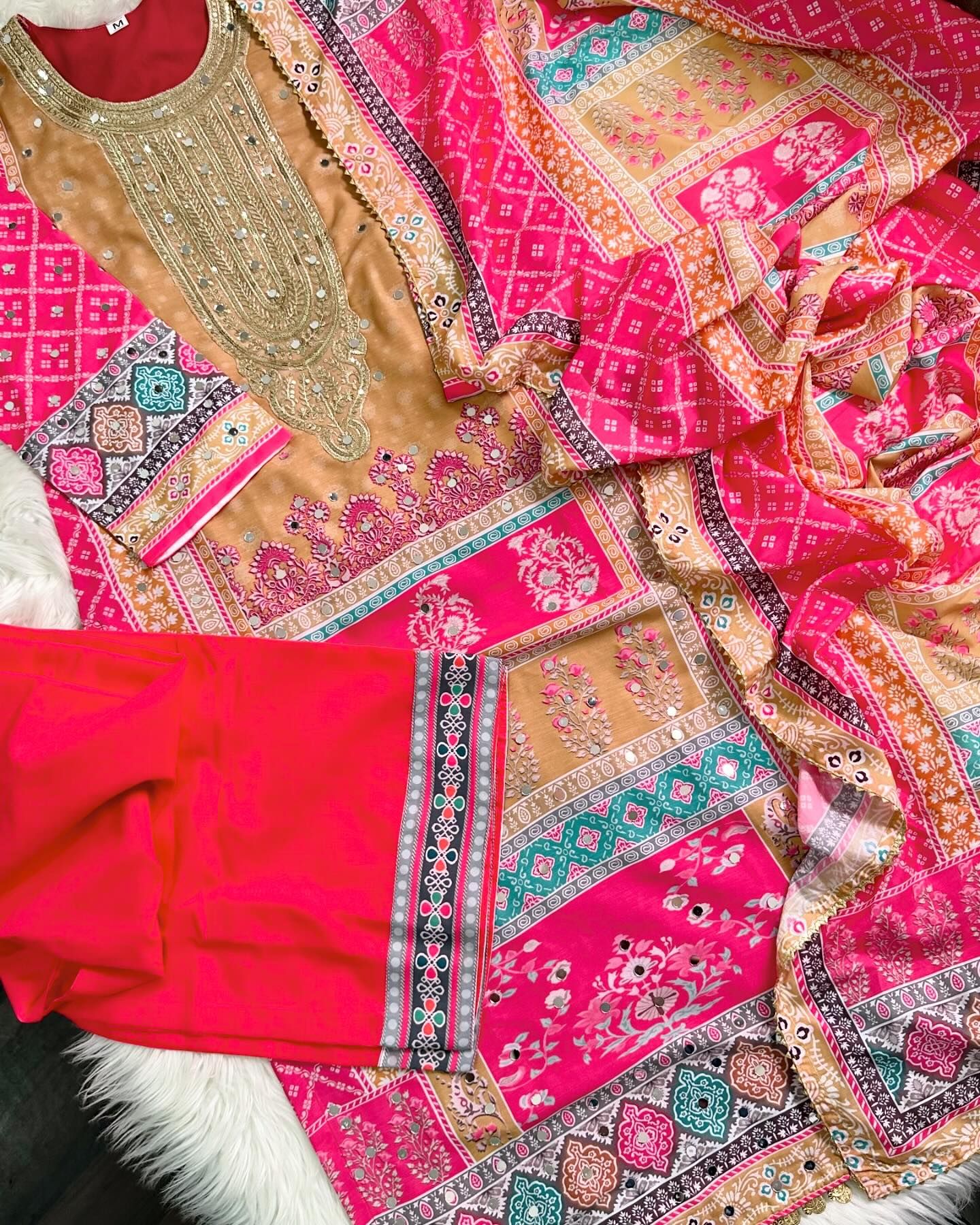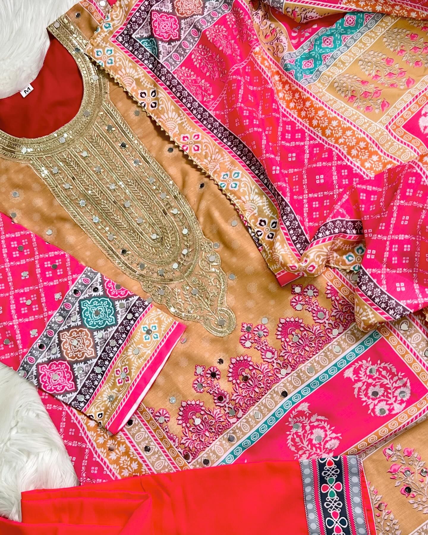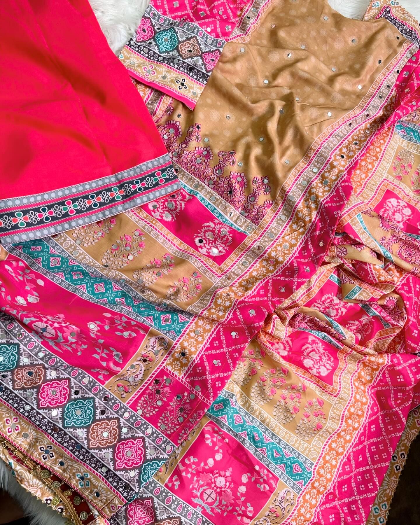 WORK : EMBROIDERY, PRINTED AND REAL MIRROR WORK ON BACK SIDE ALSO