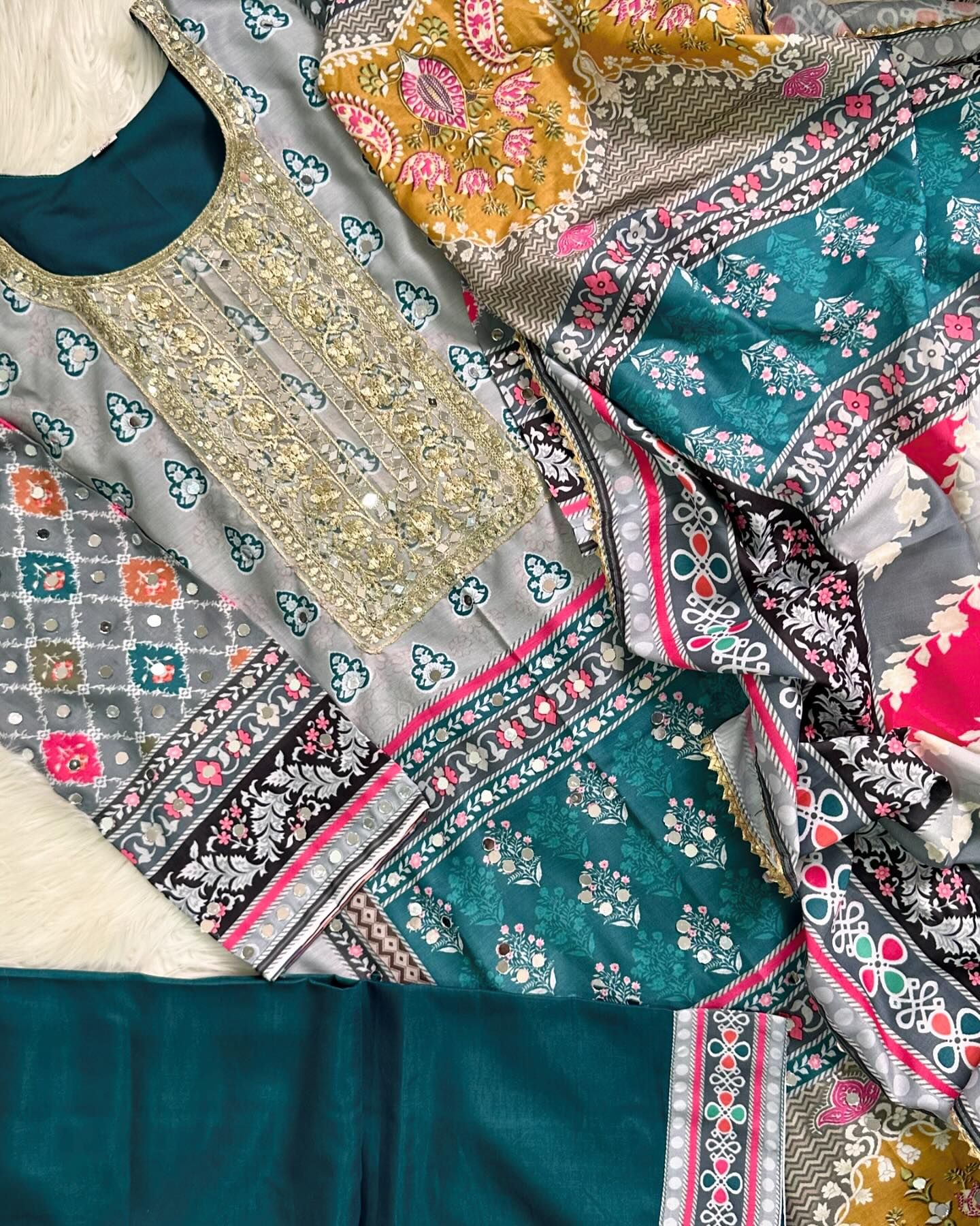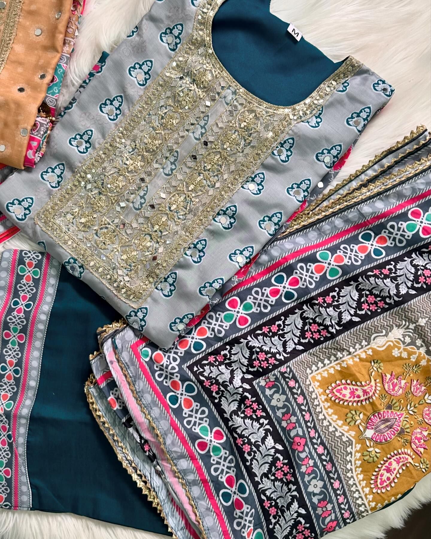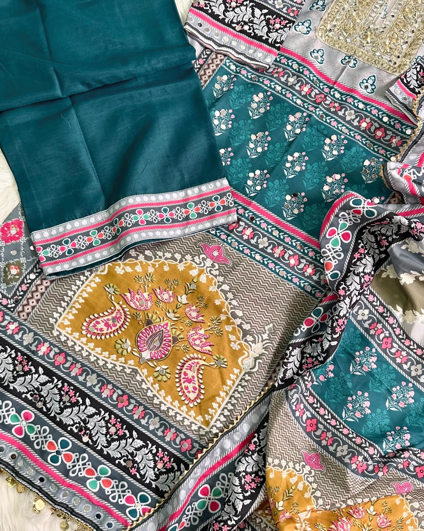 WORK : EMBROIDERY, PRINTED AND REAL MIRROR WORK ON BACK SIDE ALSO
