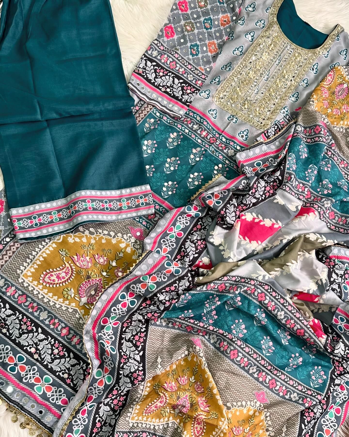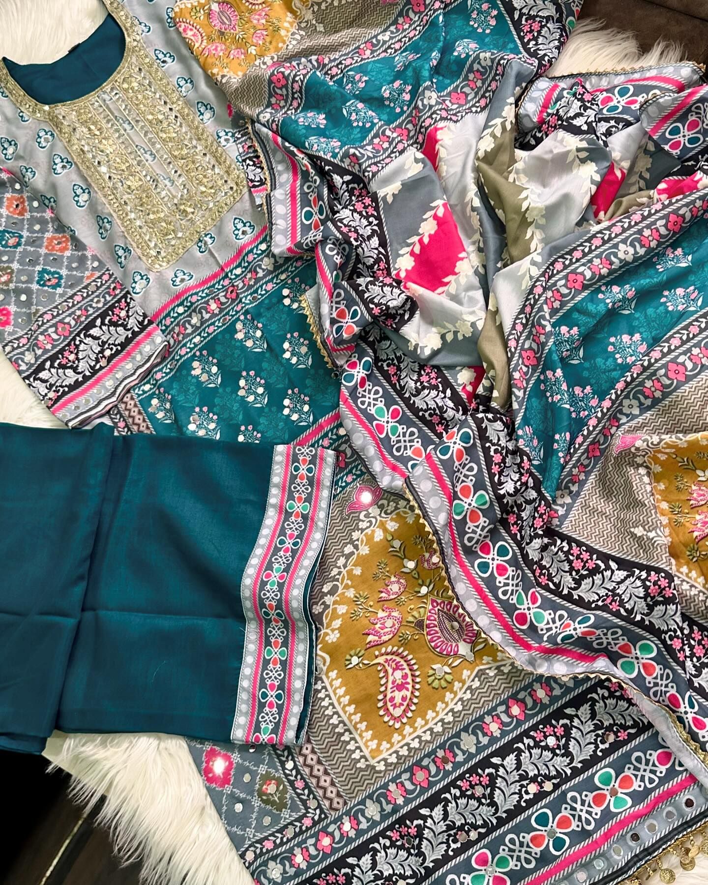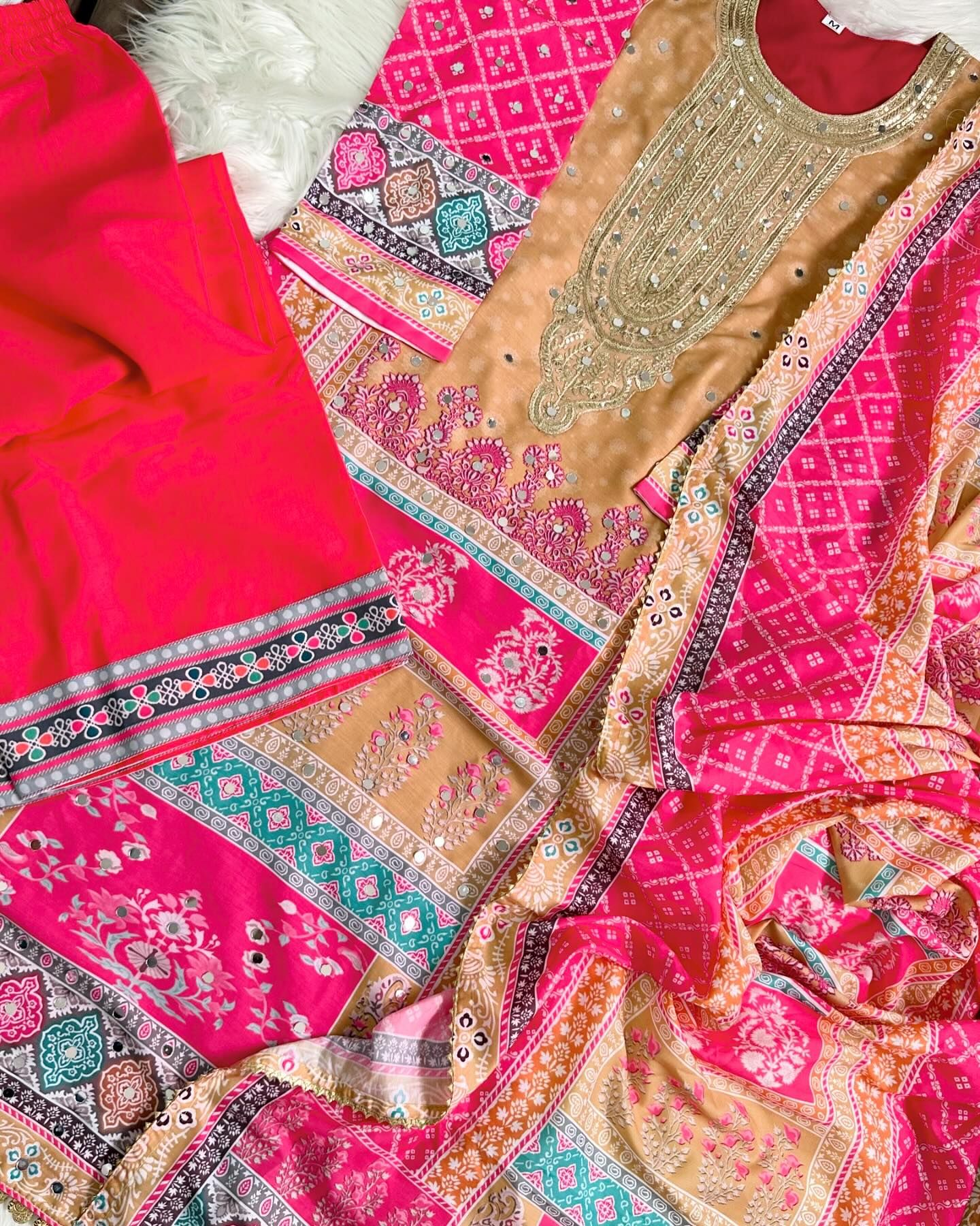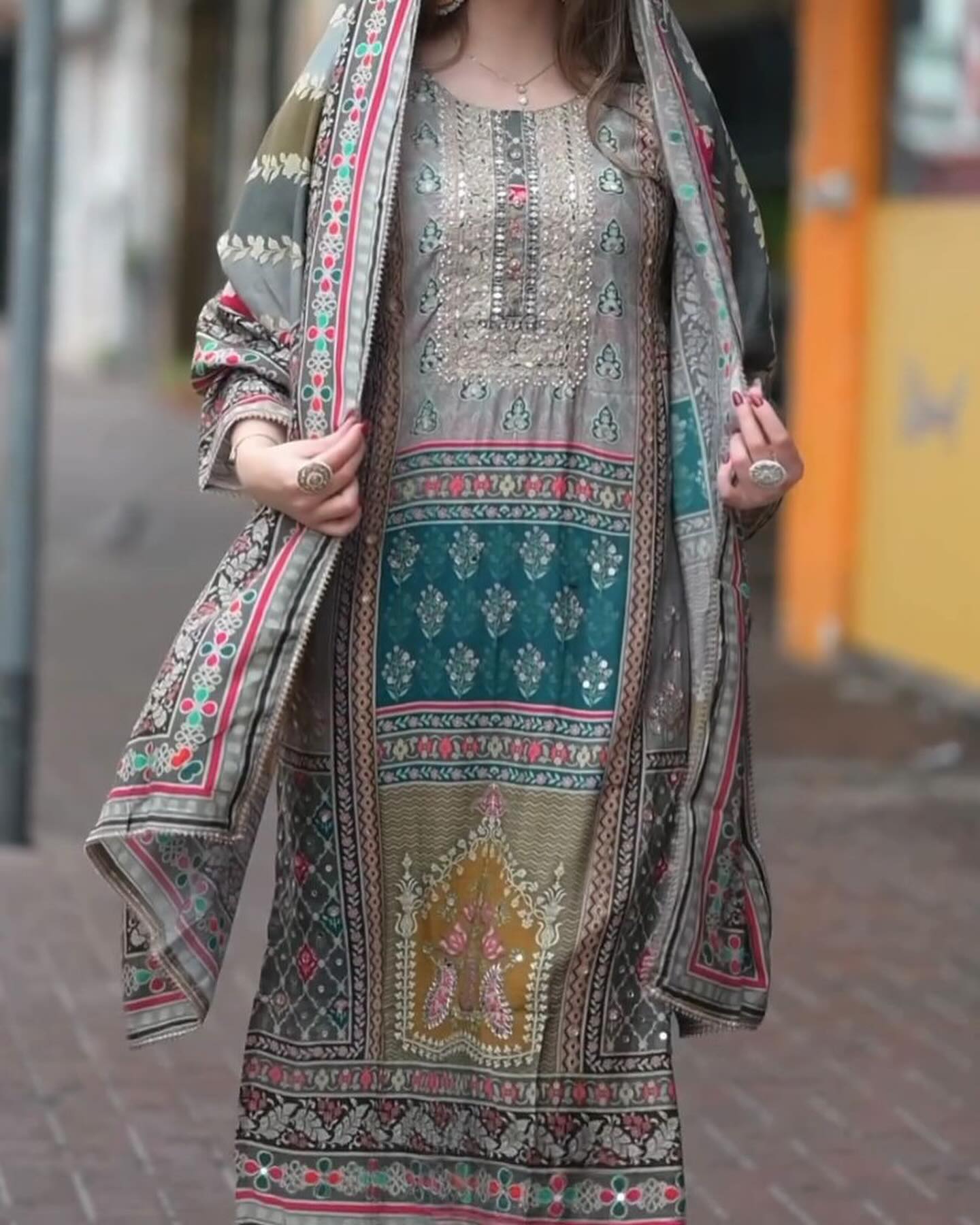 WORK : EMBROIDERY, PRINTED AND REAL MIRROR WORK ON BACK SIDE ALSO