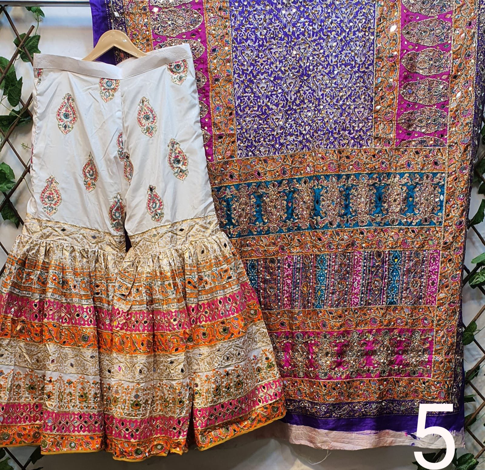Block print Garara with discharge print duppatta and plan silk shirt 3 piece