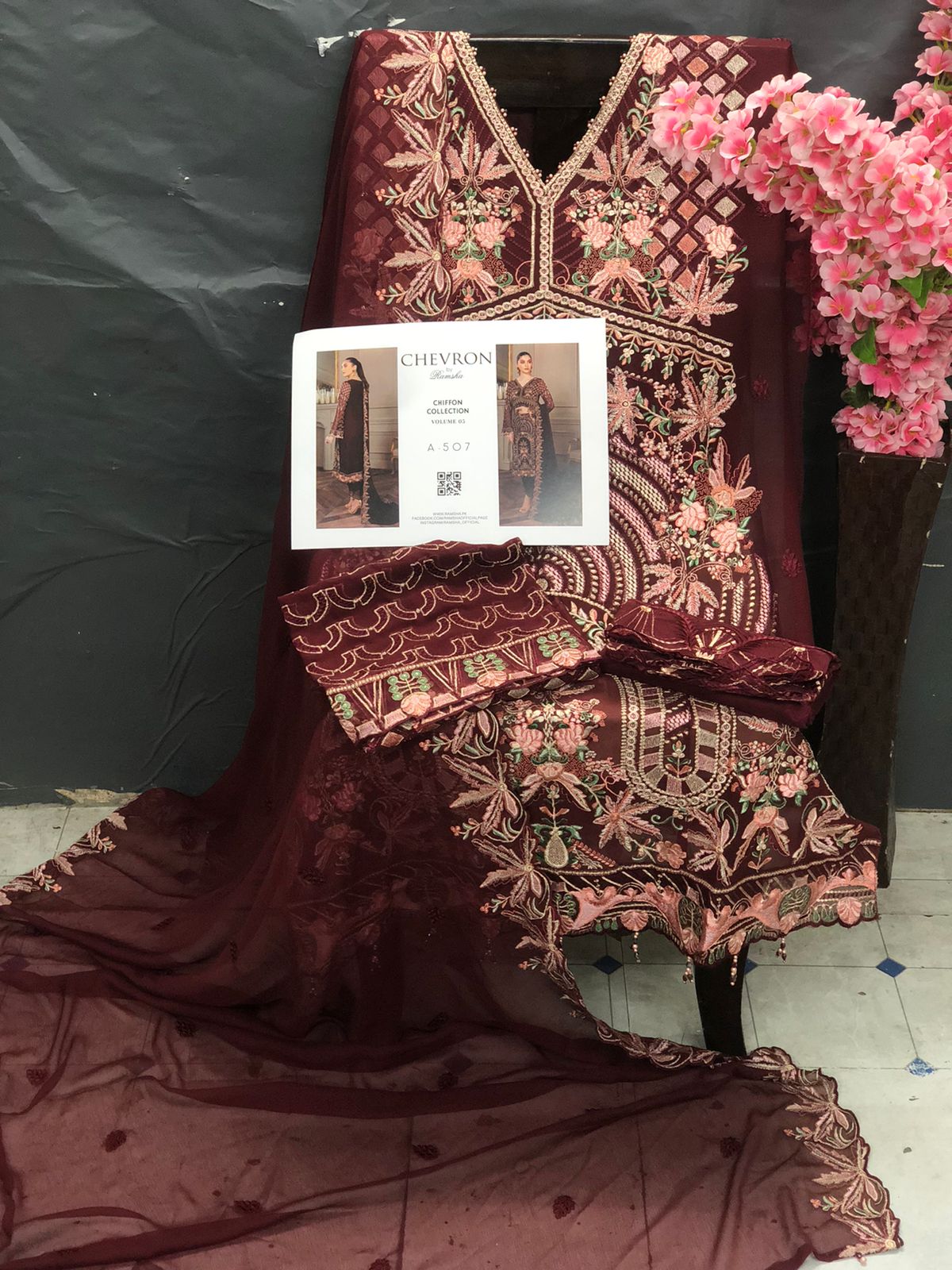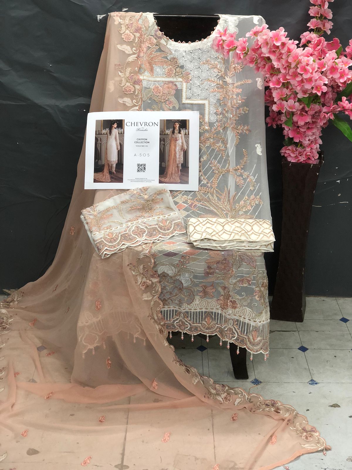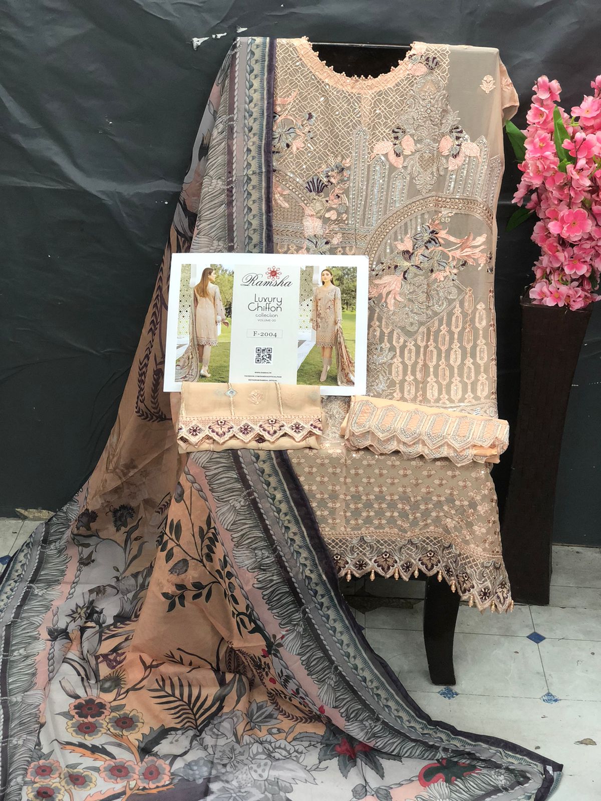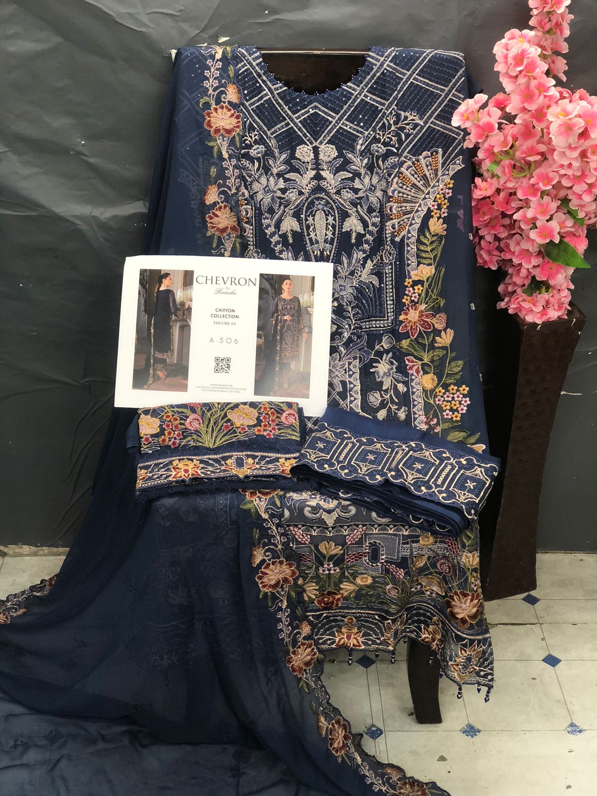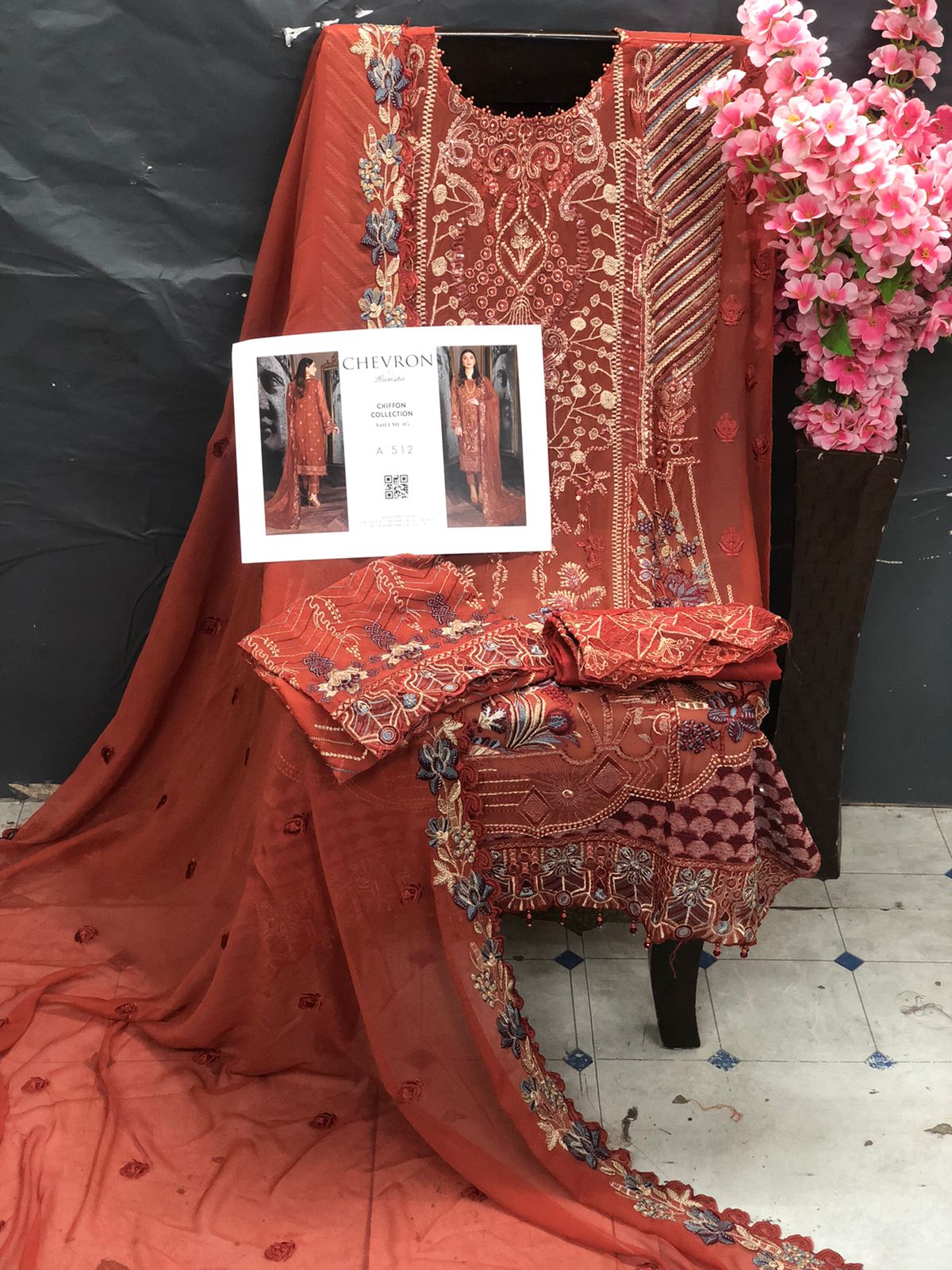 Semi stitched embroidered chiffon with embroidered chiffon / net dupatta