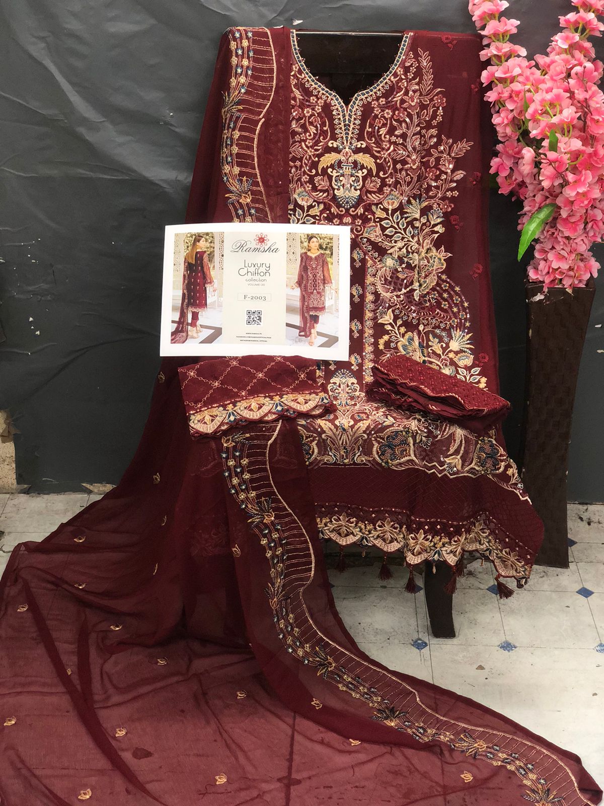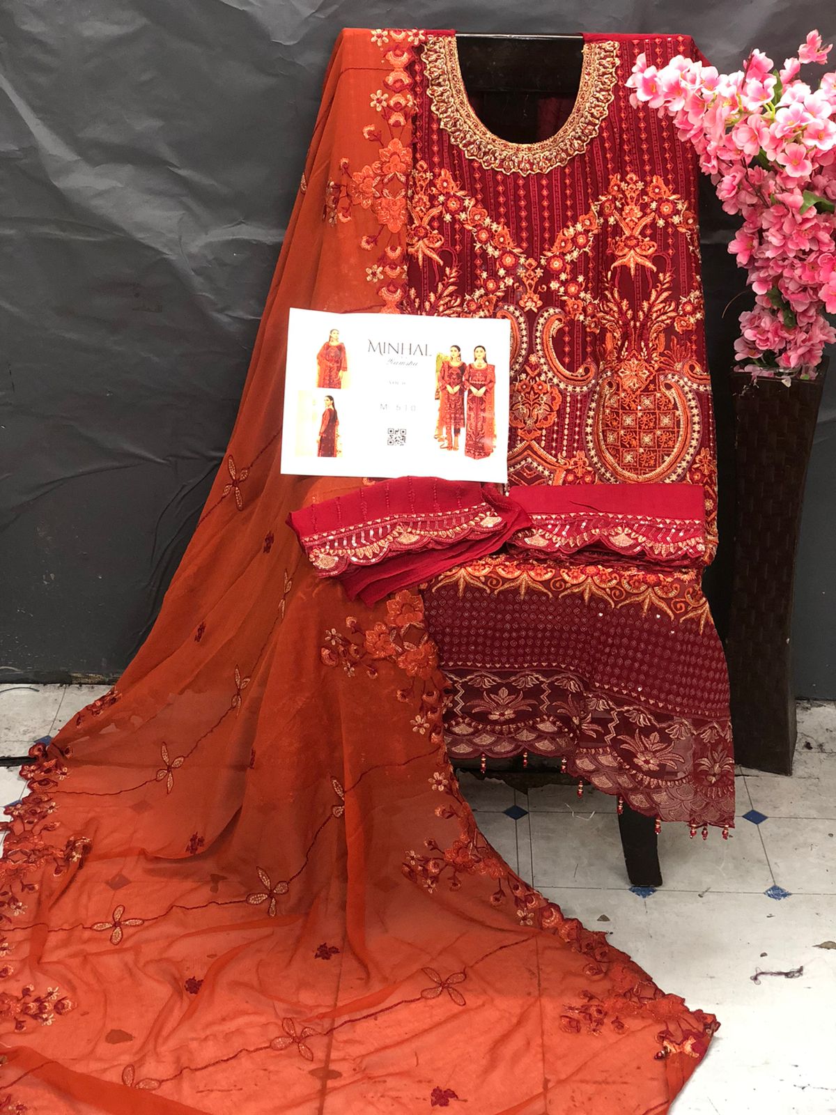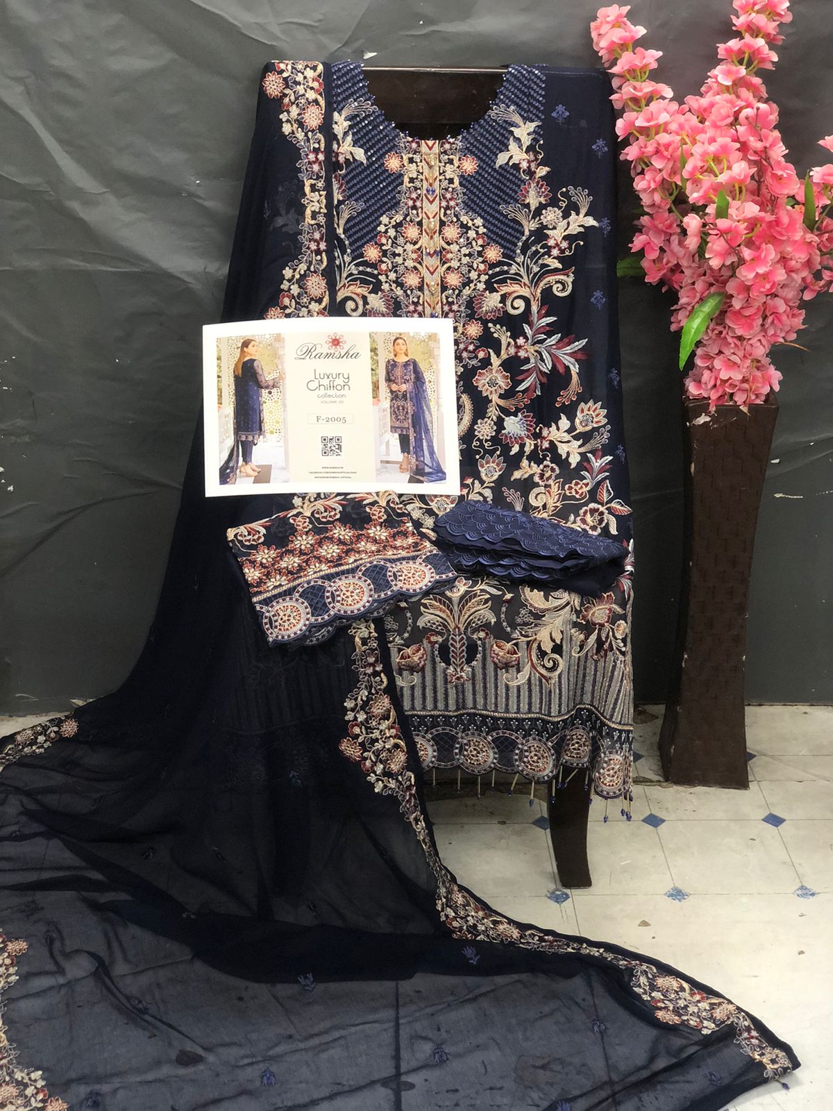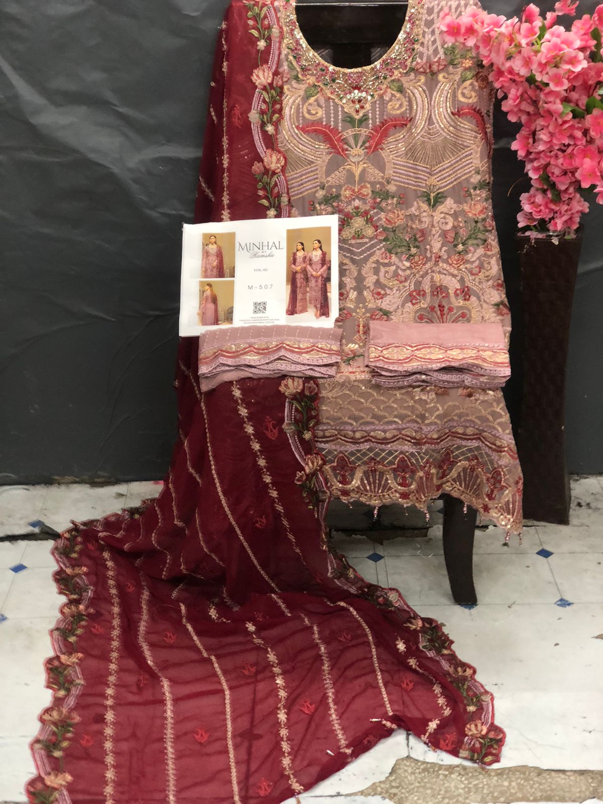 Semi stitched embroidered chiffon with embroidered chiffon / net dupatta