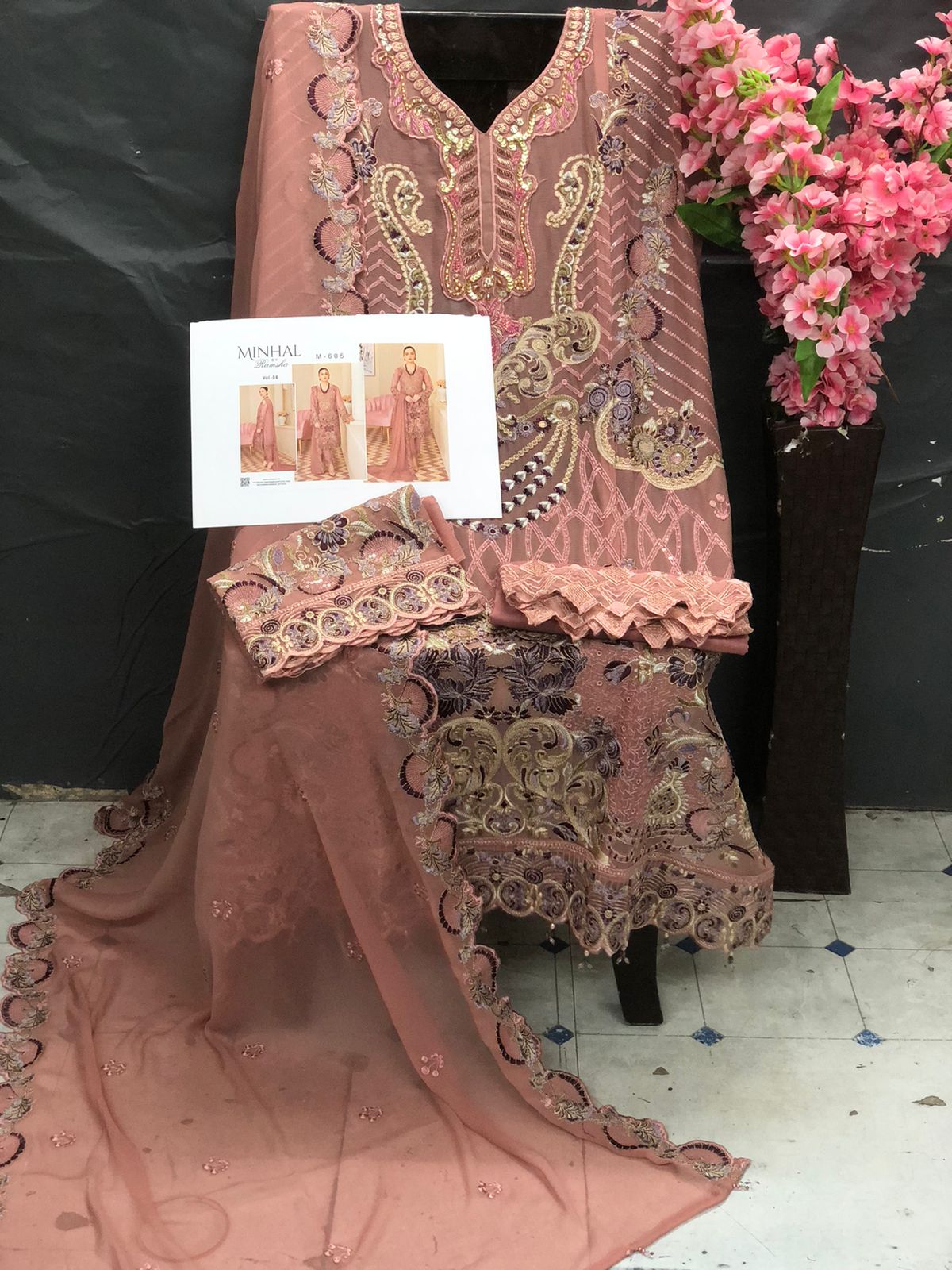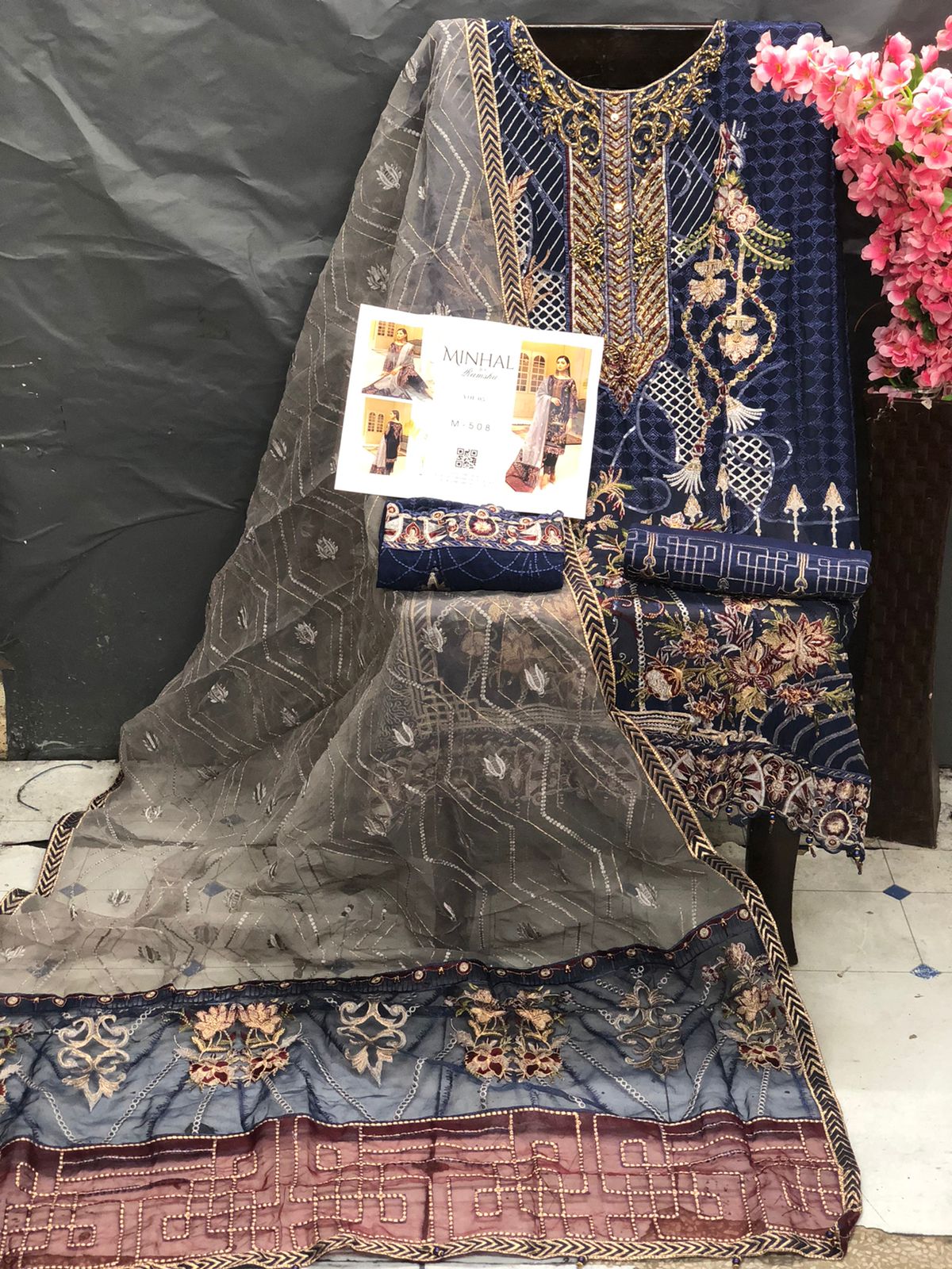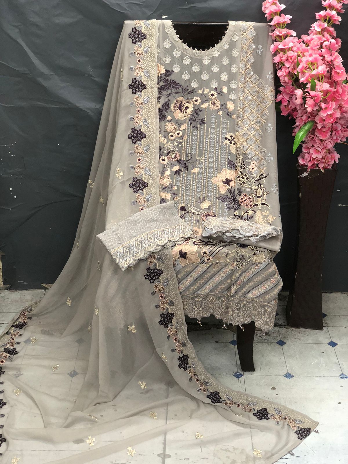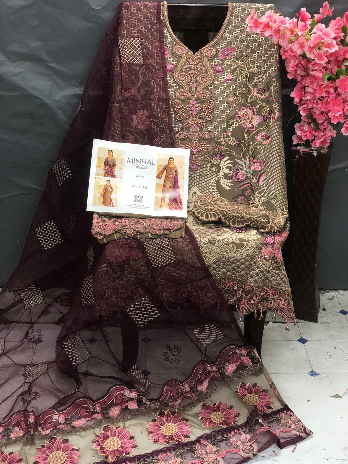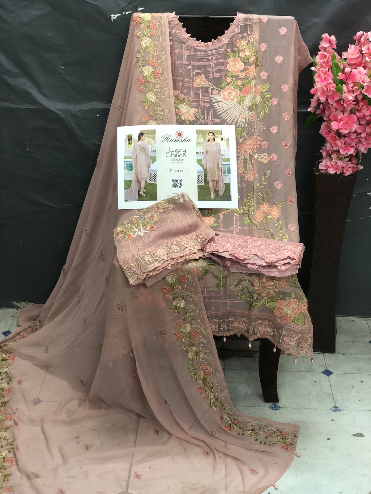 Semi stitched embroidered chiffon with embroidered chiffon / net dupatta