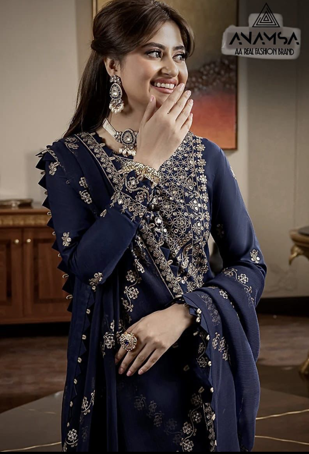 Heavy Georgette With Heavy Embroidered Very Beautiful Design And Sequence Work High Quality Material