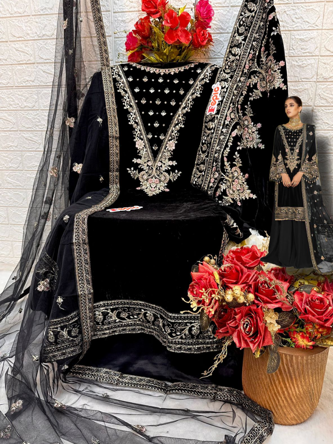 Top : VELVET EMBROIDERED