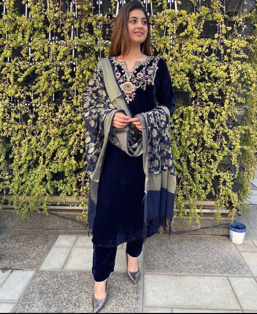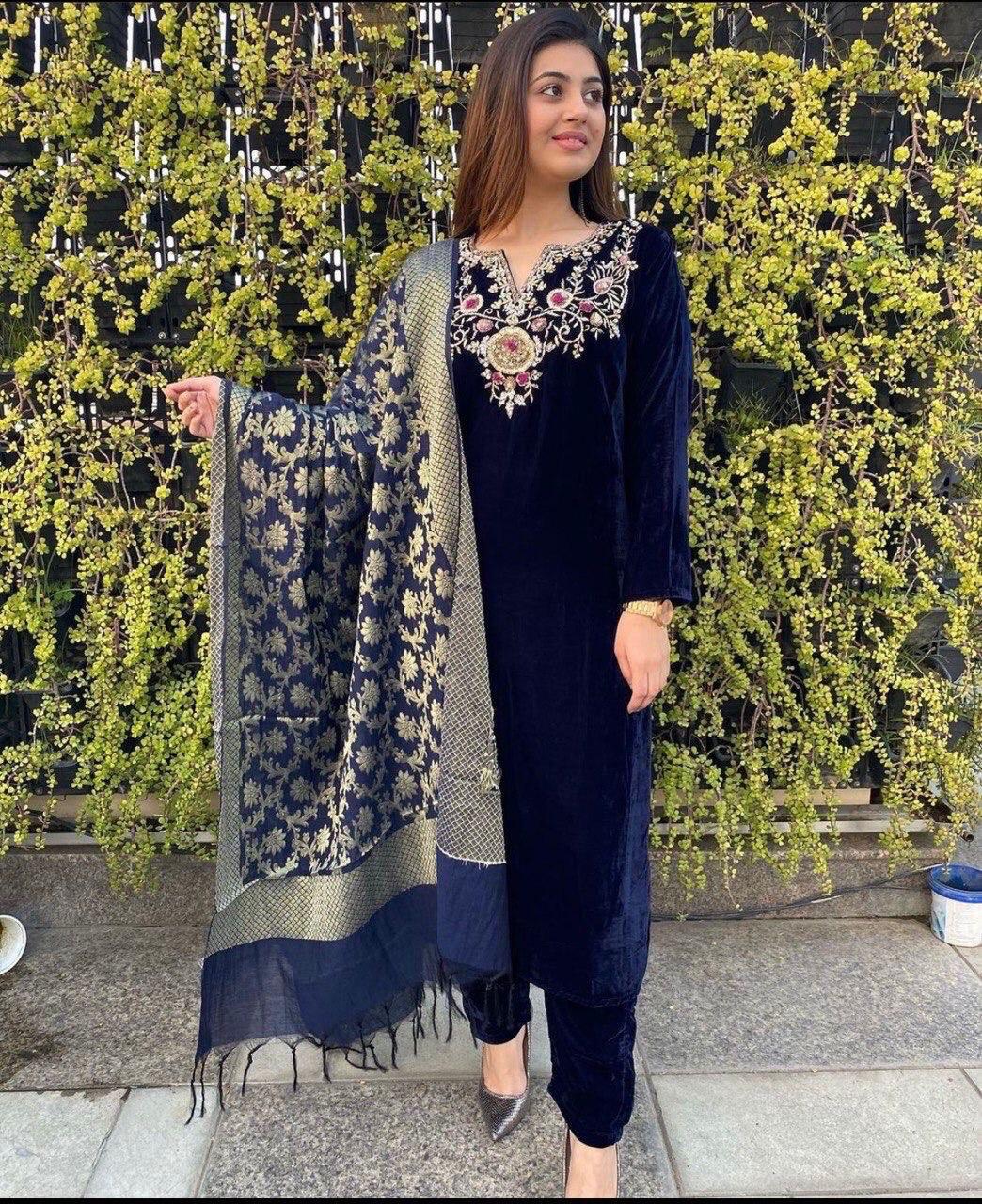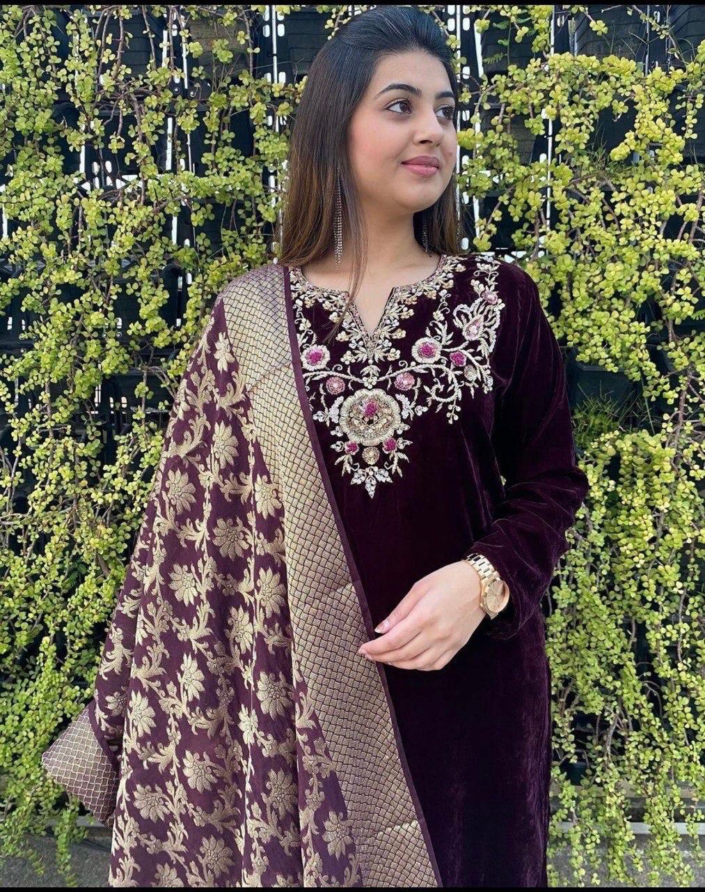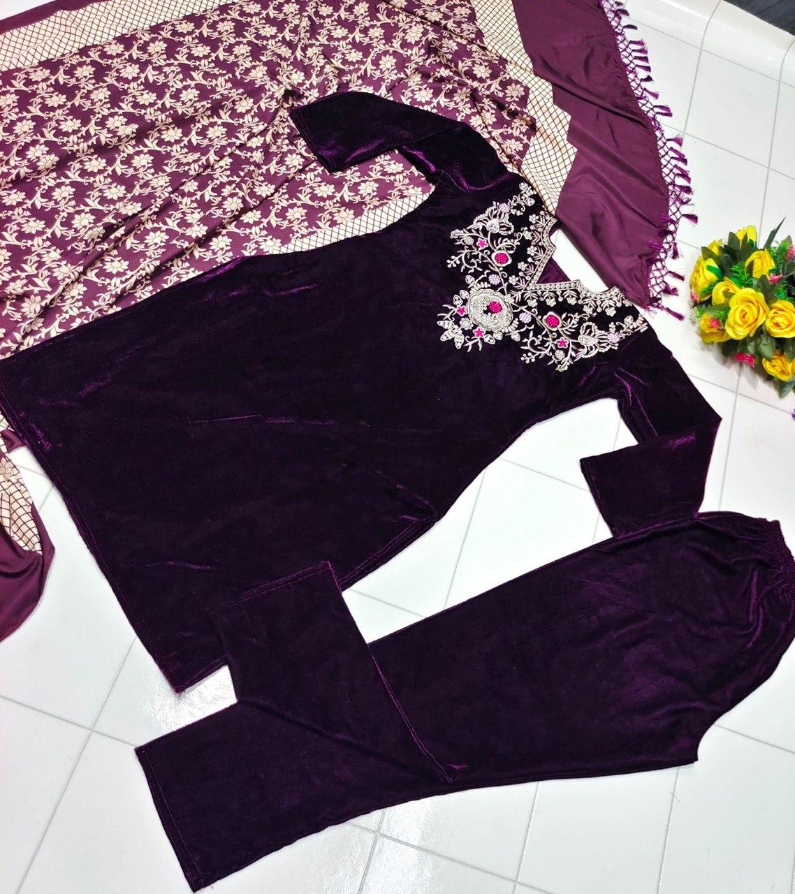 Top : 9000 Viscous Velvet With Embroidery Work With Full Sleeve