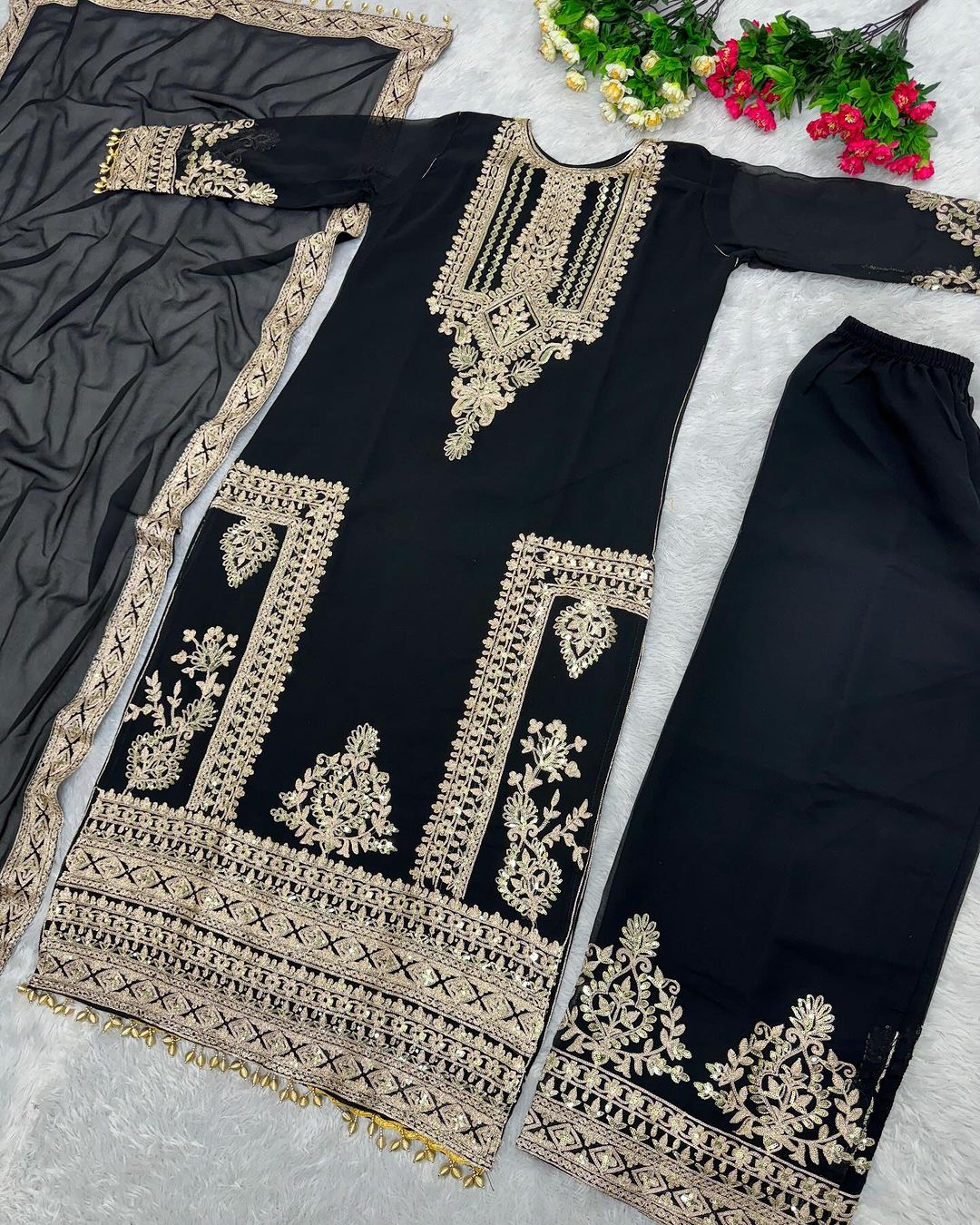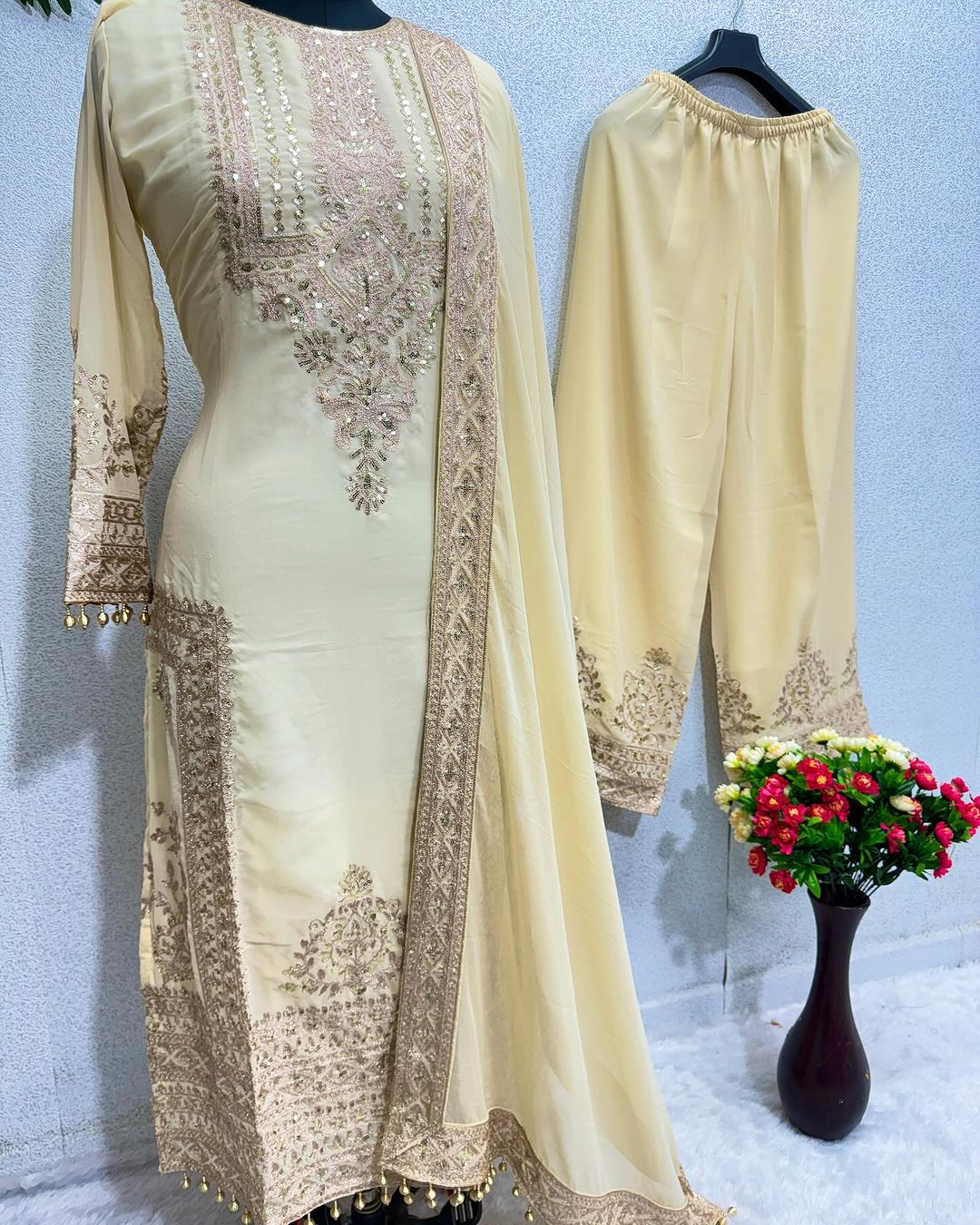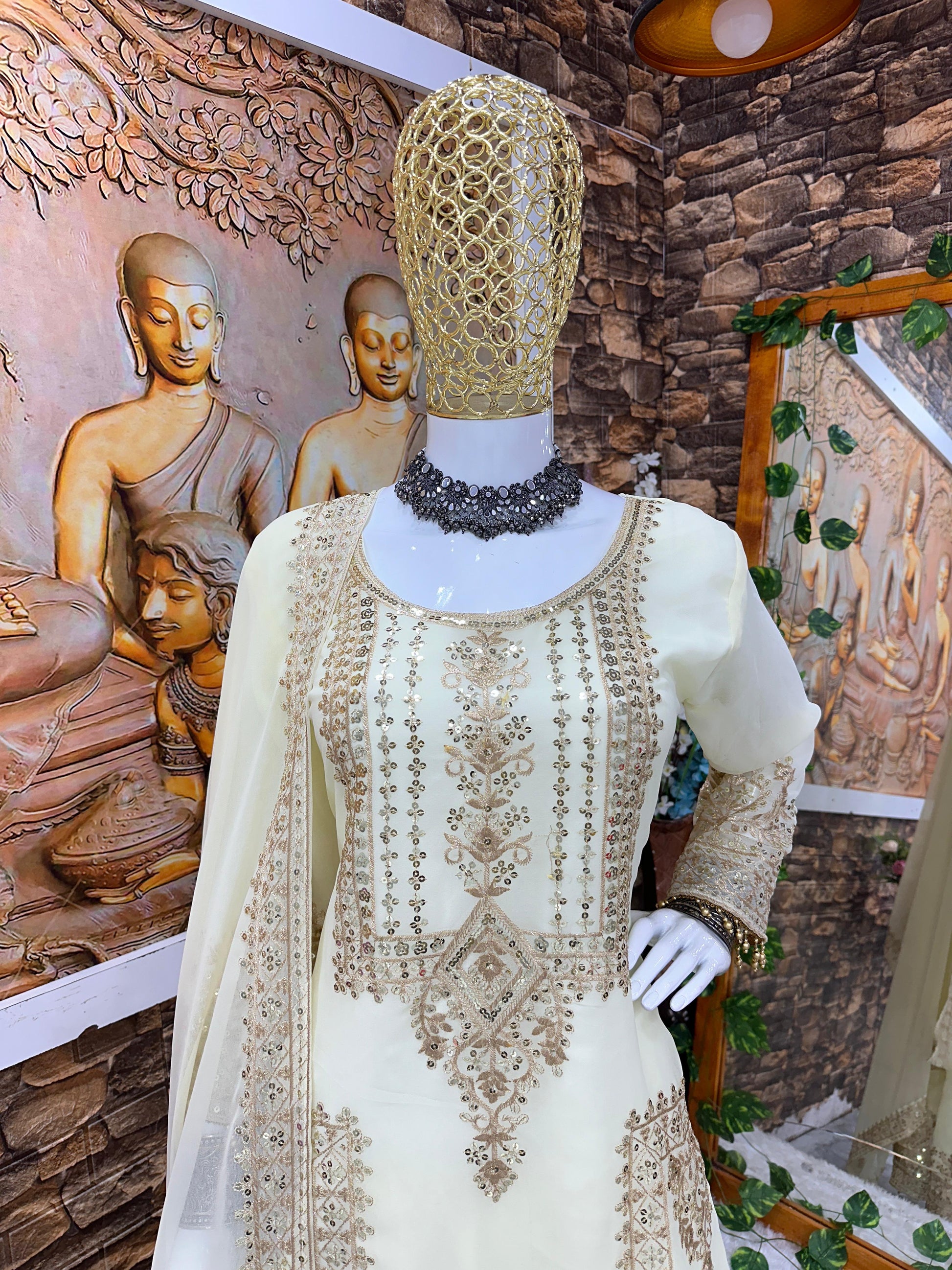 DUPATTA : GOARGATE WITH EMBROIDERY 5 MM SEQUENCE WORK AND FOUR SIDE FANCY LACE & BORDER WORK
