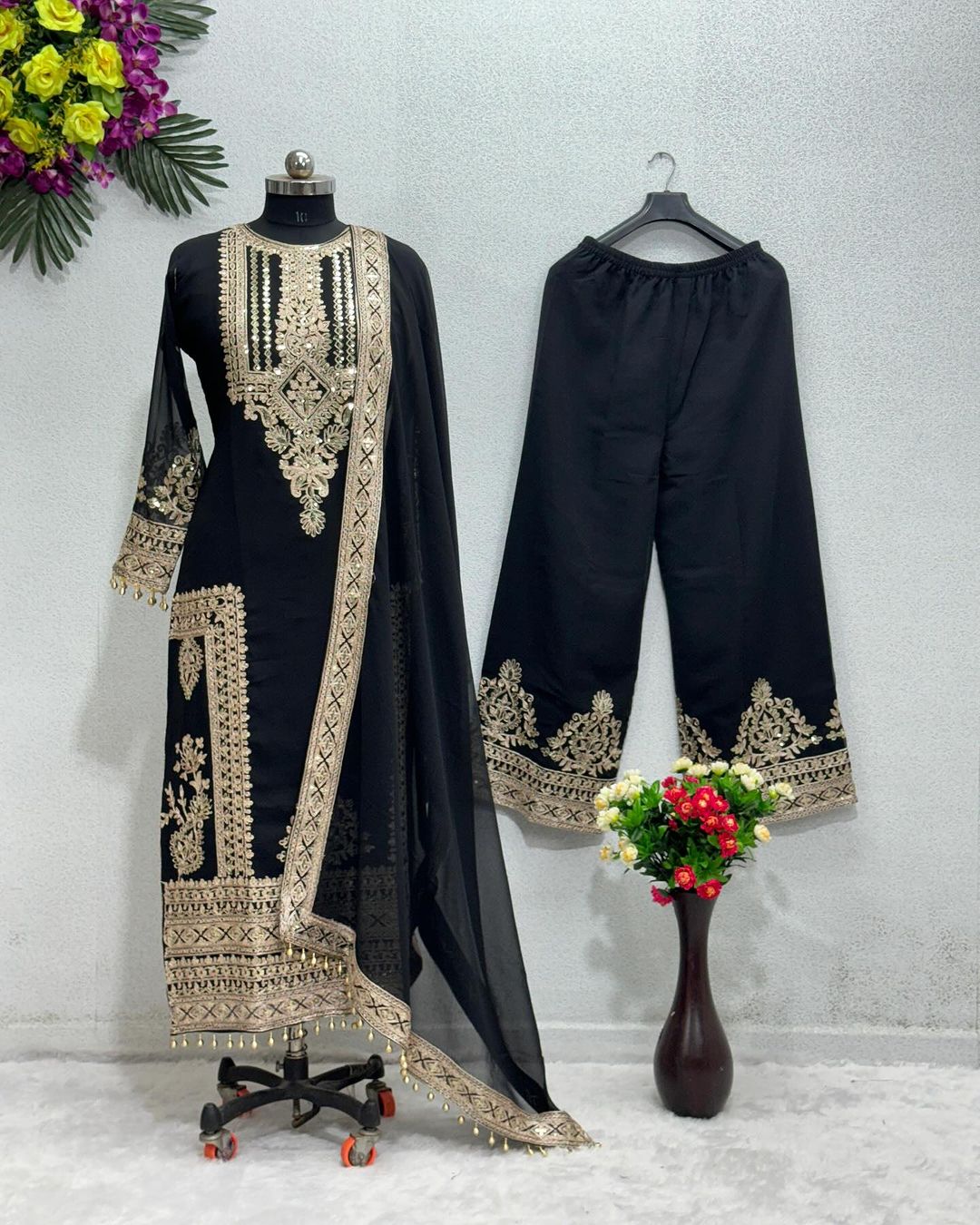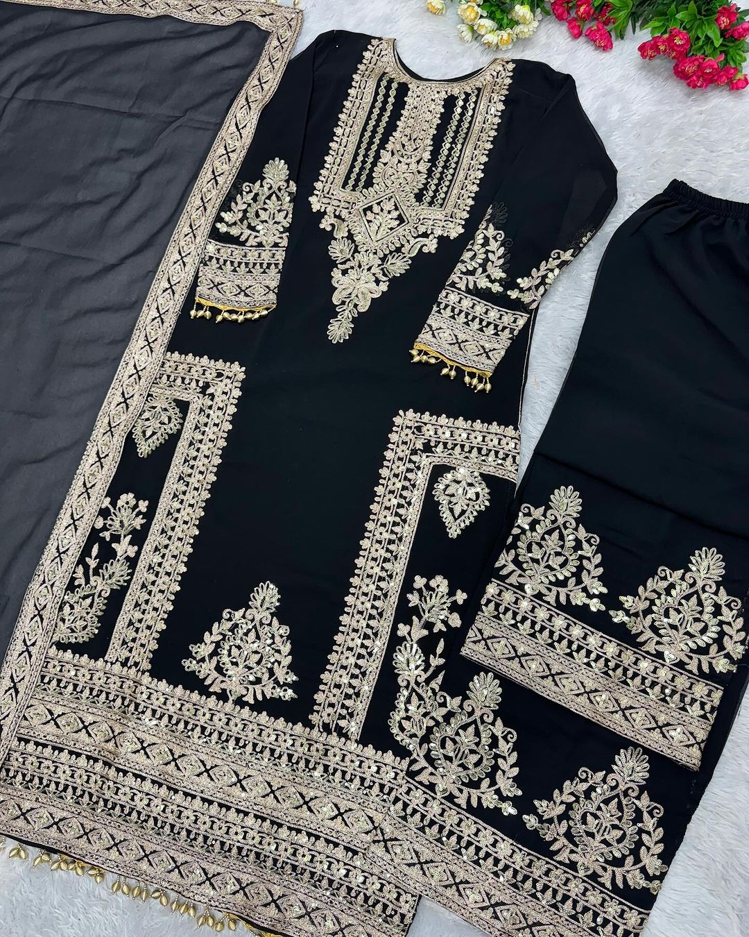 SHARARA :GOARGATE WITH EMBROIDERY 5 MM SEQUENCE WORK WITH MICRO COTTAN AND ELASTIC