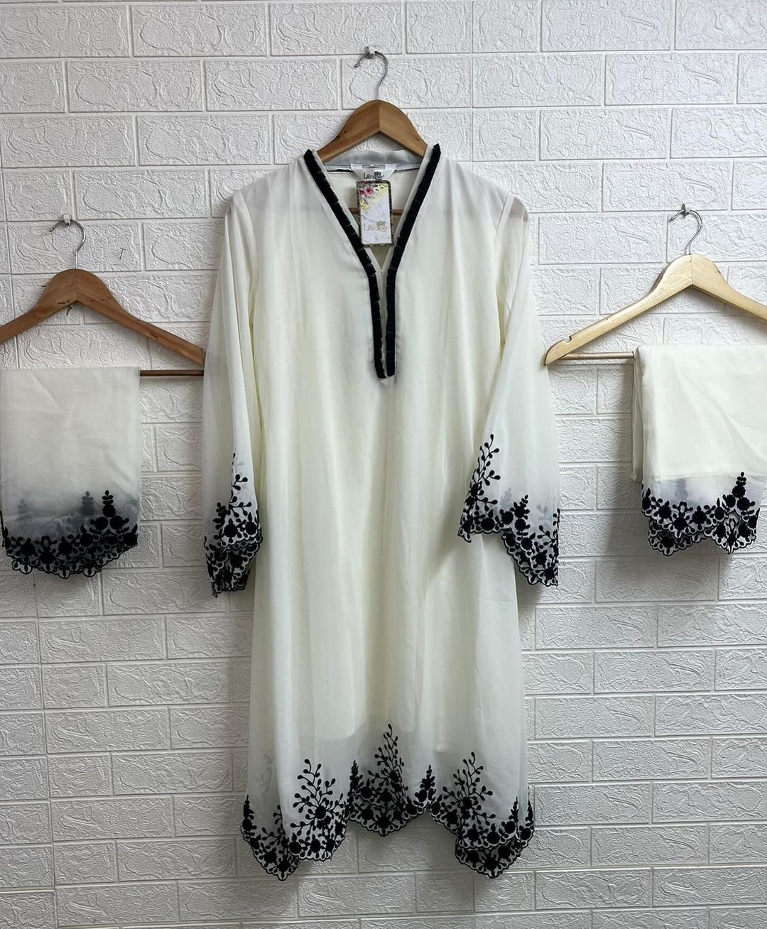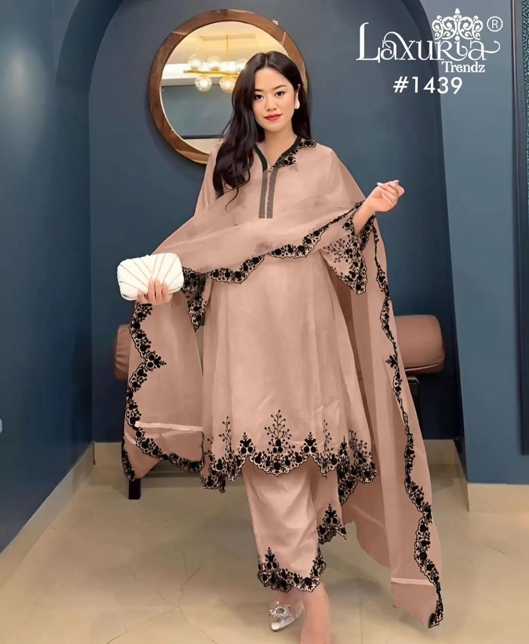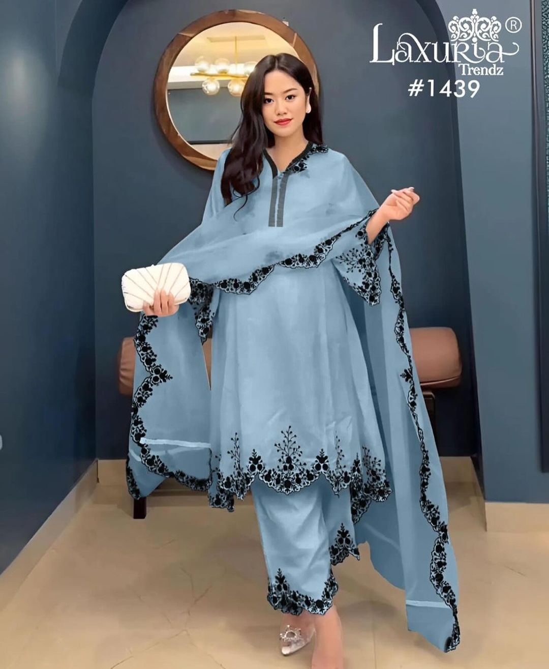 Designer stylish Tunin Classic Heavy CutWork Embroidery Front & Back With Neck Pattern, Stylish Kurti Paird With Glamours Embrdry CutWork sleevs With Organza Embrdry Dupatta & Embrdry Cutwork In Plazo.