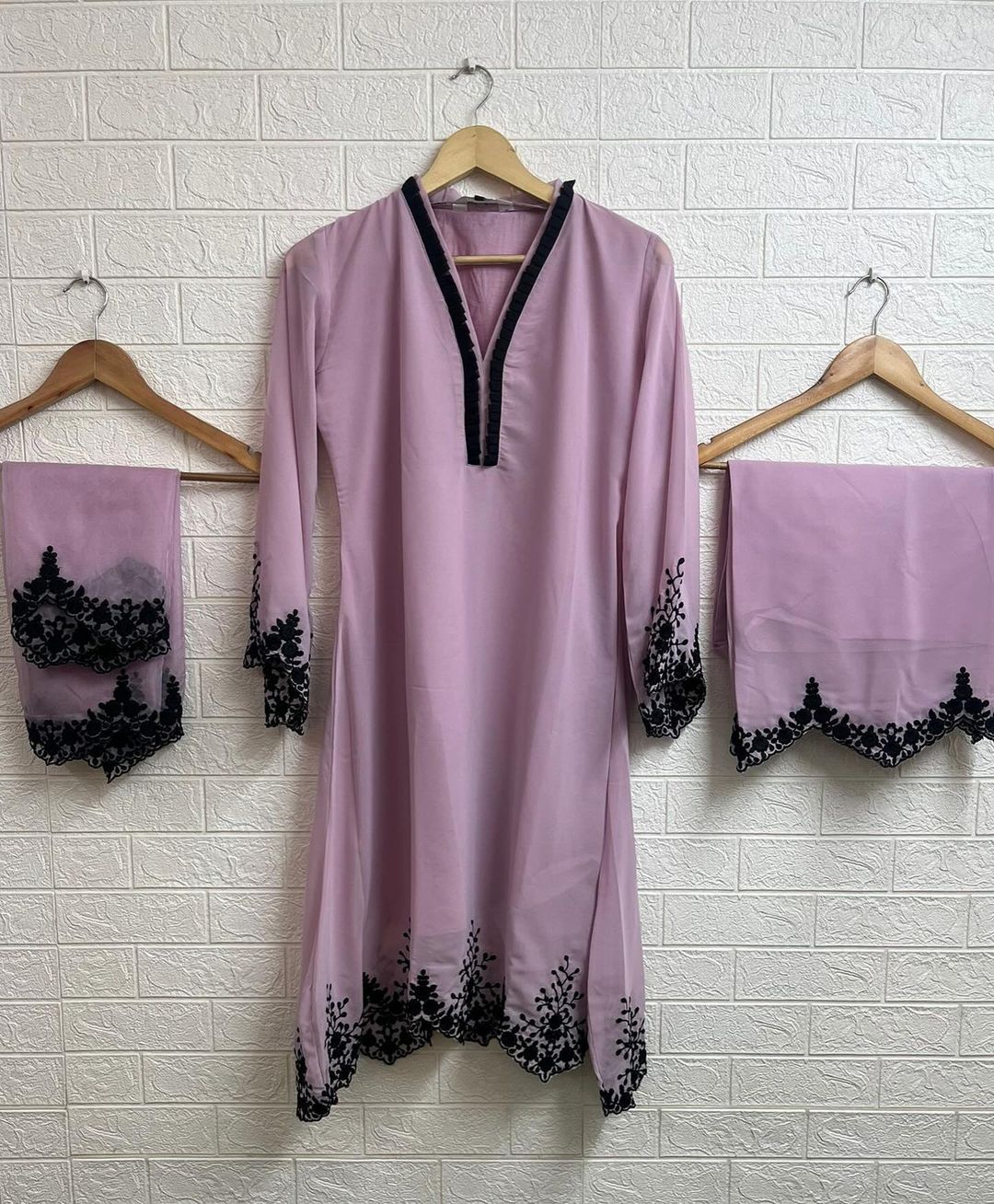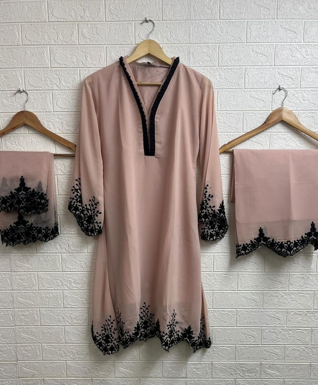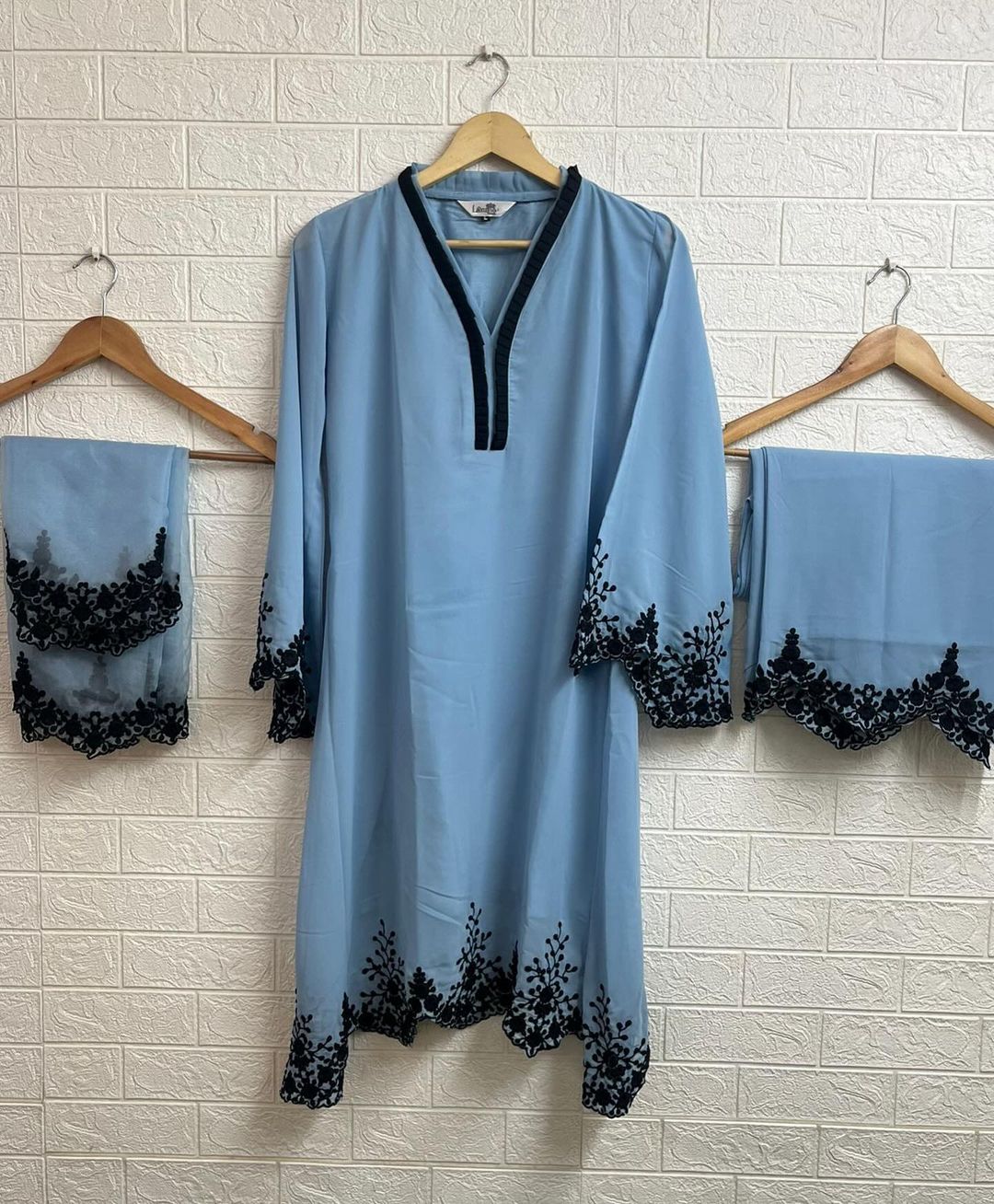 Designer stylish Tunin Classic Heavy CutWork Embroidery Front & Back With Neck Pattern, Stylish Kurti Paird With Glamours Embrdry CutWork sleevs With Organza Embrdry Dupatta & Embrdry Cutwork In Plazo.