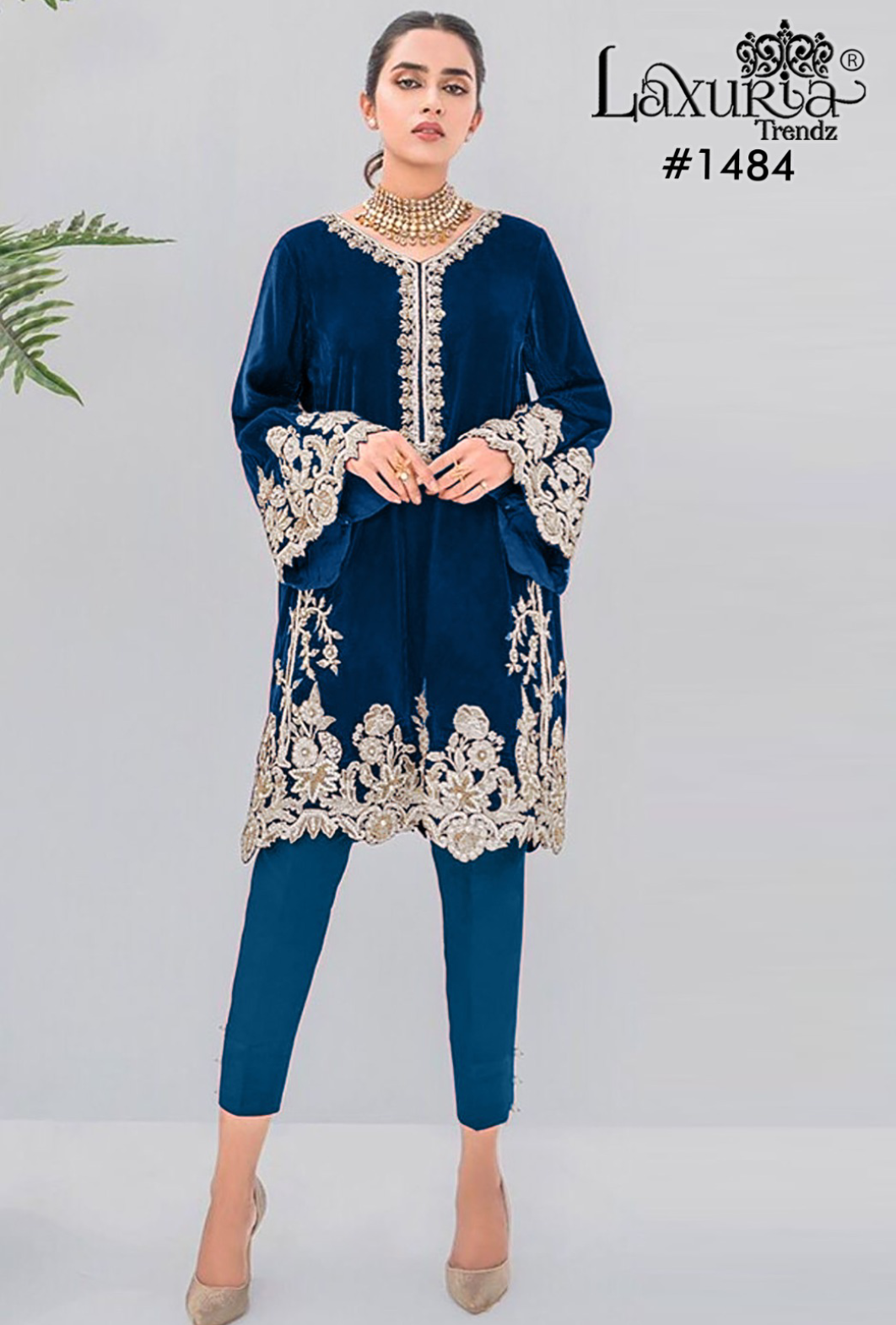 Designer Embrdry Velvet Tunic & Neck Pattern With Embroidery Sleeves Paired with Pant