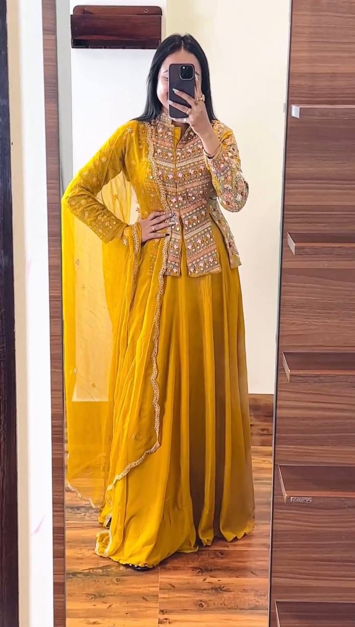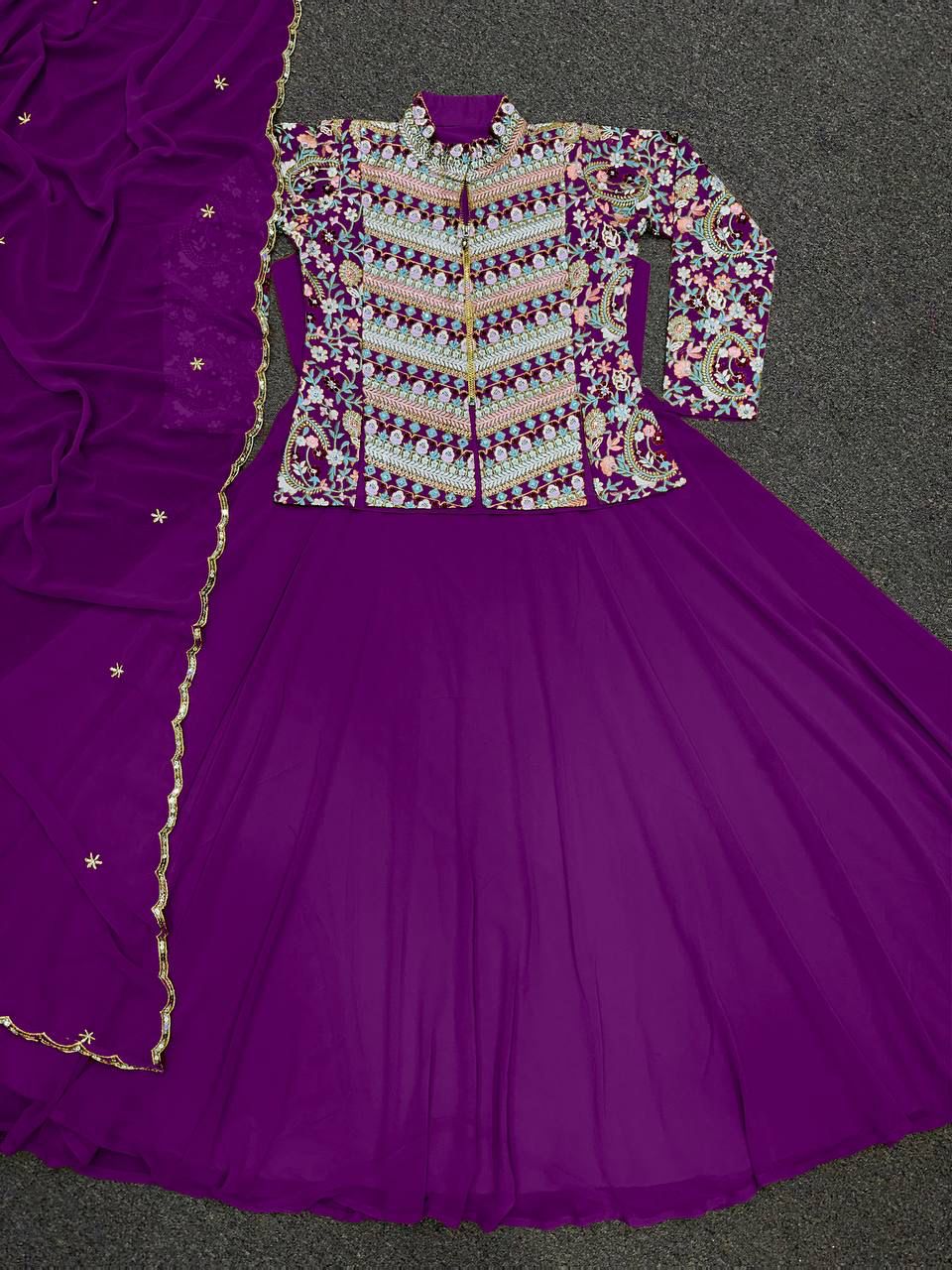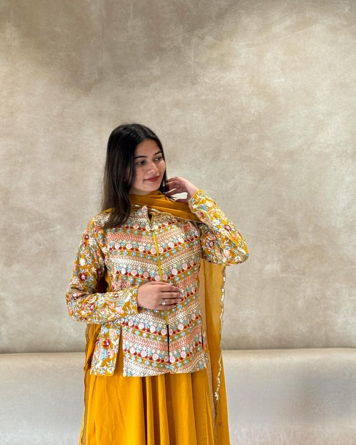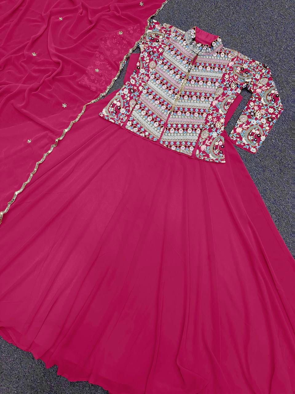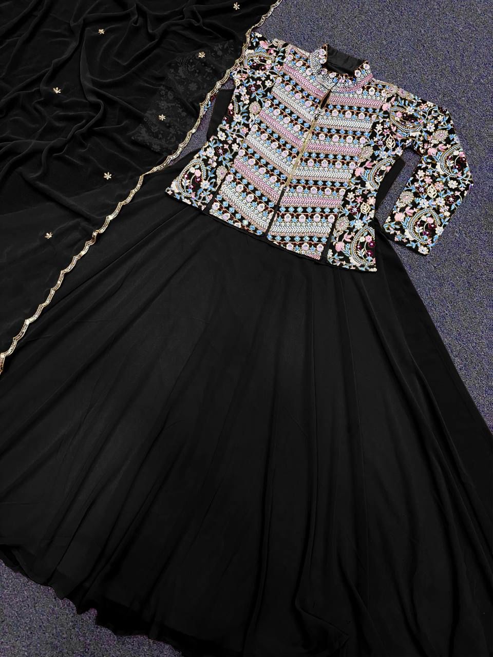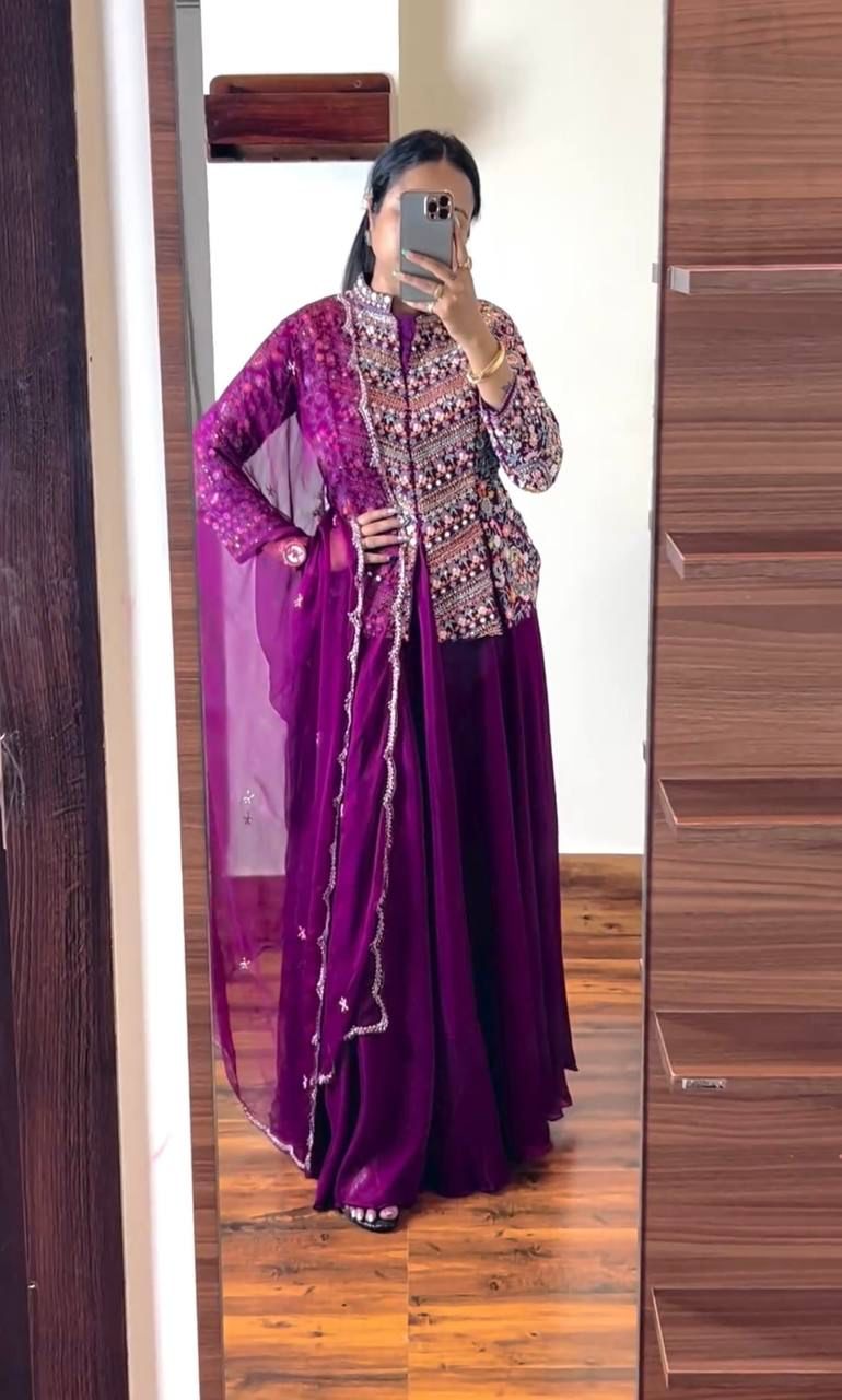 Launching Stylist Design With Heavy Embroidery Sequins Work Jacket Style Top - Gown With Dupatta
