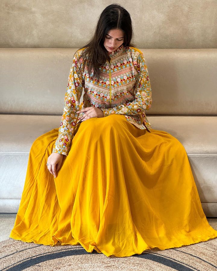 Top Work : Heavy Embroidery And Sequins Work With Stitched Zipper With Stone Hand Work