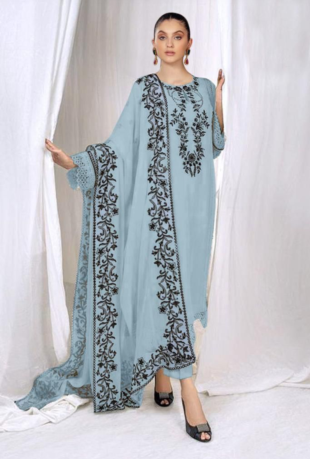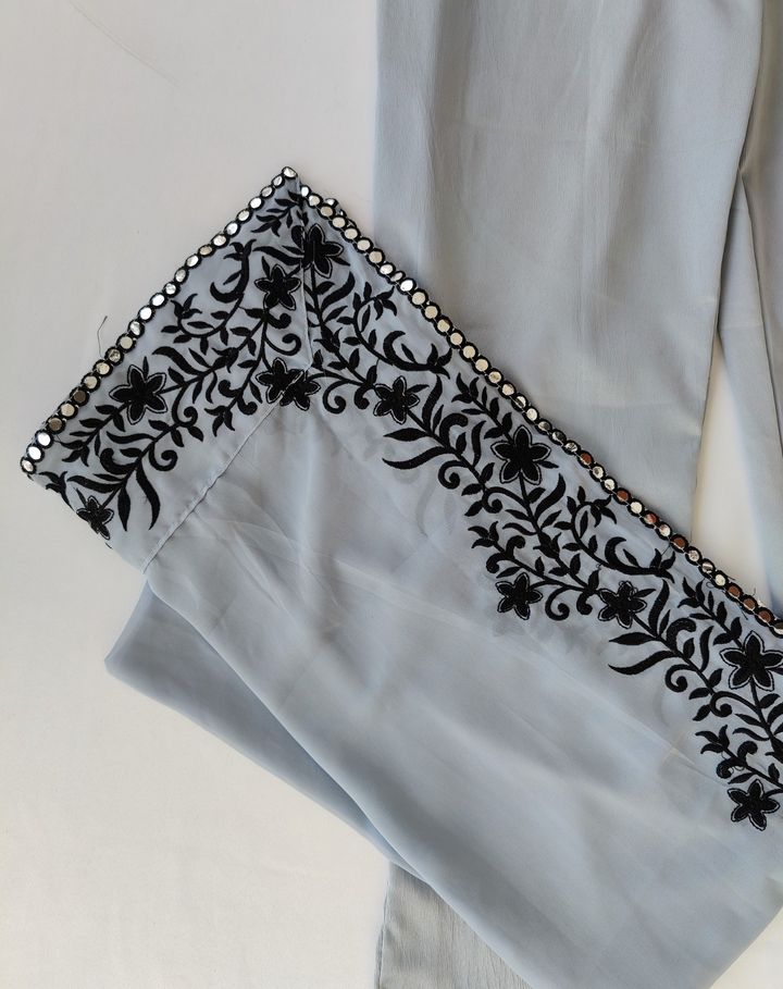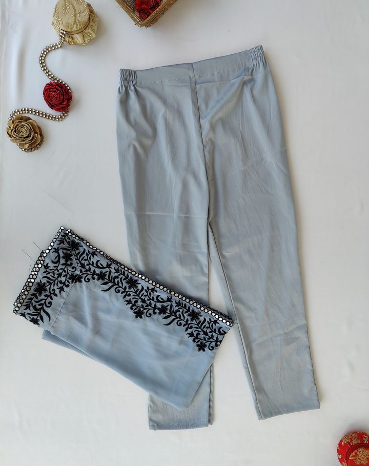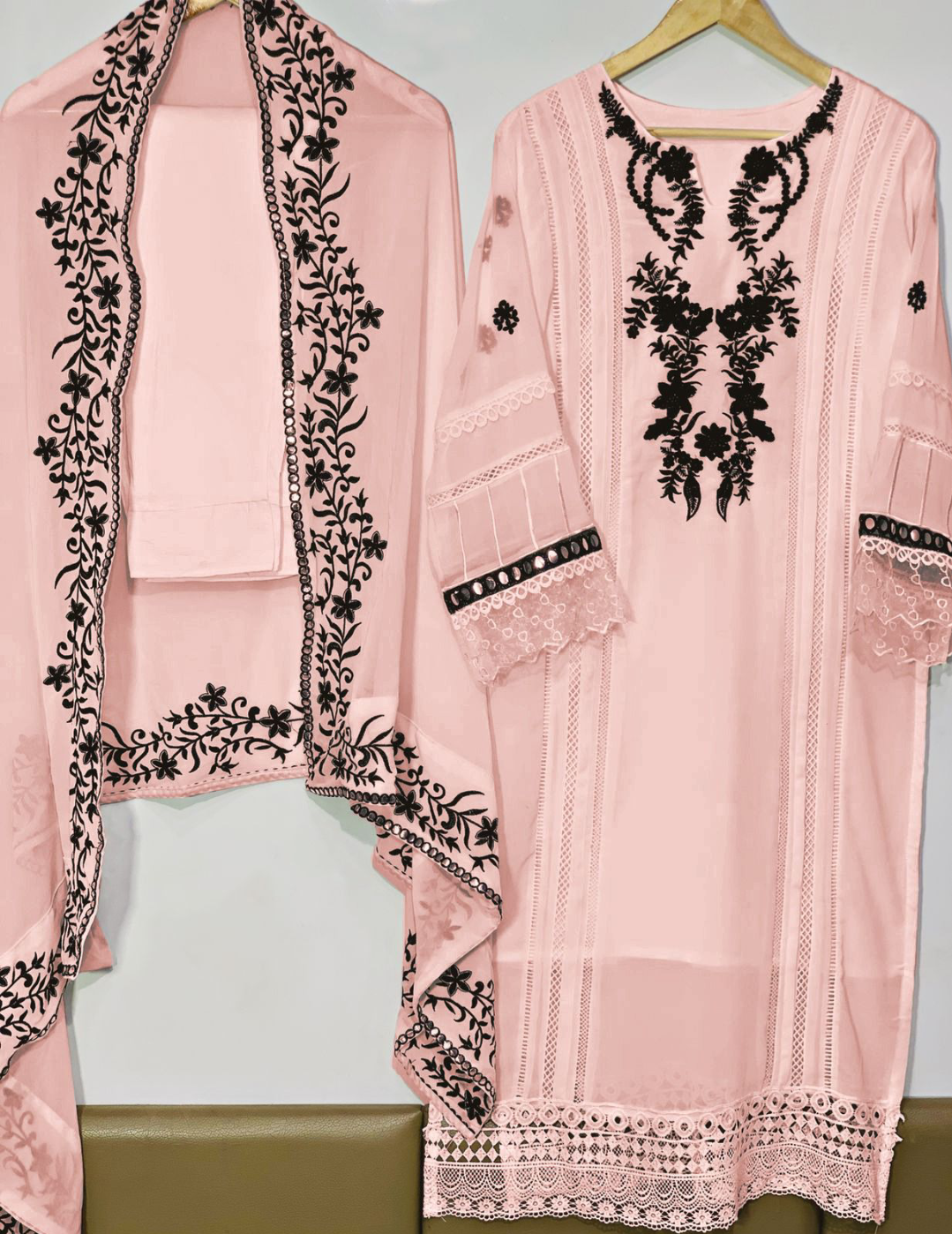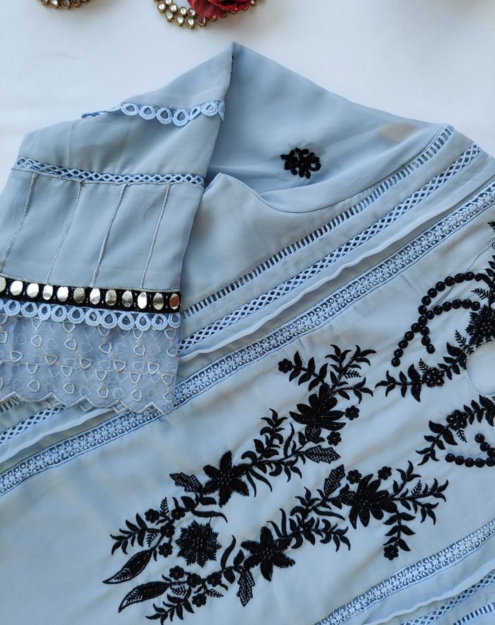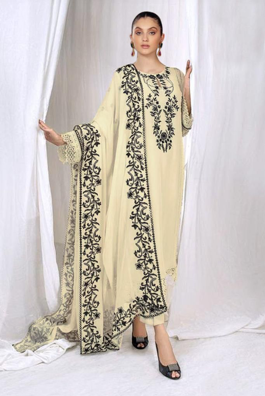Solid White & Black combination embroidery with mirrior work and handwork on it with beautiful laces looks a like a perfect pakistani pair paired with Duppata with border mirror embroidery