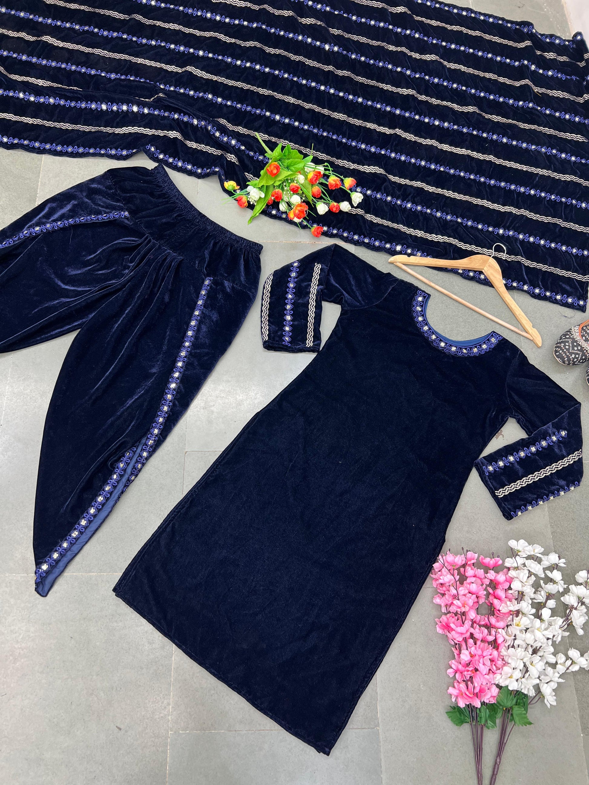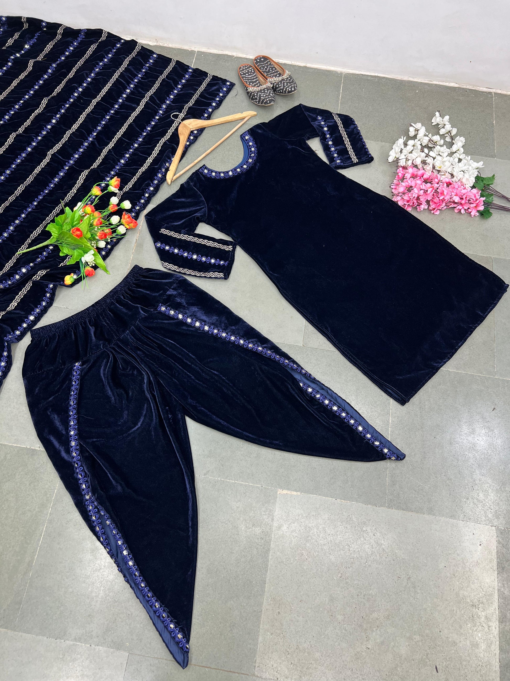 Dhoti Salwar Fabric: Viscose Velvet With Embroidery Sequence Work