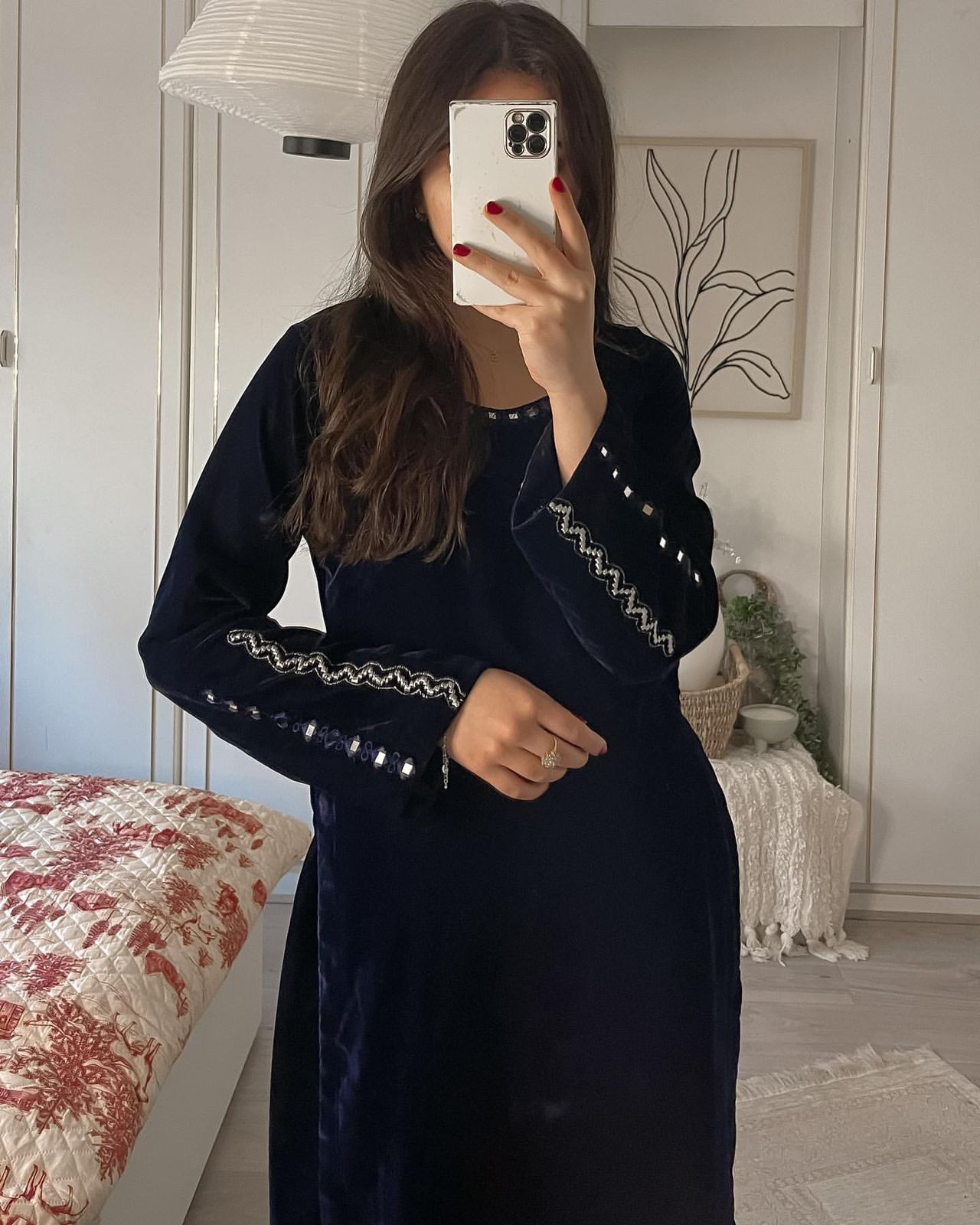 Top Fabric :Viscose Velvet With Embroidery Sequence Work with Full Sleeve