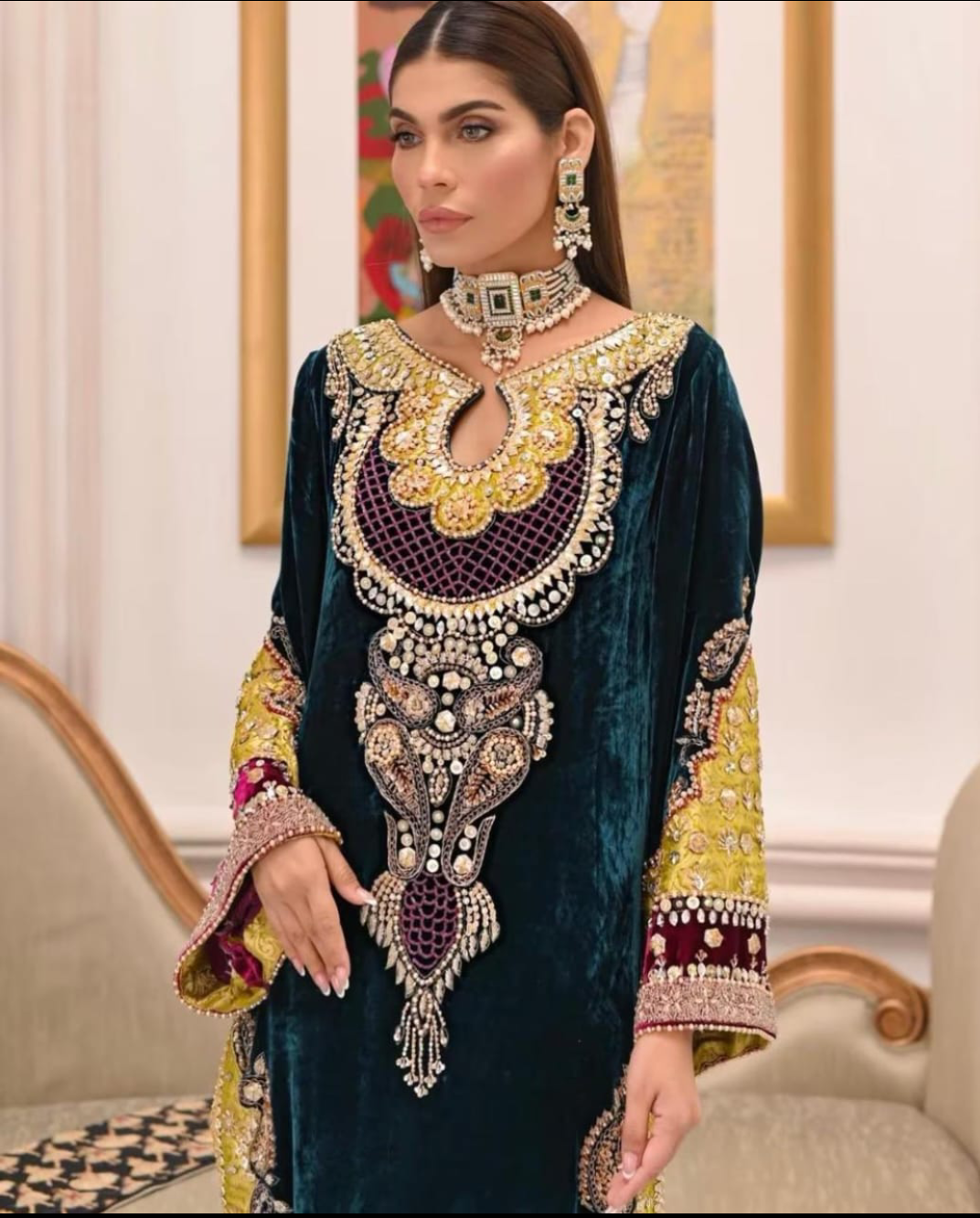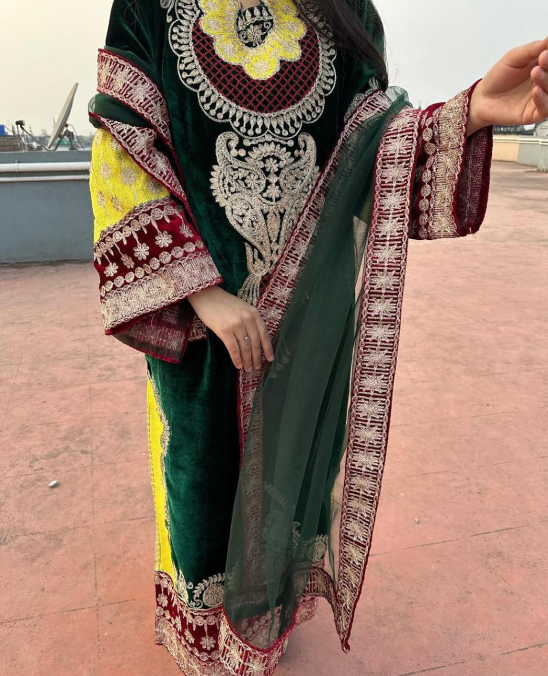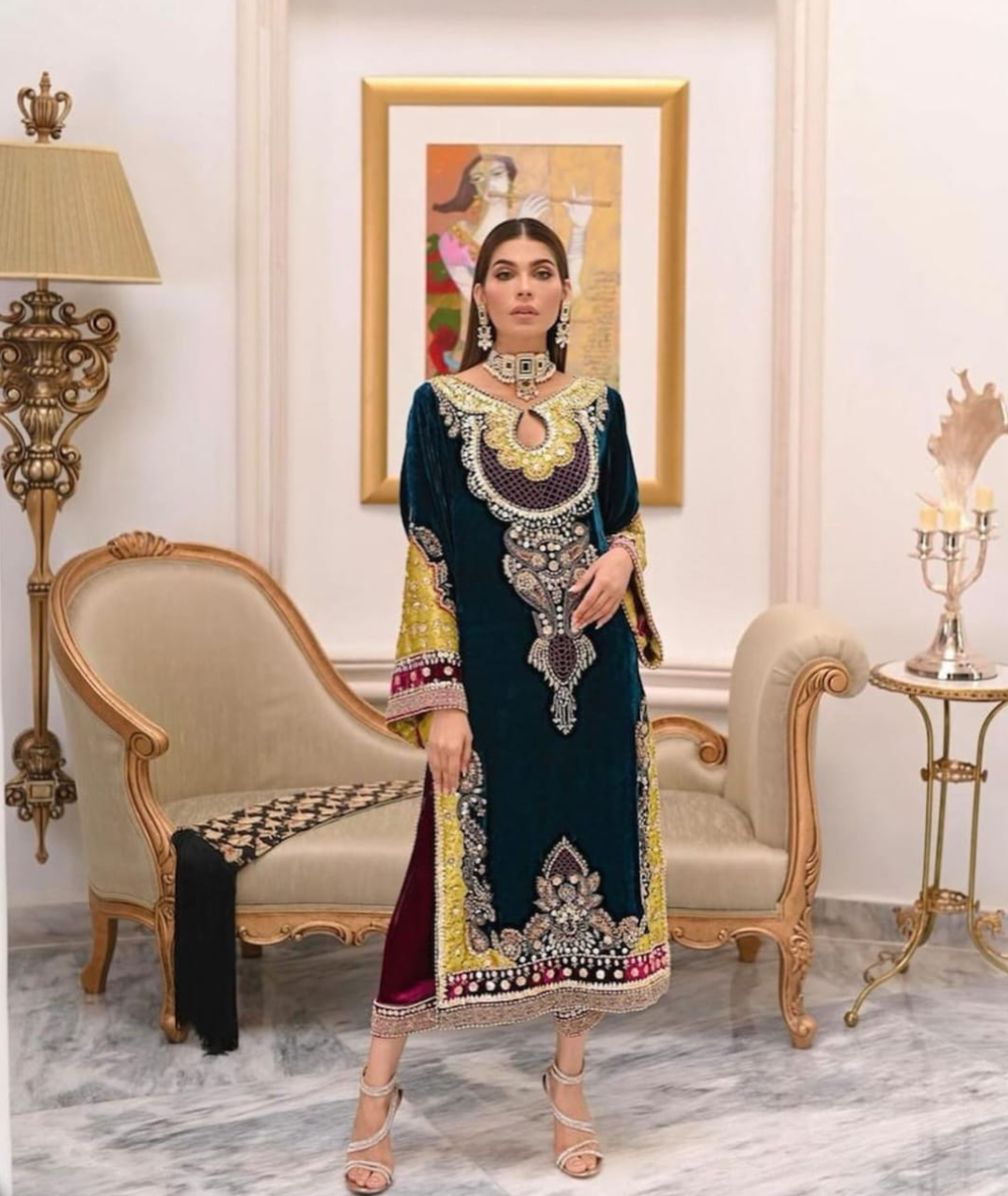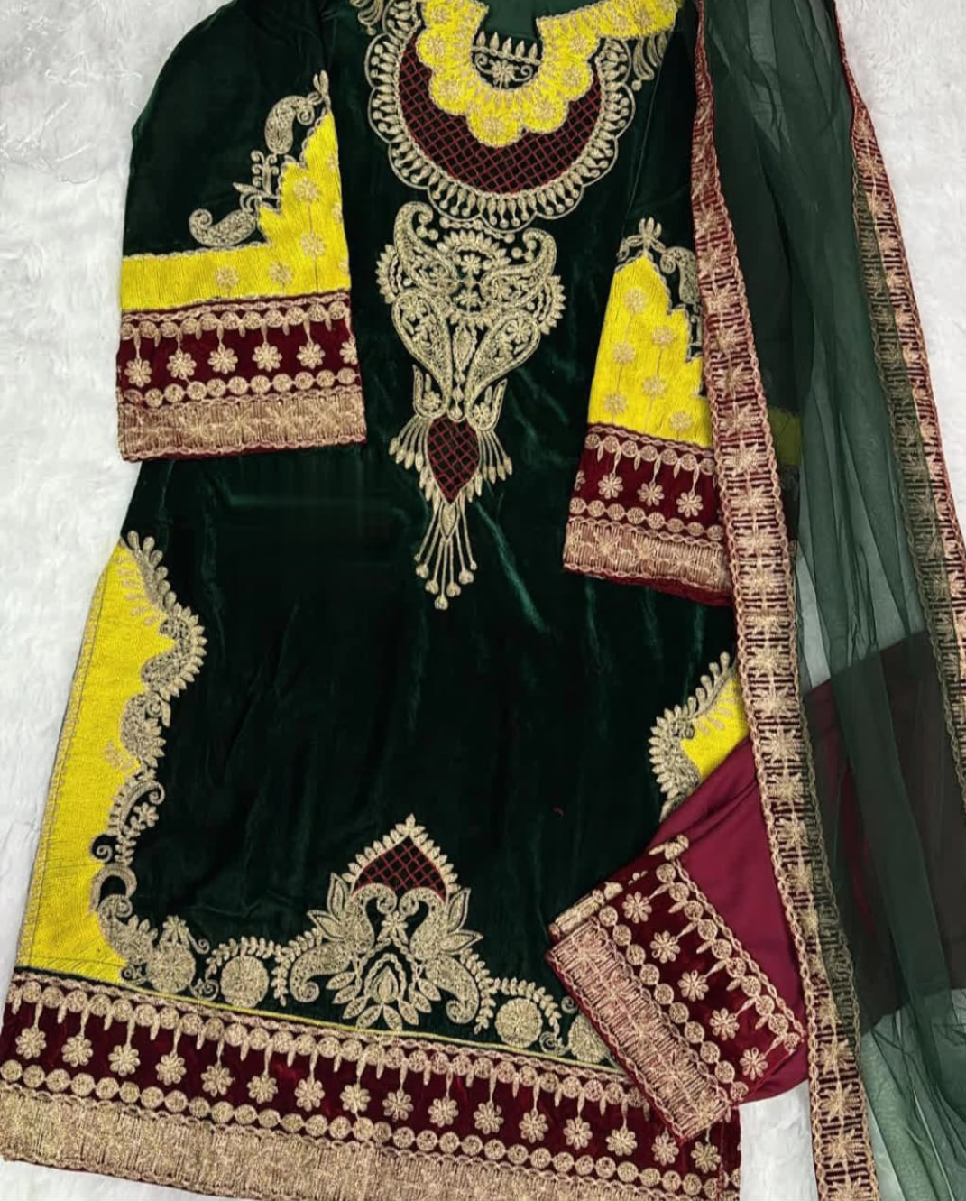 PARTY WEAR HEAVY VISCOSE VELVET TOP WITH PANT AND DUPATTA