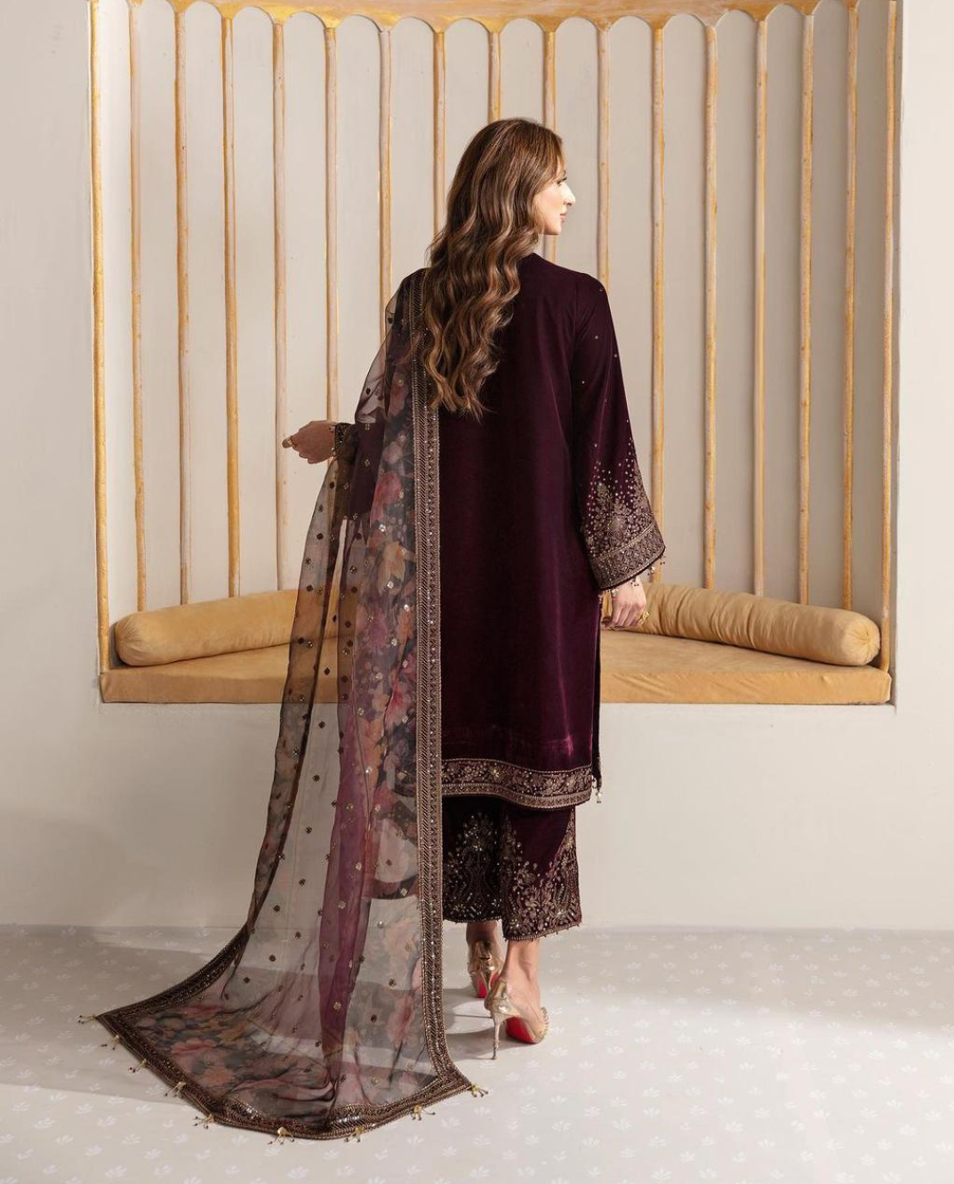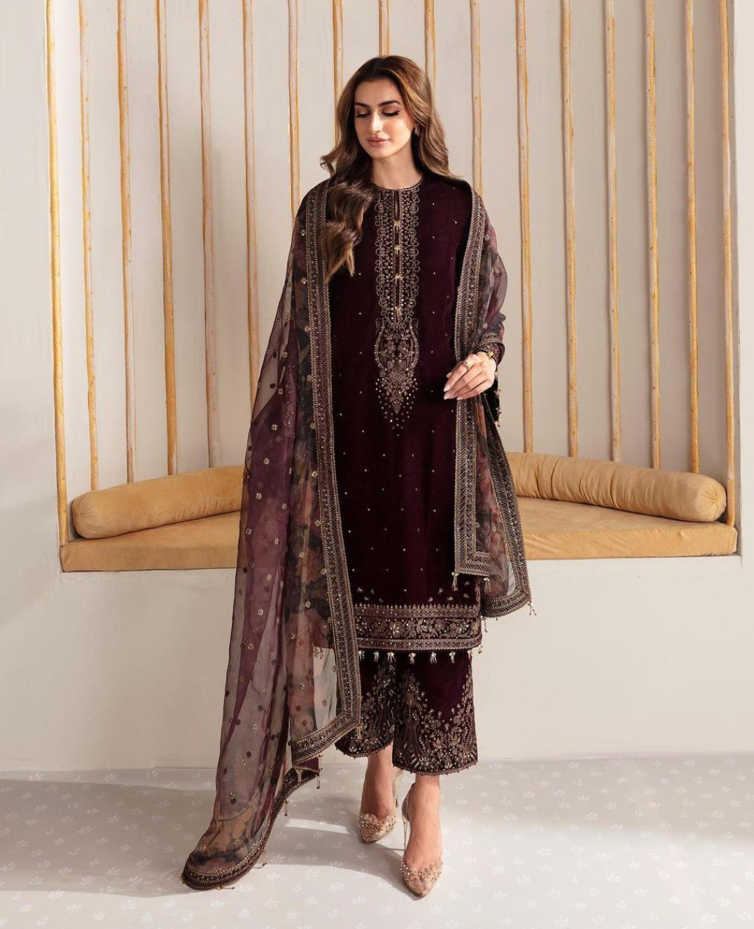 Top Fabric : Heavy Viscose Velvet With Embroidery 5 mm Sequence Work With Fancy Latkan With Fancy Bell Sleeve