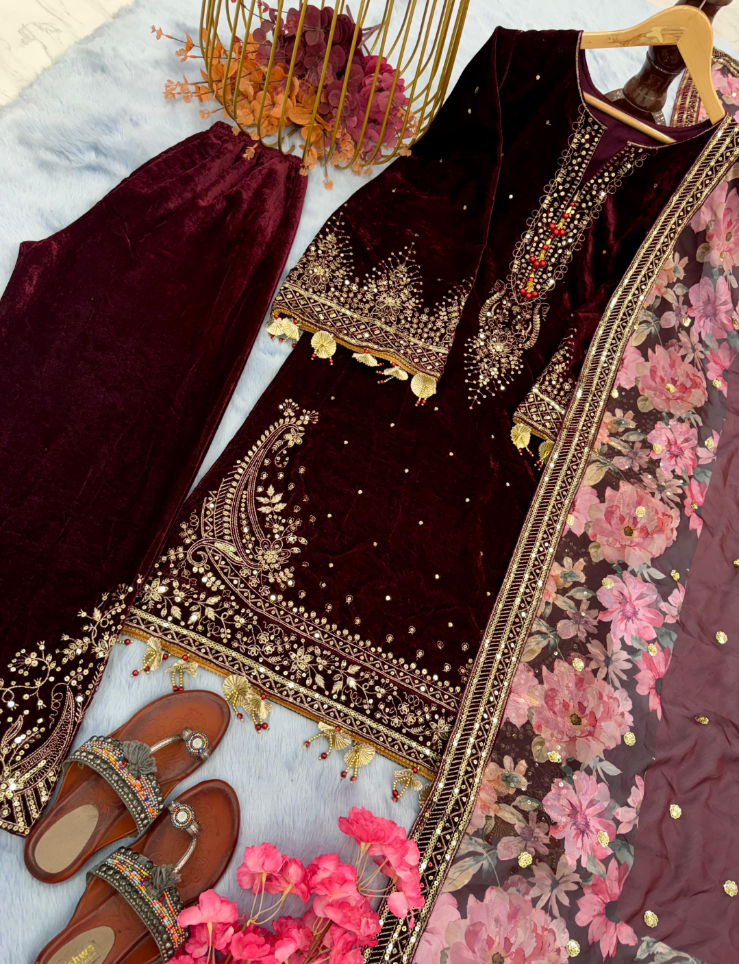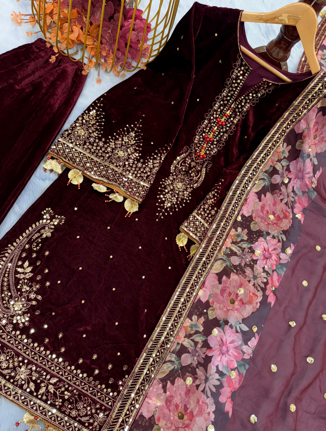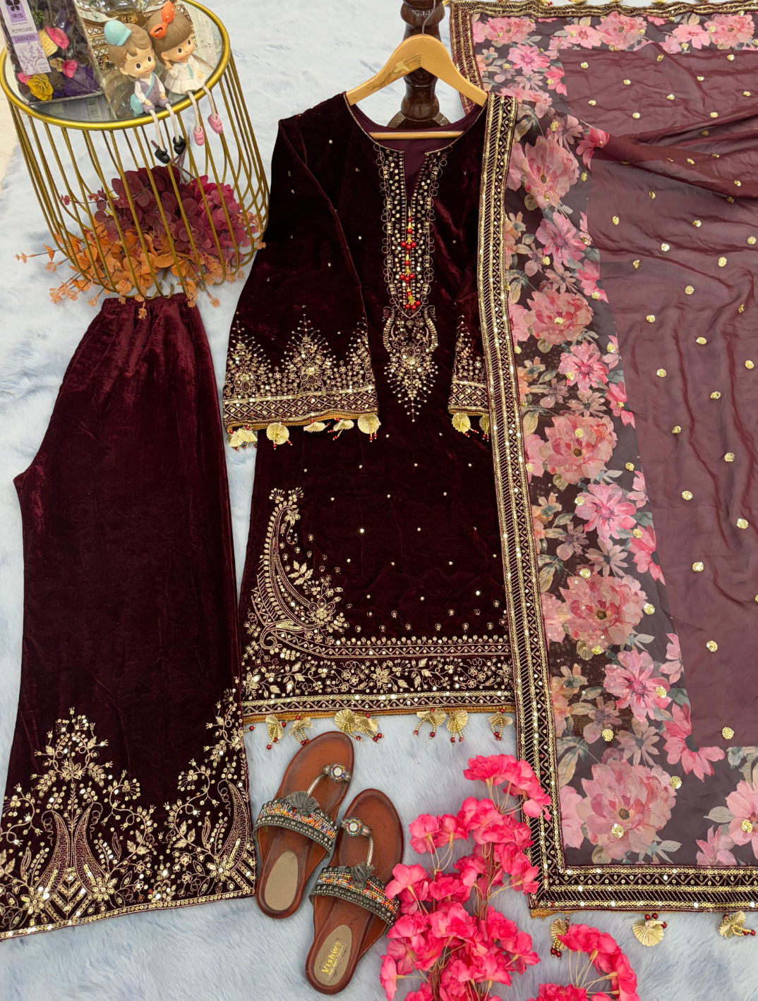 Plazzo Fabric : Heavy Viscose Velvet With Embroidery 5 mm Sequence Work