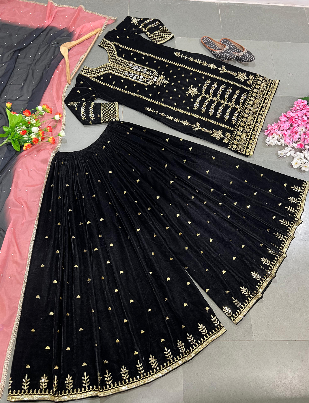Bottom Fabric : Heavy Viscose Velvet With Heavy Embroidery Sequence Work