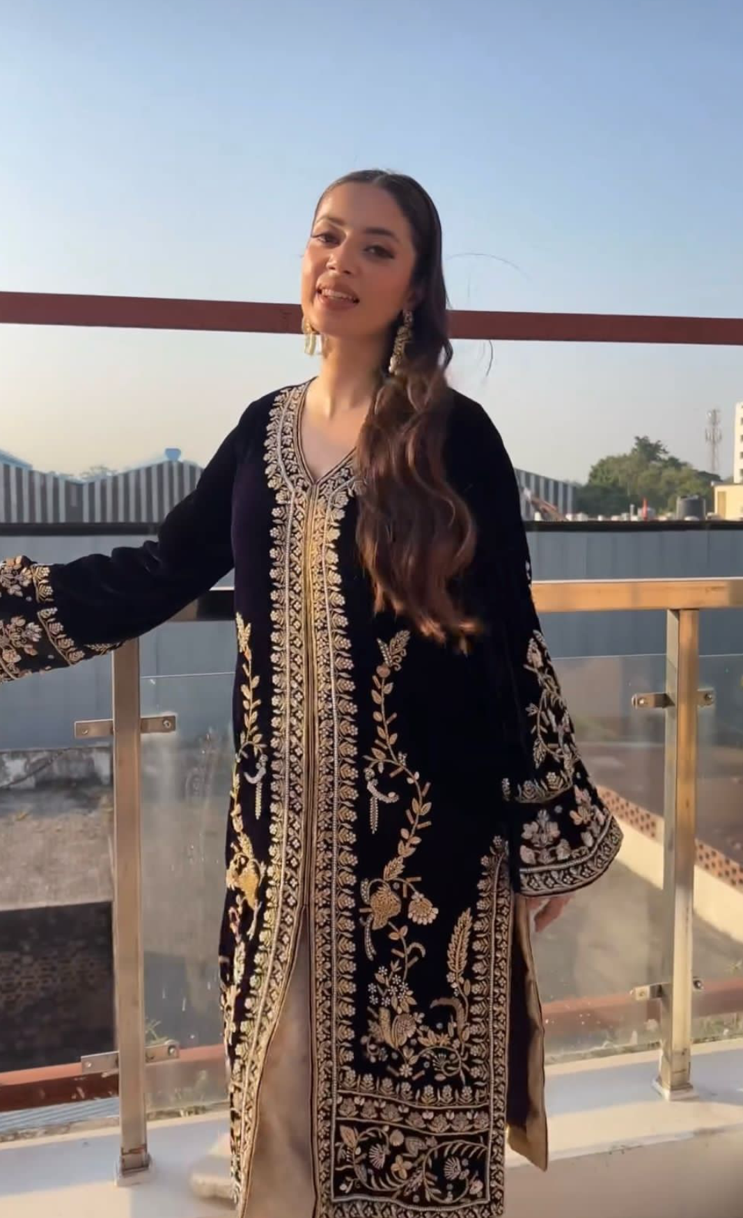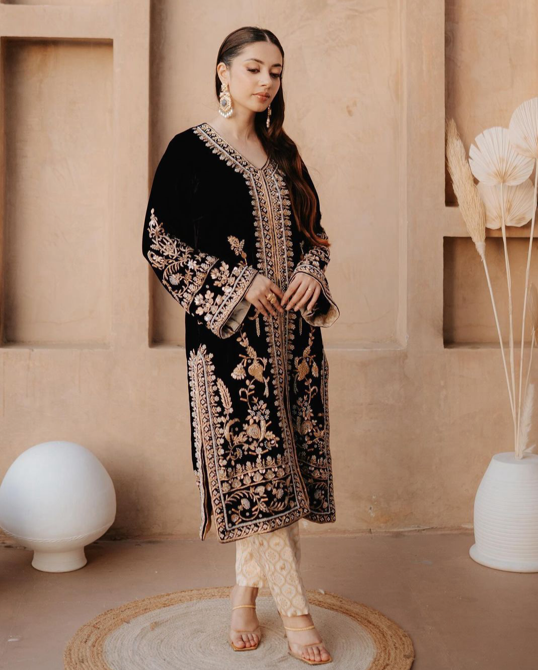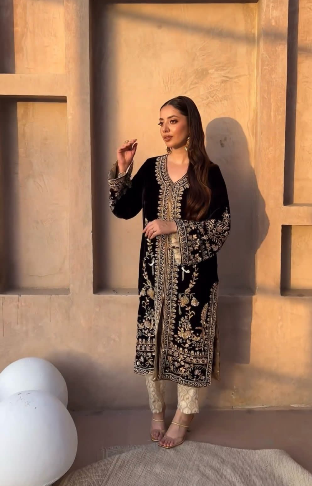 Top Fabric : Heavy Viscose Velvet And Sleeve With Work