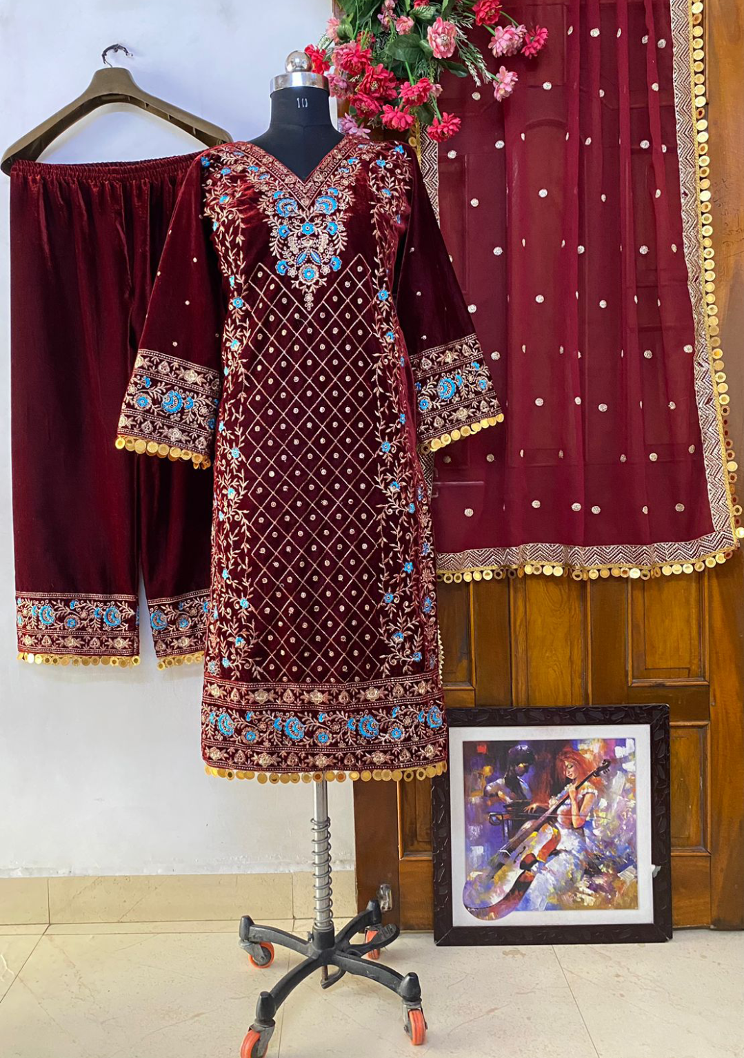 GOOD QUALITY HEAVY VELVET TOP WITH BEAUTIFUL EMBROIDERED & HEAVY VELVET PLAZZO