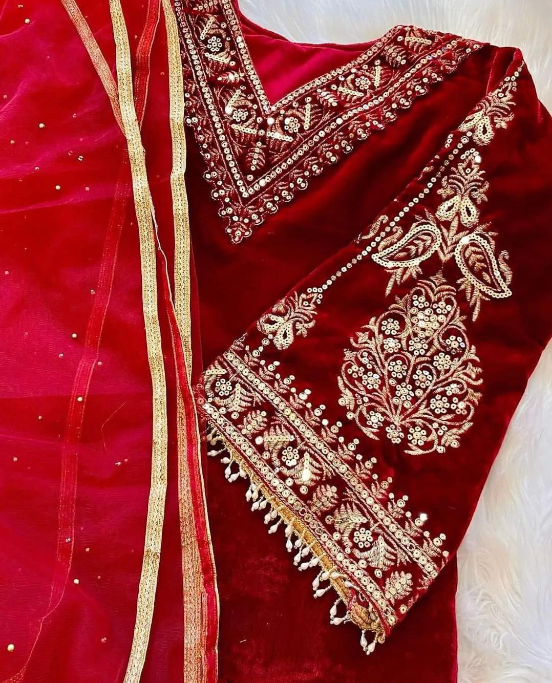 VELVET TOP WITH BEAUTIFUL EMBROIDERED & HEAVY VELVET PLAZZO