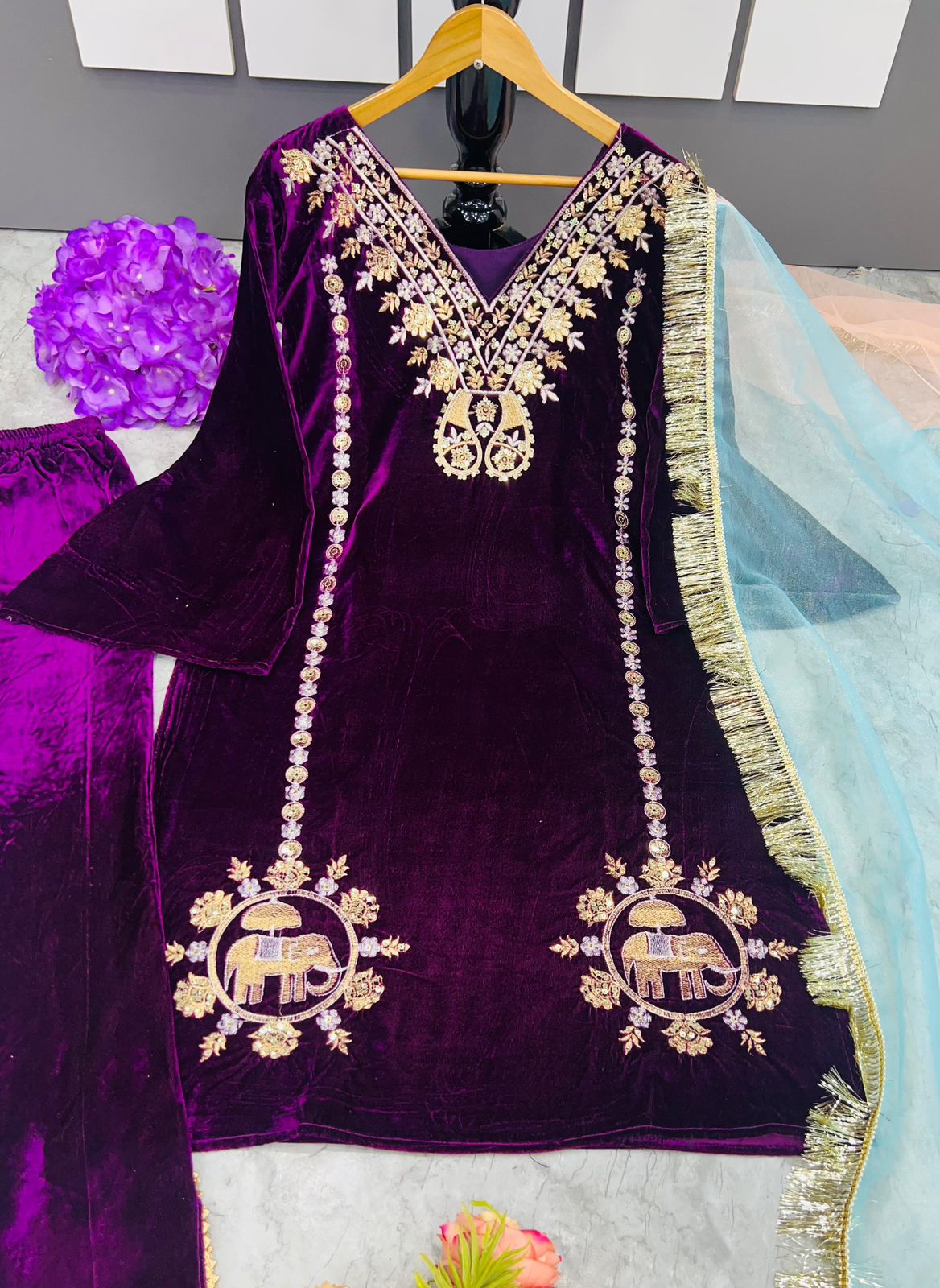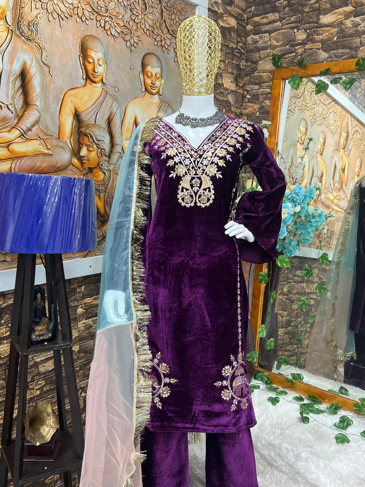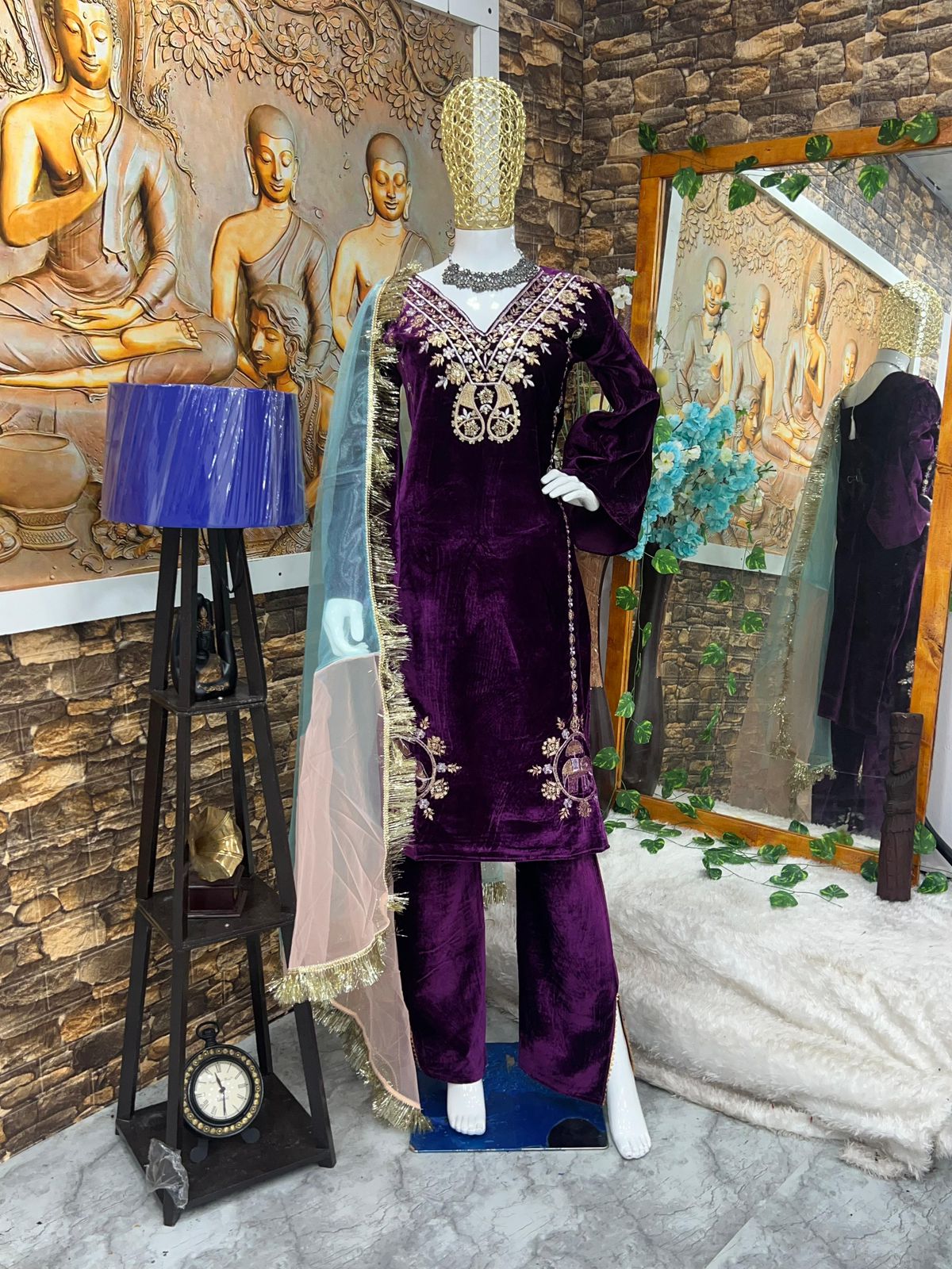 LAUNCHING NEW DESIGNER PARTY WEAR VELVET TOP AND PANT WITH FANCY DUPATTA WITH EMBROIDERY WORK