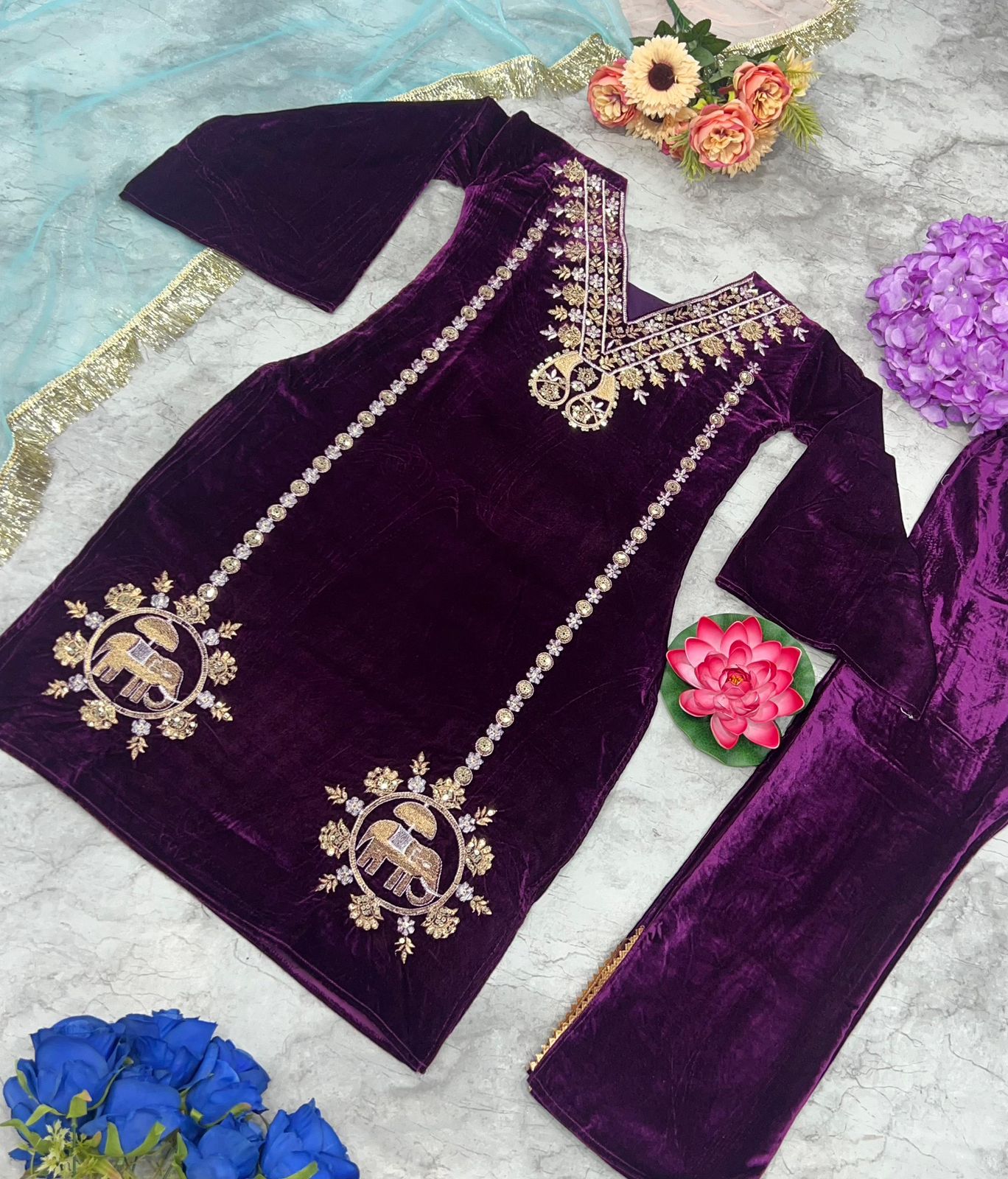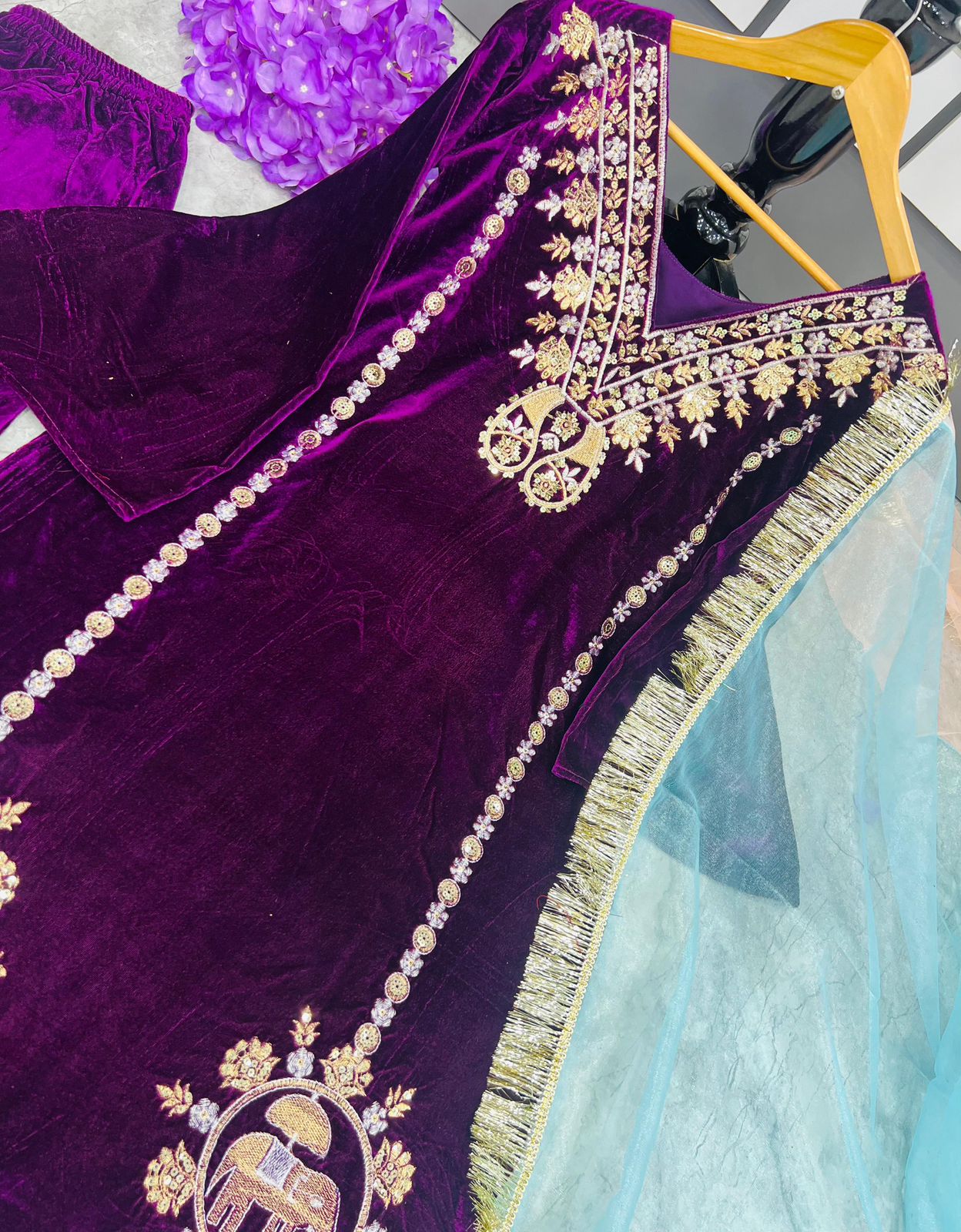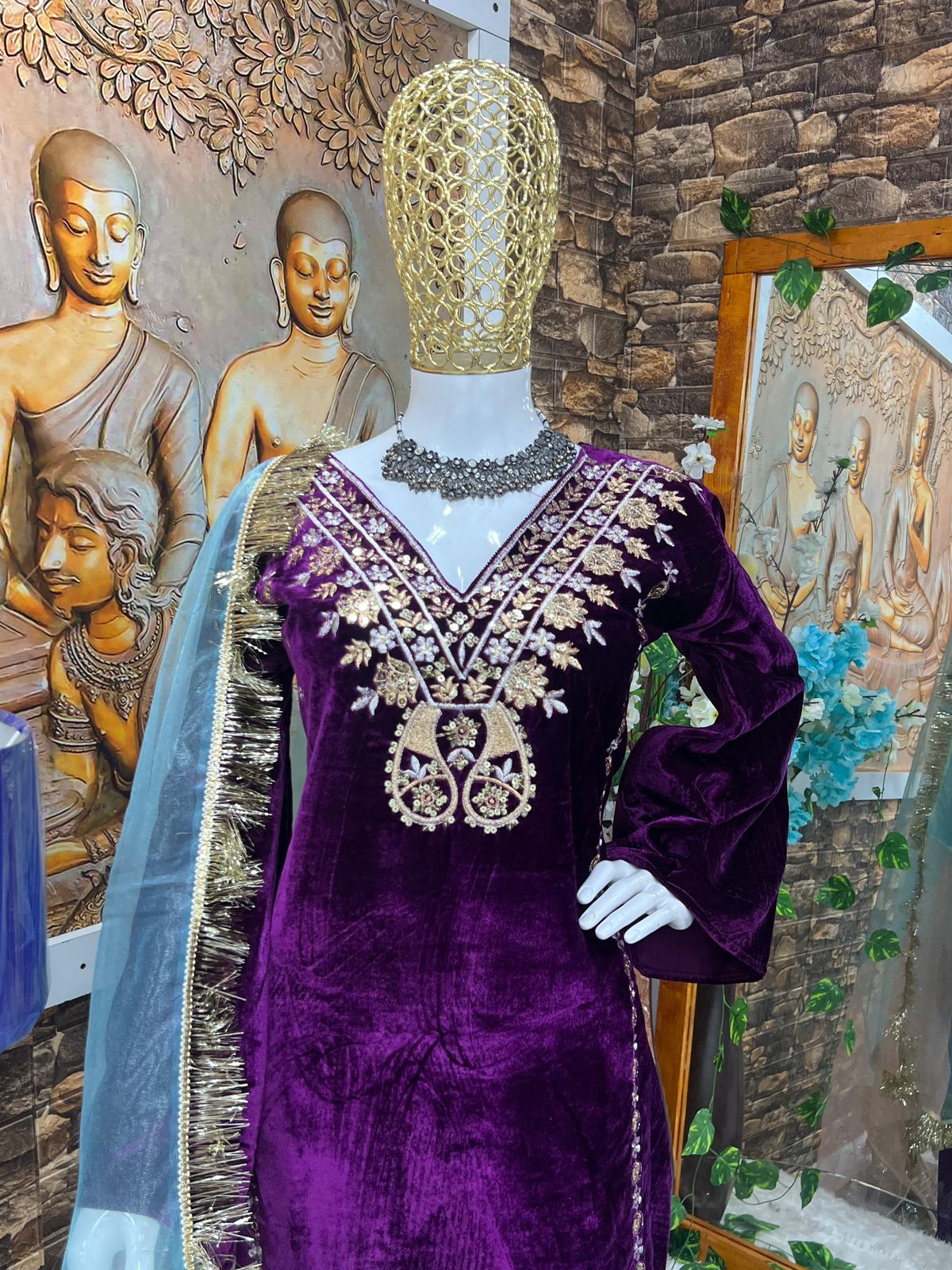 LAUNCHING NEW DESIGNER PARTY WEAR VELVET TOP AND PANT WITH FANCY DUPATTA WITH EMBROIDERY WORK
