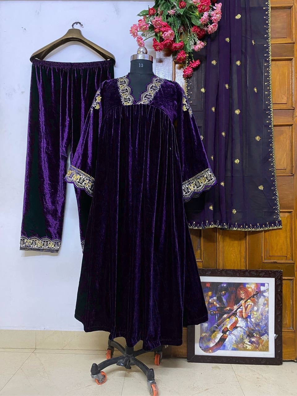 PLAZZO: HEAVY 9000 VELVET WITH EMBROIDERY (FULLY STITCHED)