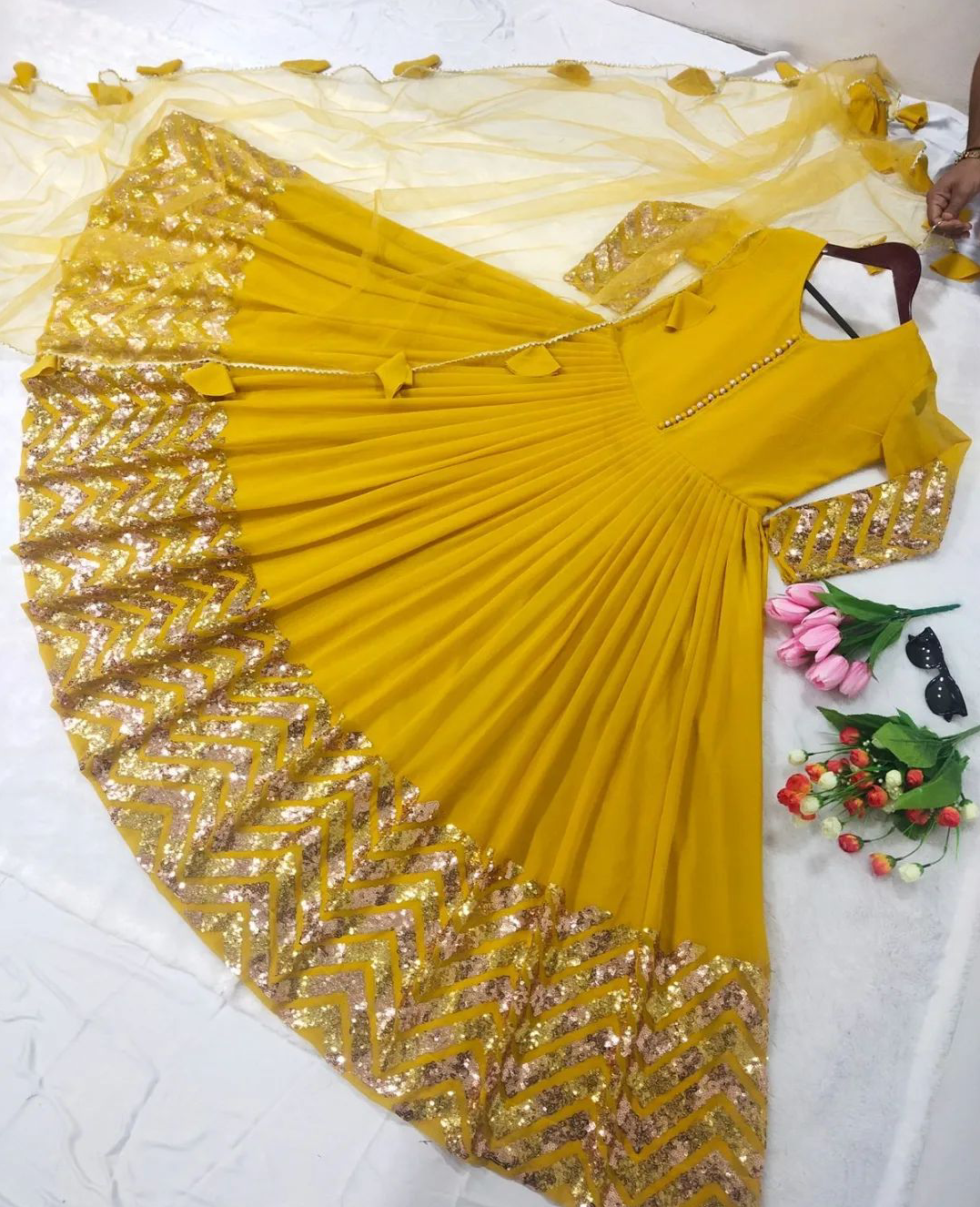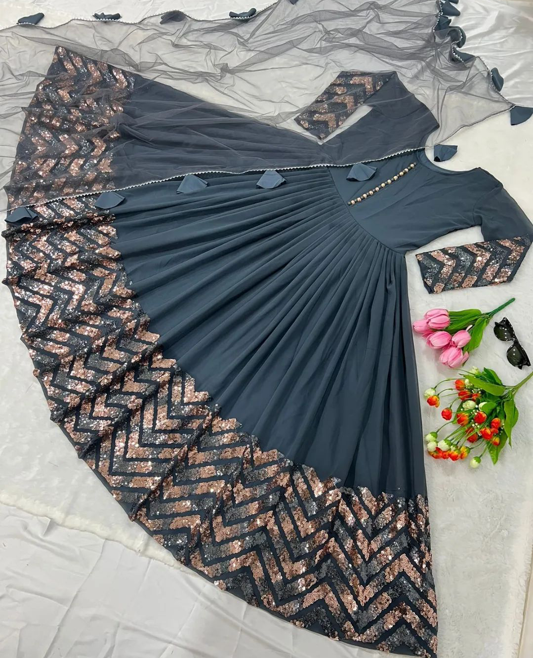 Gown Fabric : Georgette With Heavy Embroidery 5mm Copper and 3mm Tone to Tone Sequence Work