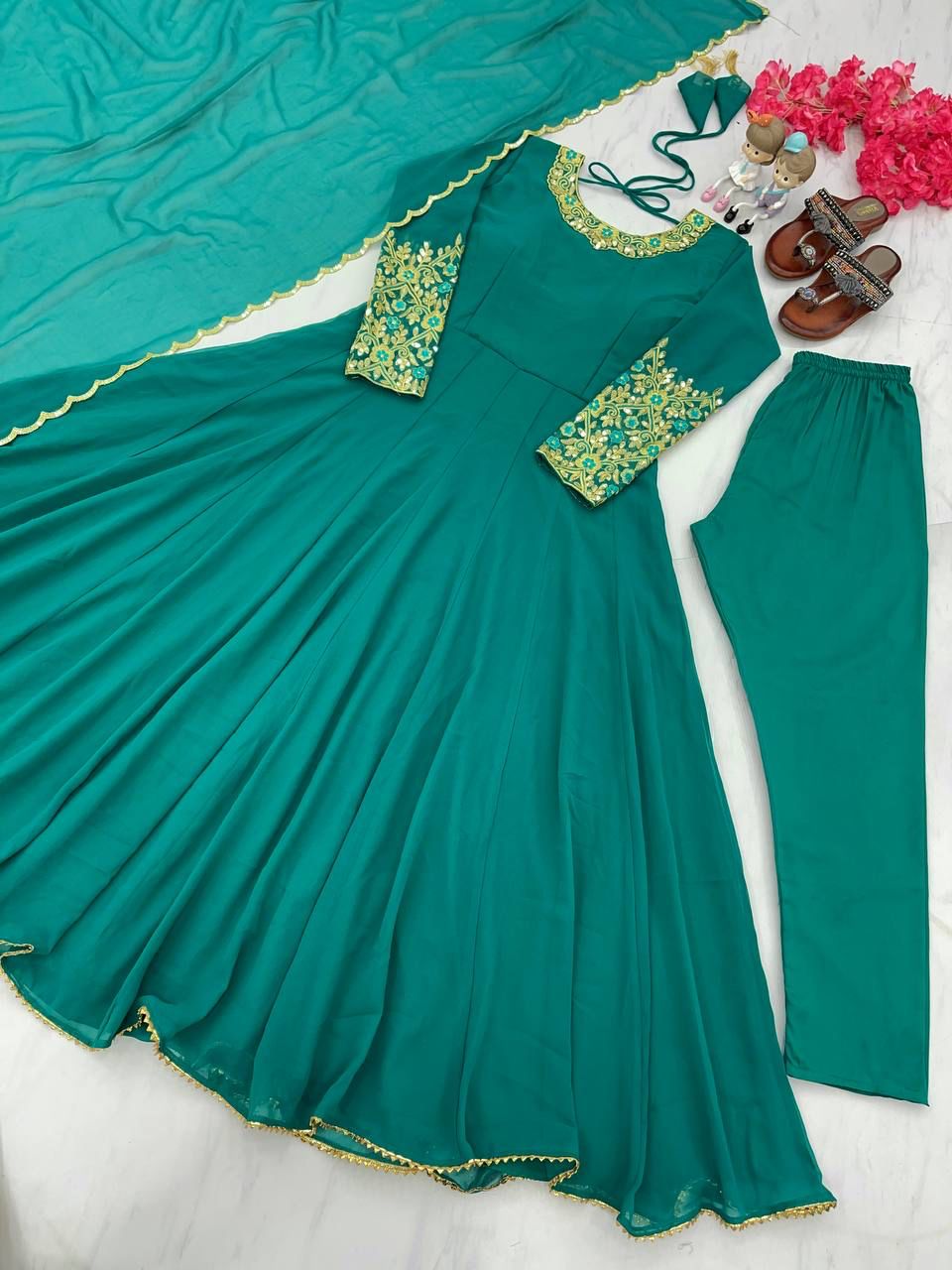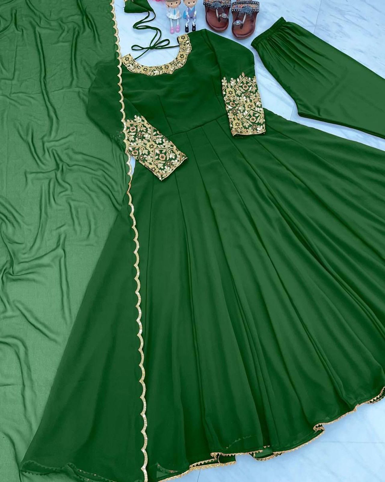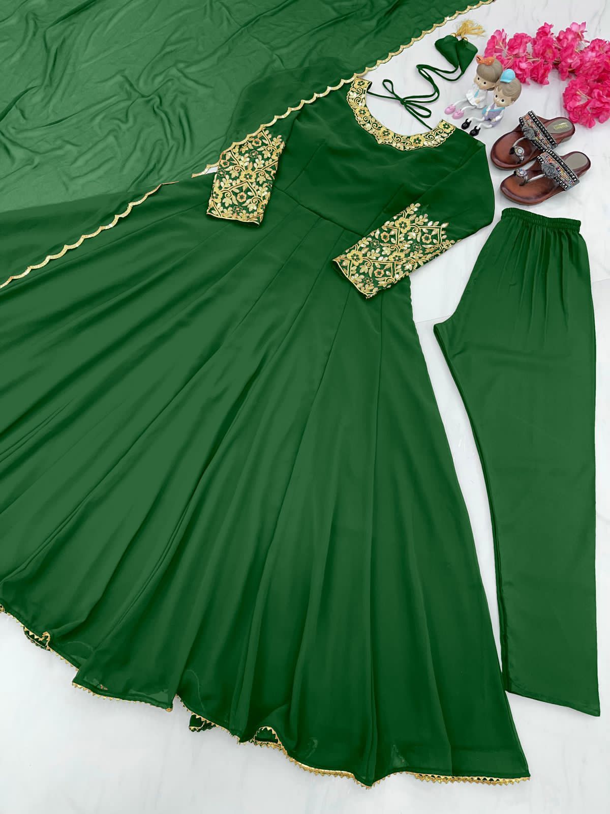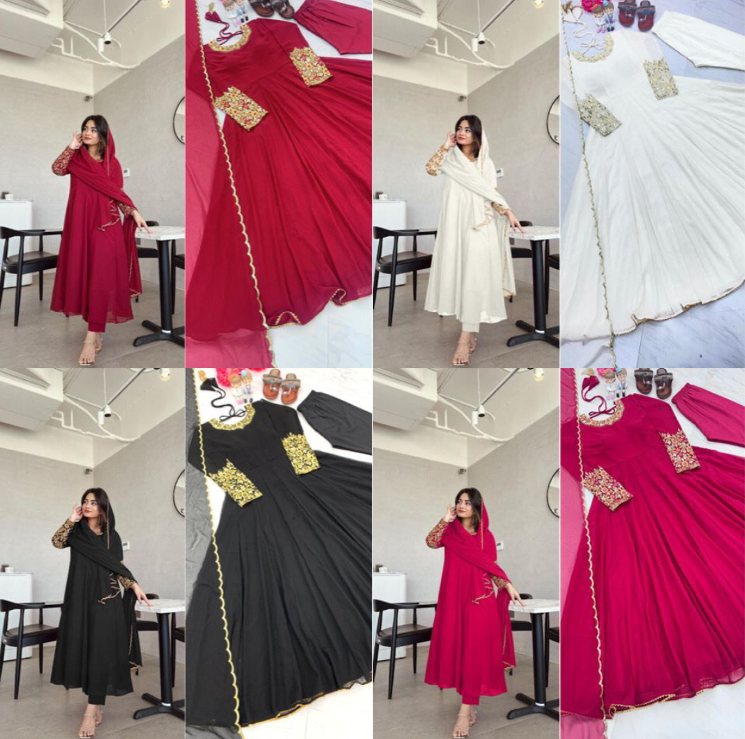 Launching New Party Wear Look Anarkali Gown,Dupatta & Bottom Set