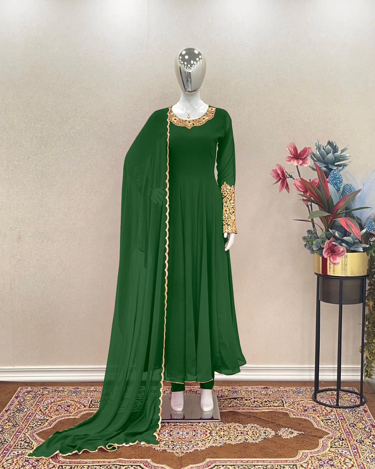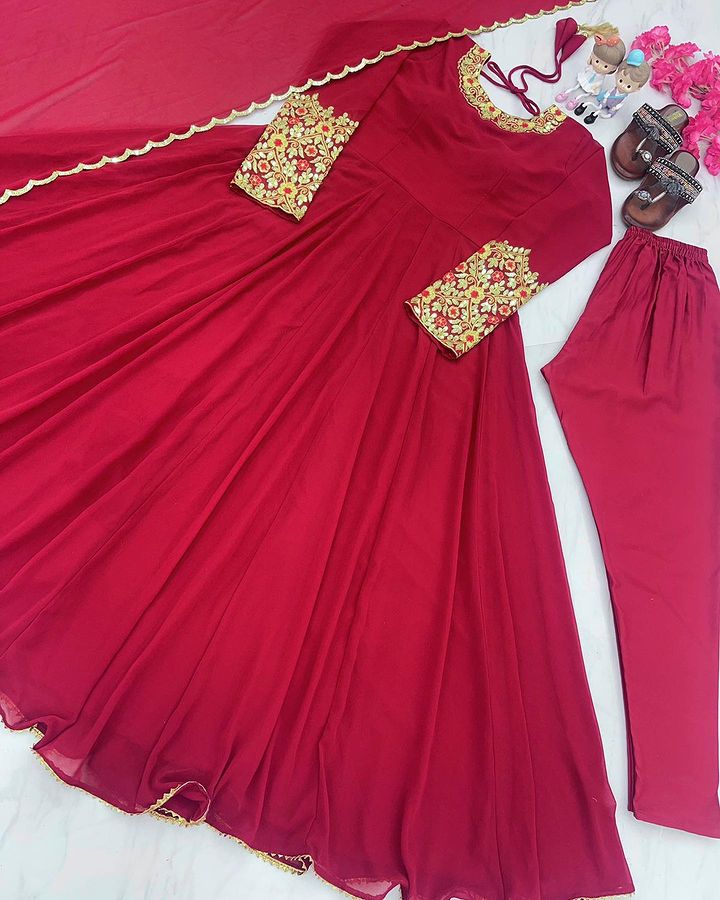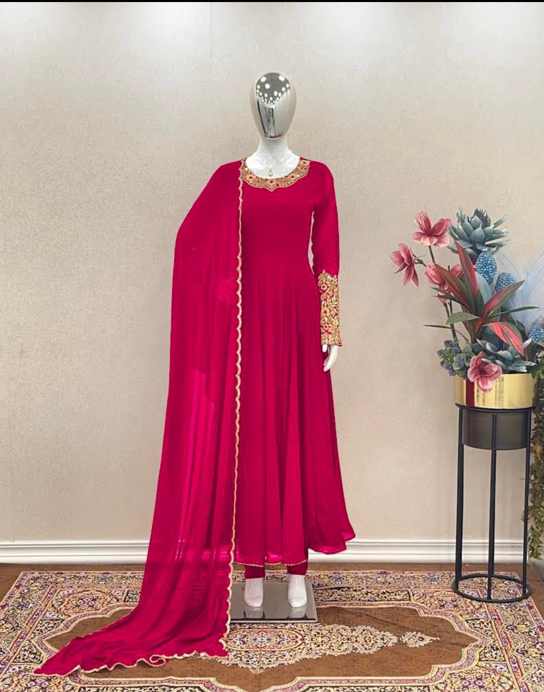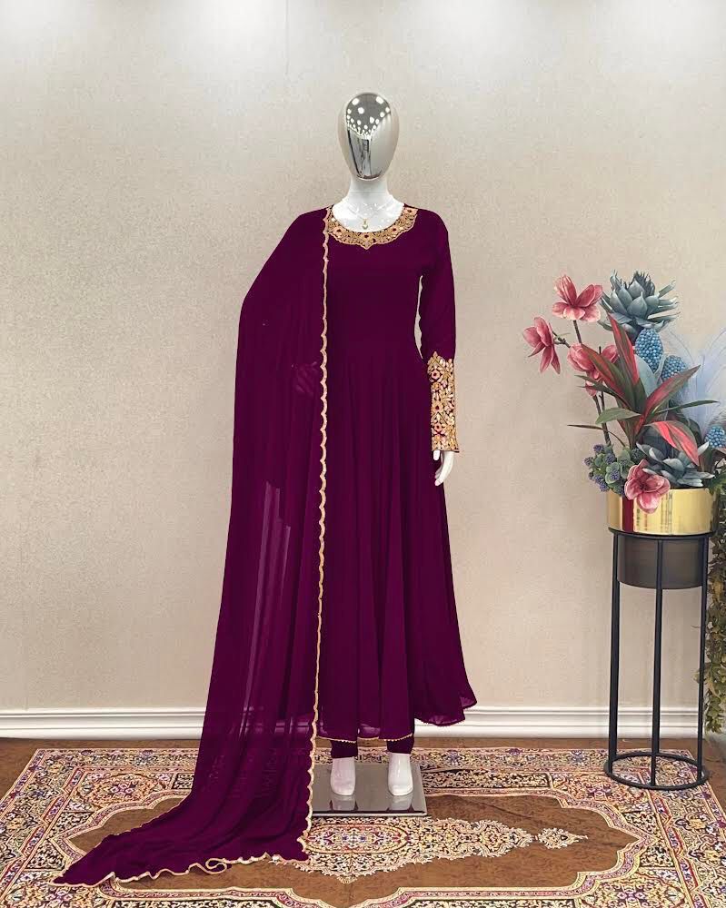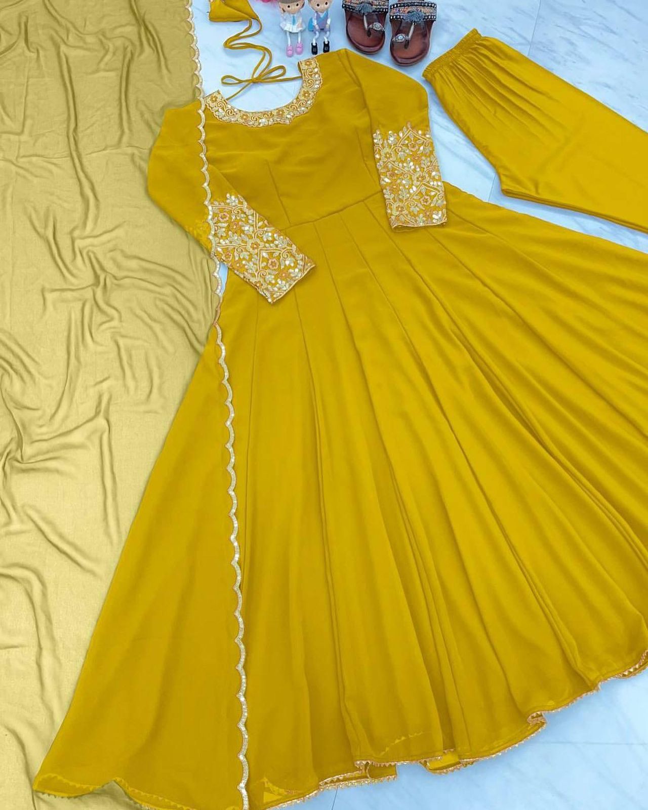 Launching New Party Wear Look Anarkali Gown,Dupatta & Bottom Set