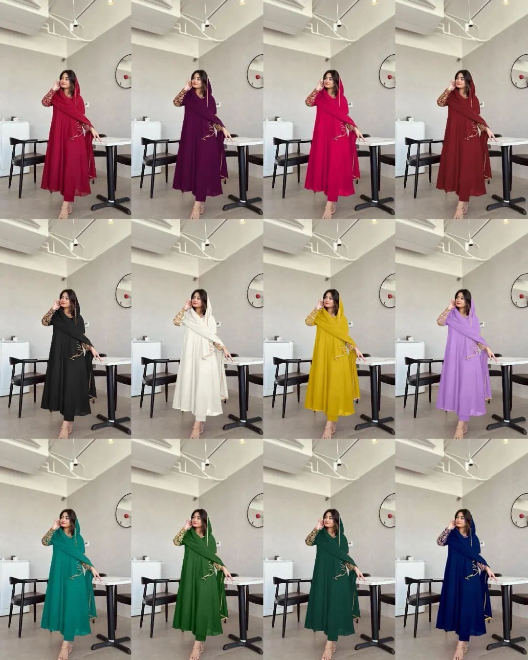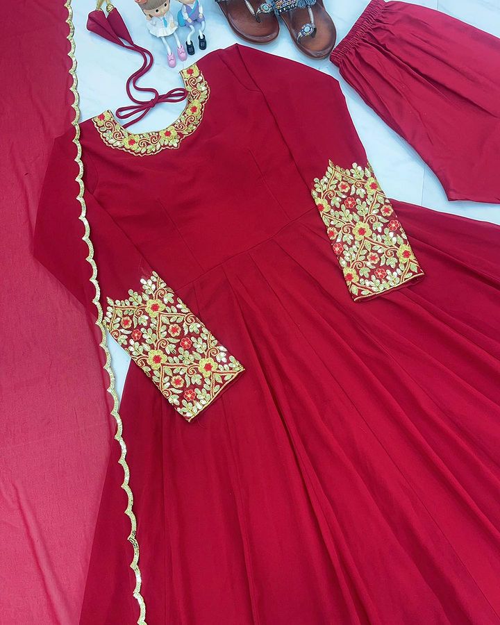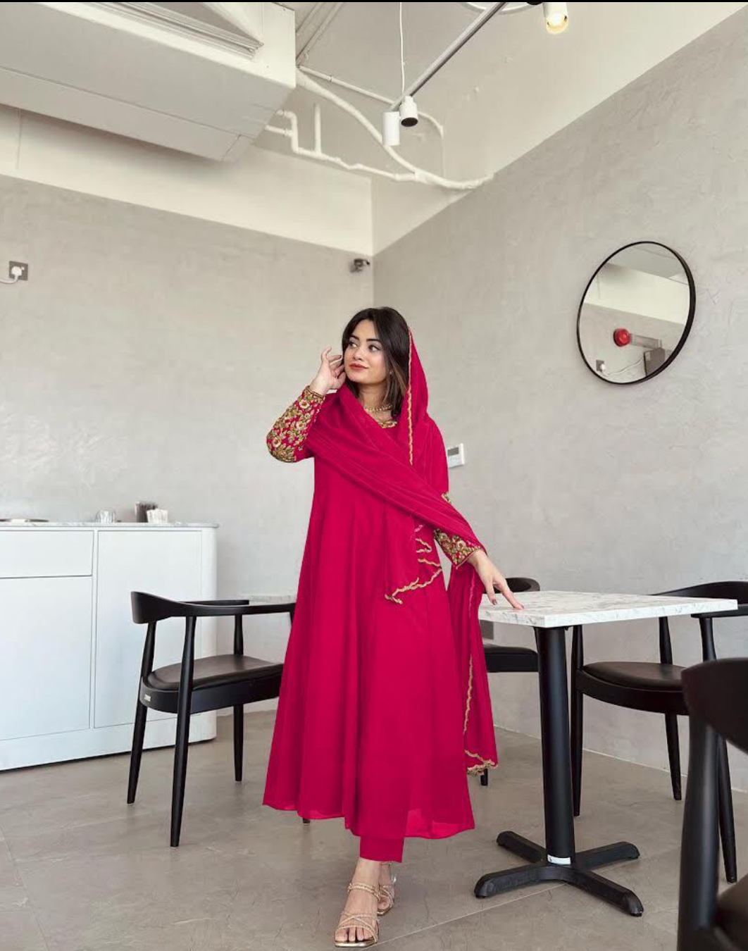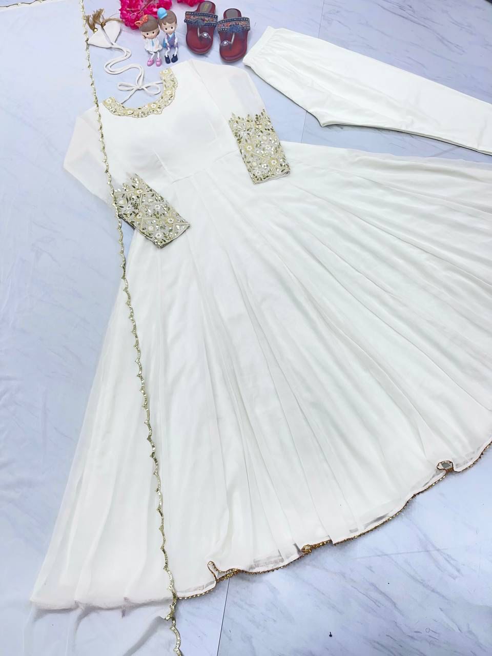 Launching New Party Wear Look Anarkali Gown,Dupatta & Bottom Set