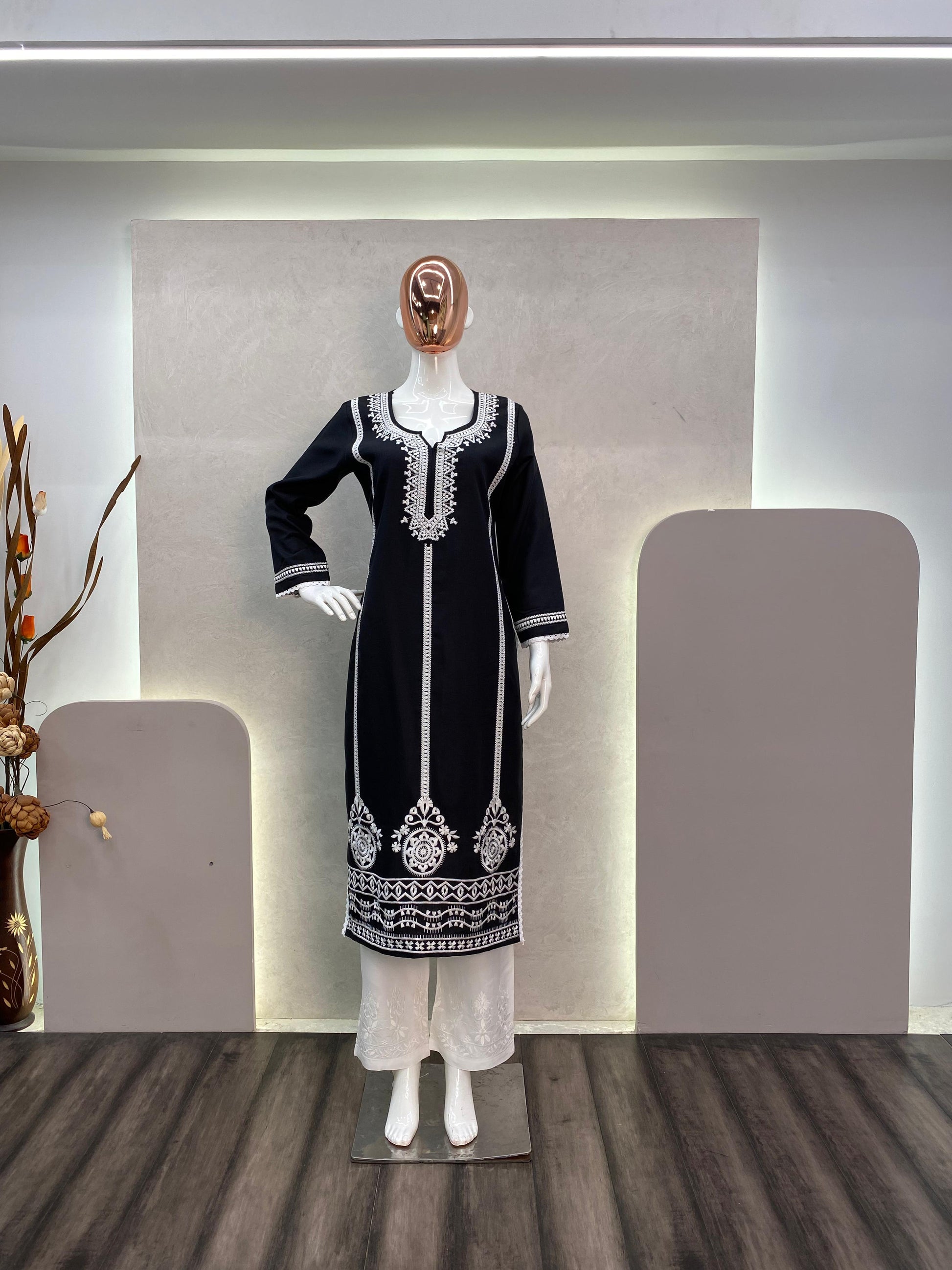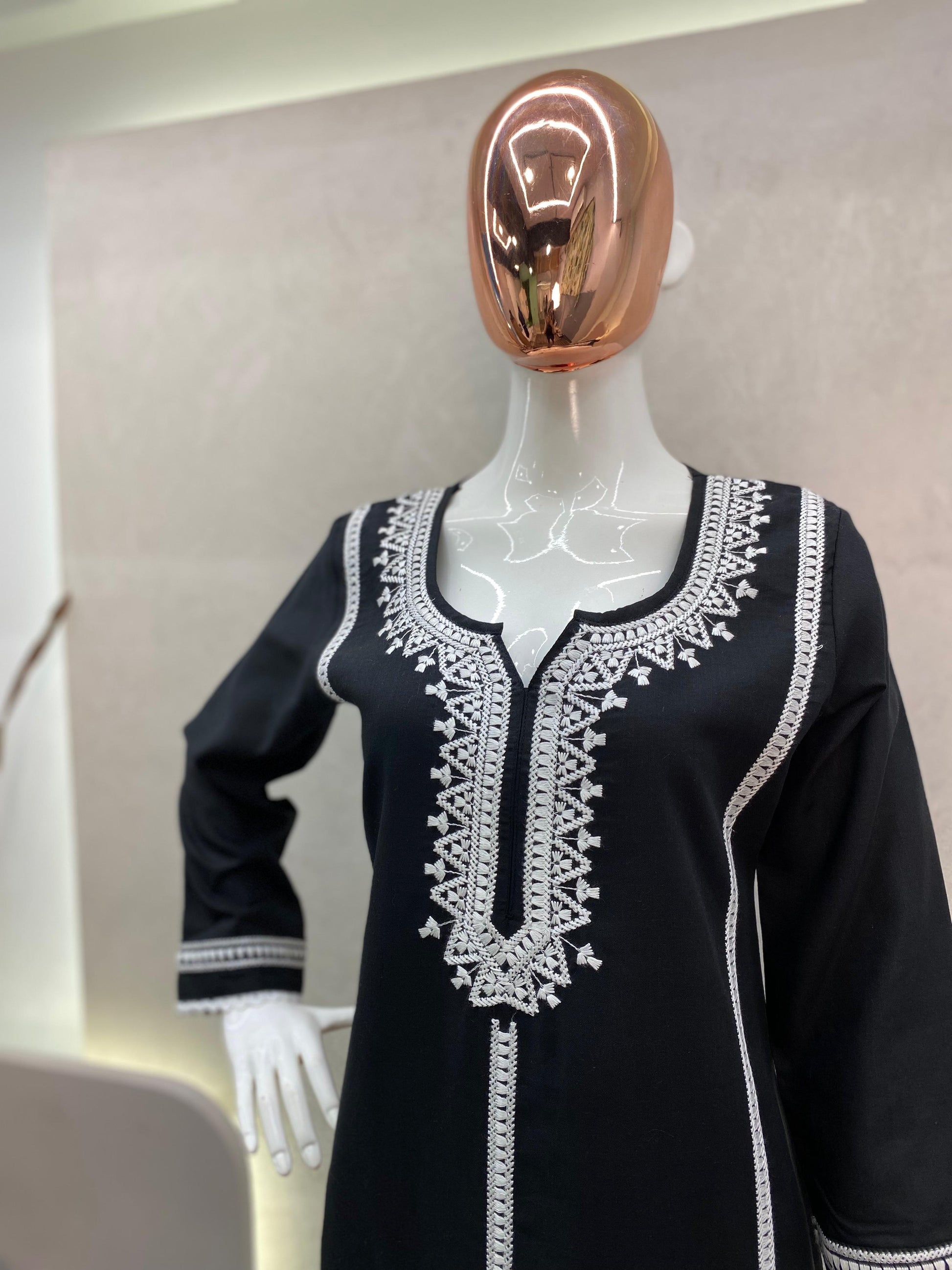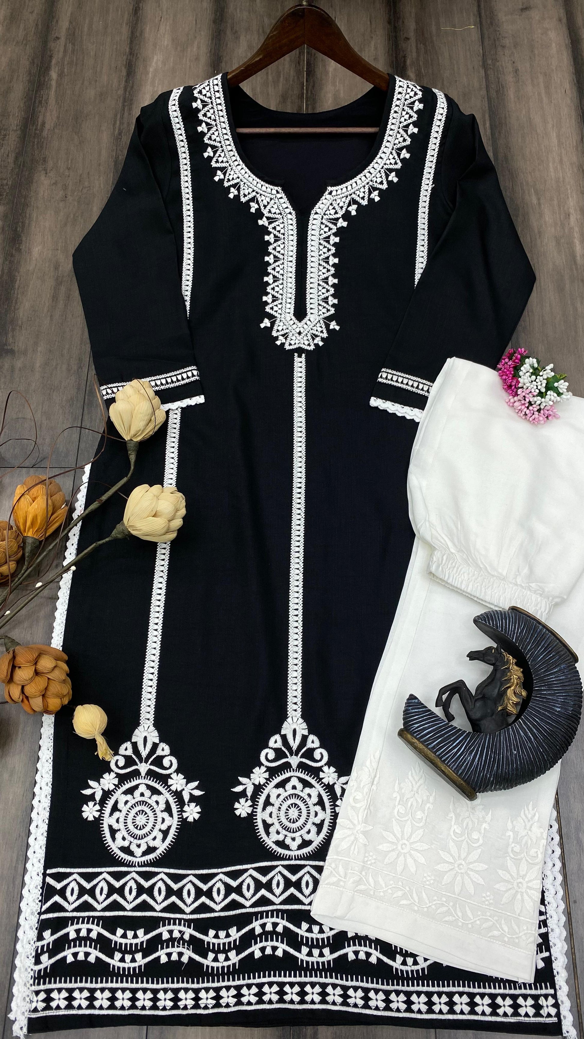DESIGNER WEAR TRENDING TESLA TOP WITH COTTON THREAD EMBROIDERED WORK AND WORK PLAZO