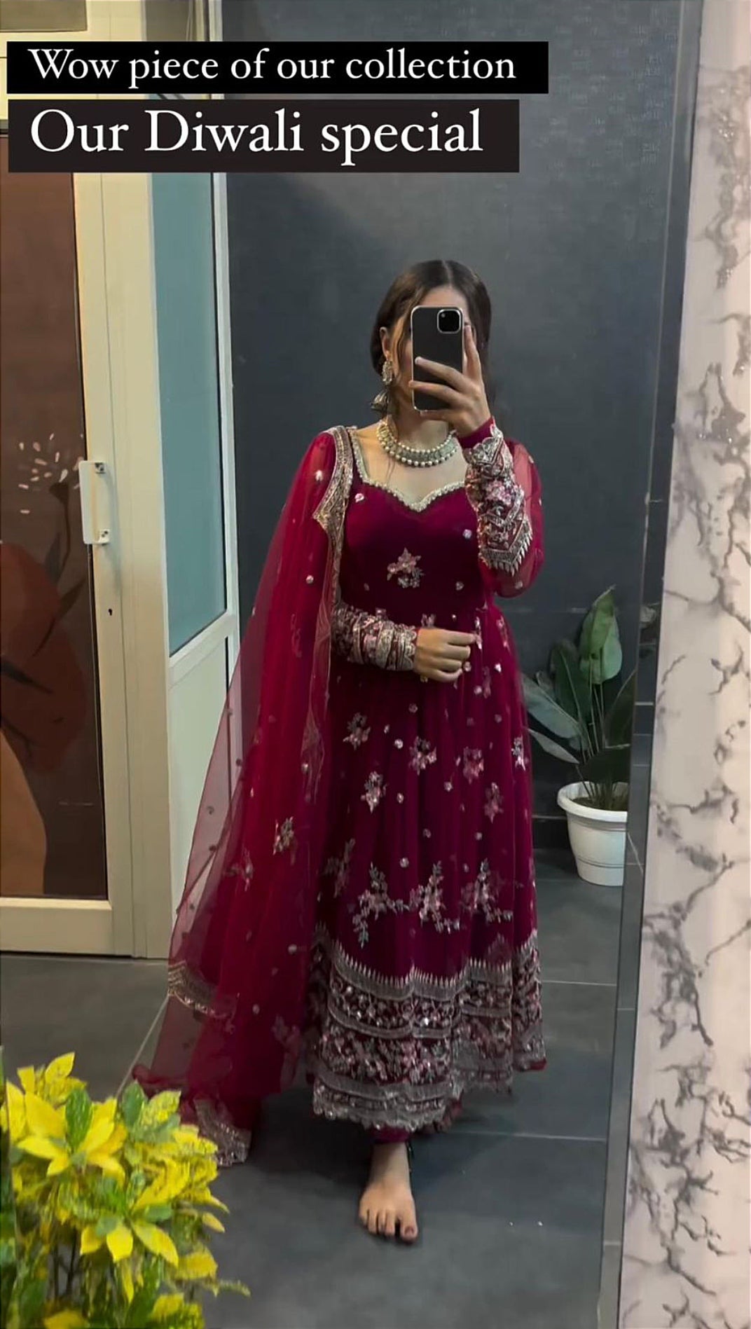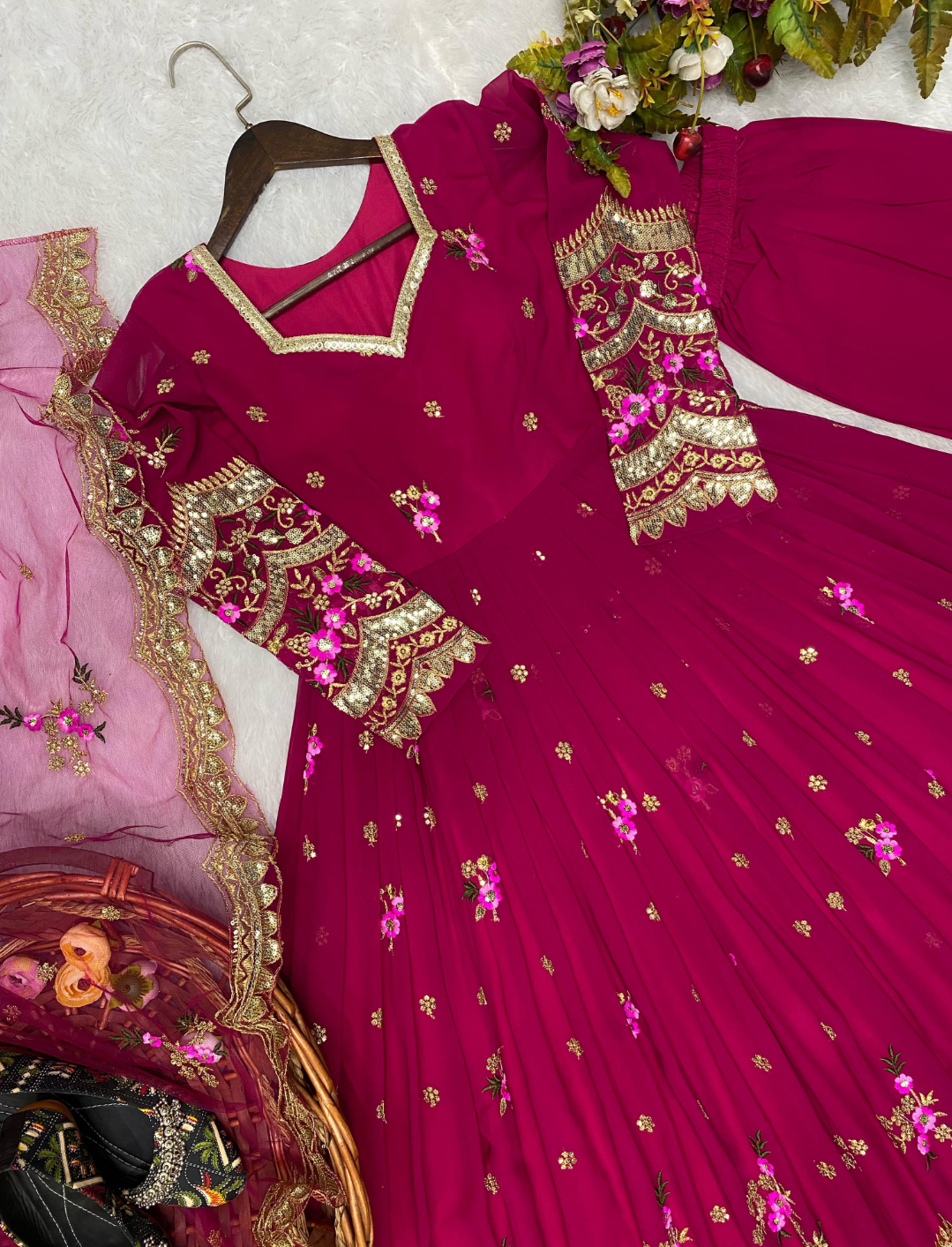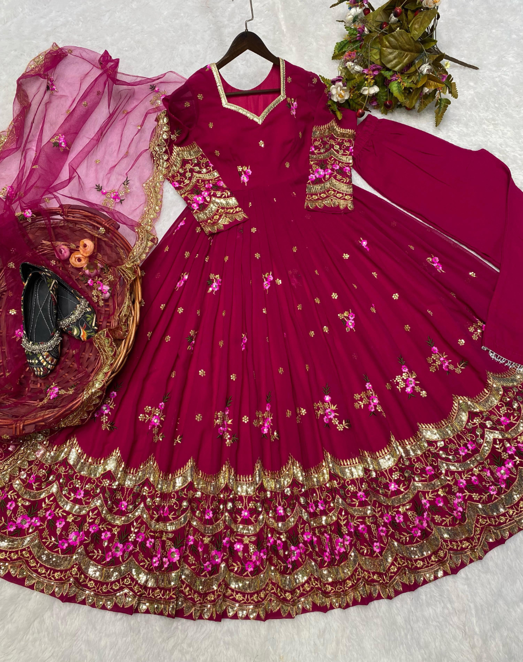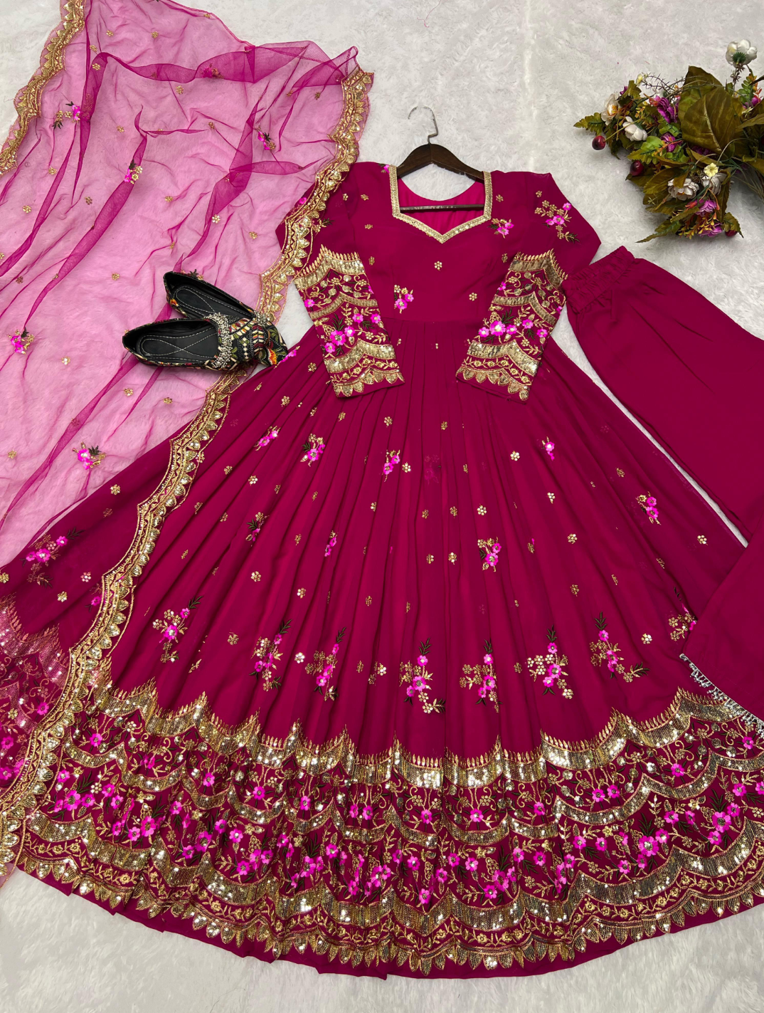 DIWALI TRENDING DESIGN IN ANARKALI SPECIAL CHERRY PINK FANCY BLOOMING GEORGETTE SEQUENCES EMBROIDERED WORK ANARKALI TOP AND PANT WITH DUPATTA