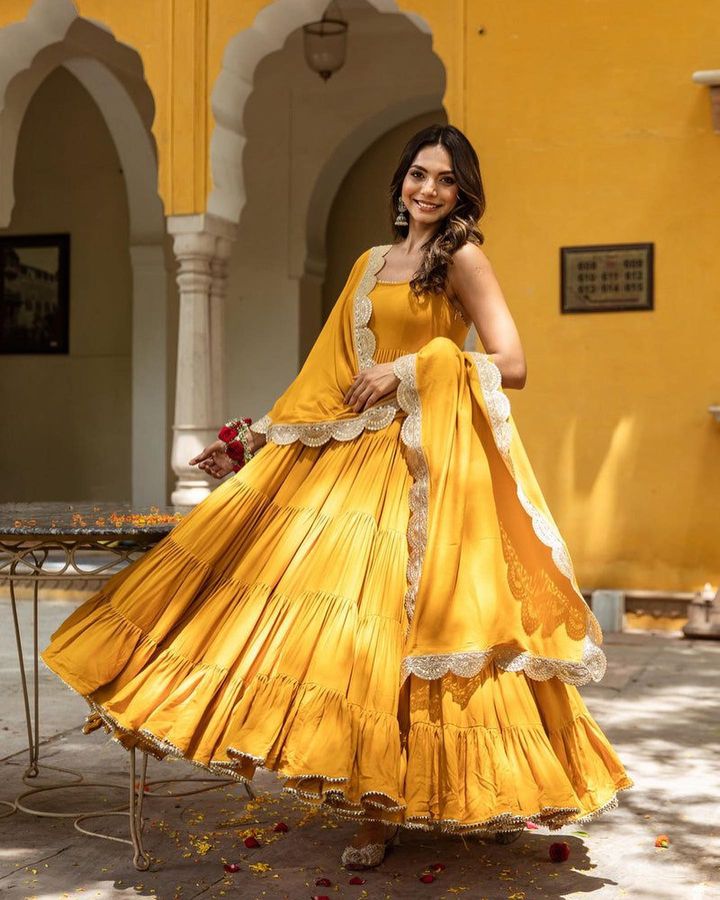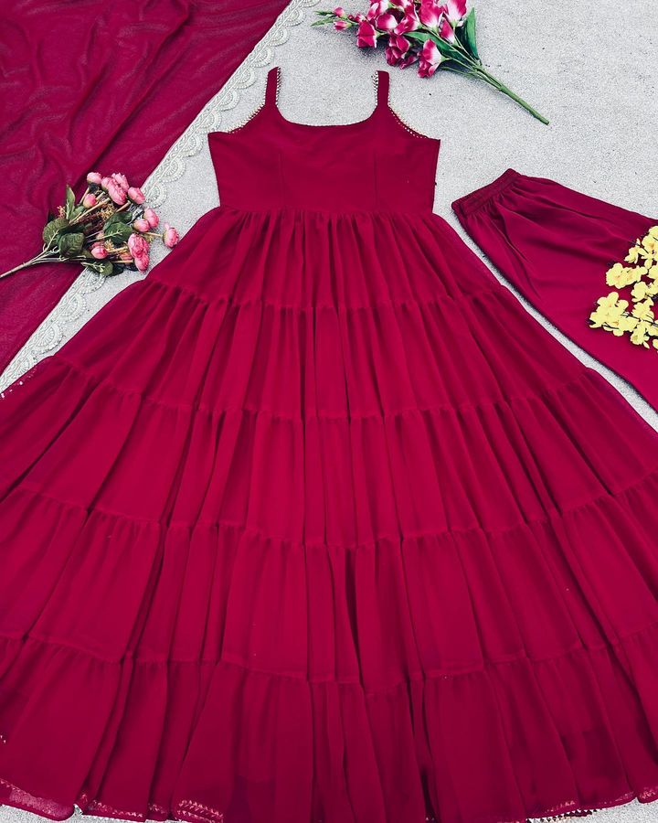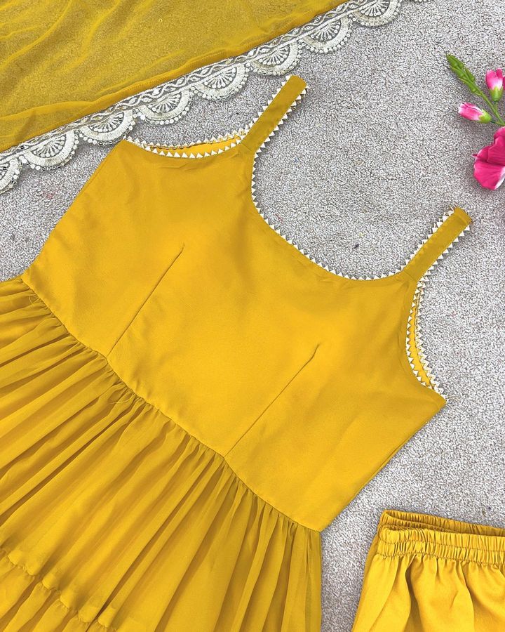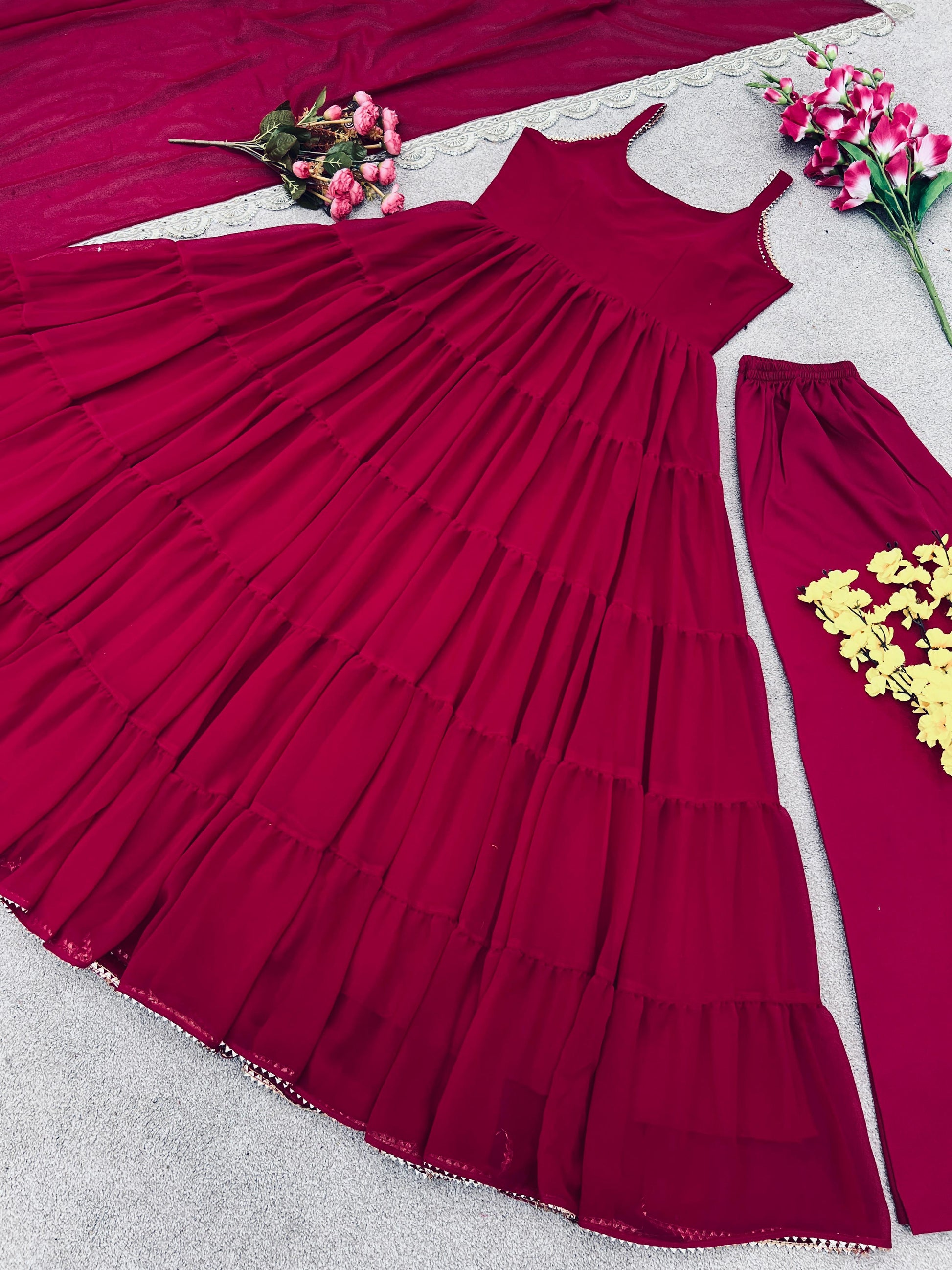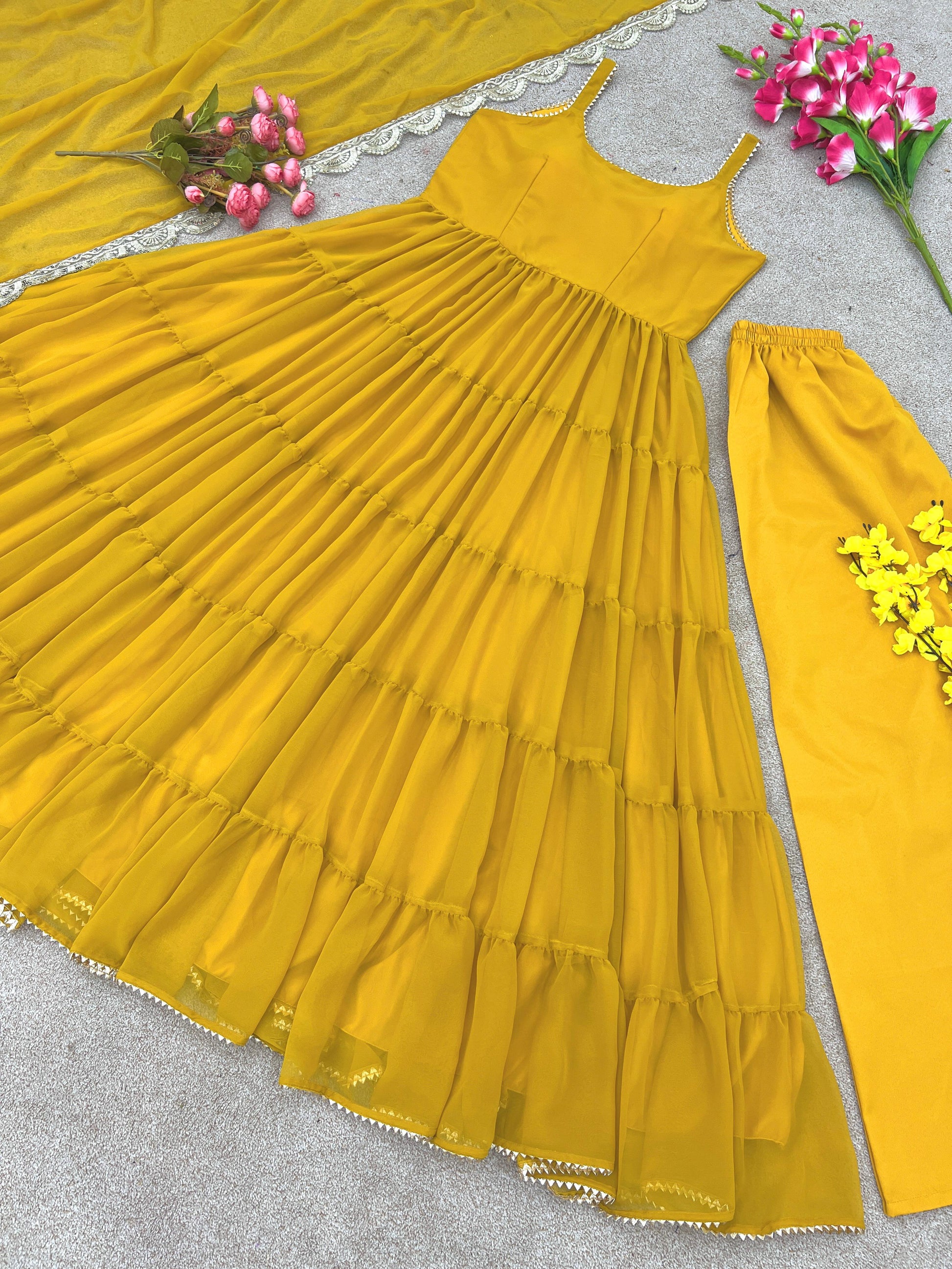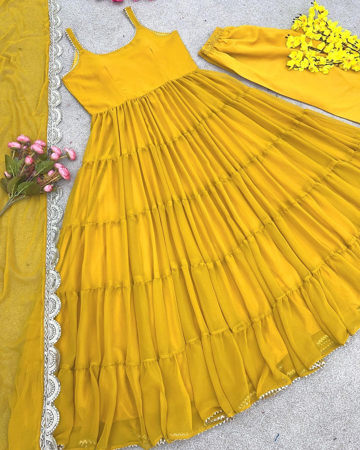 Presenting New Anarkali Georgette Gown With With Fully 10 Meter Ruffle Flair and Full Stitched With Dupatta Ready To Wear Collection
