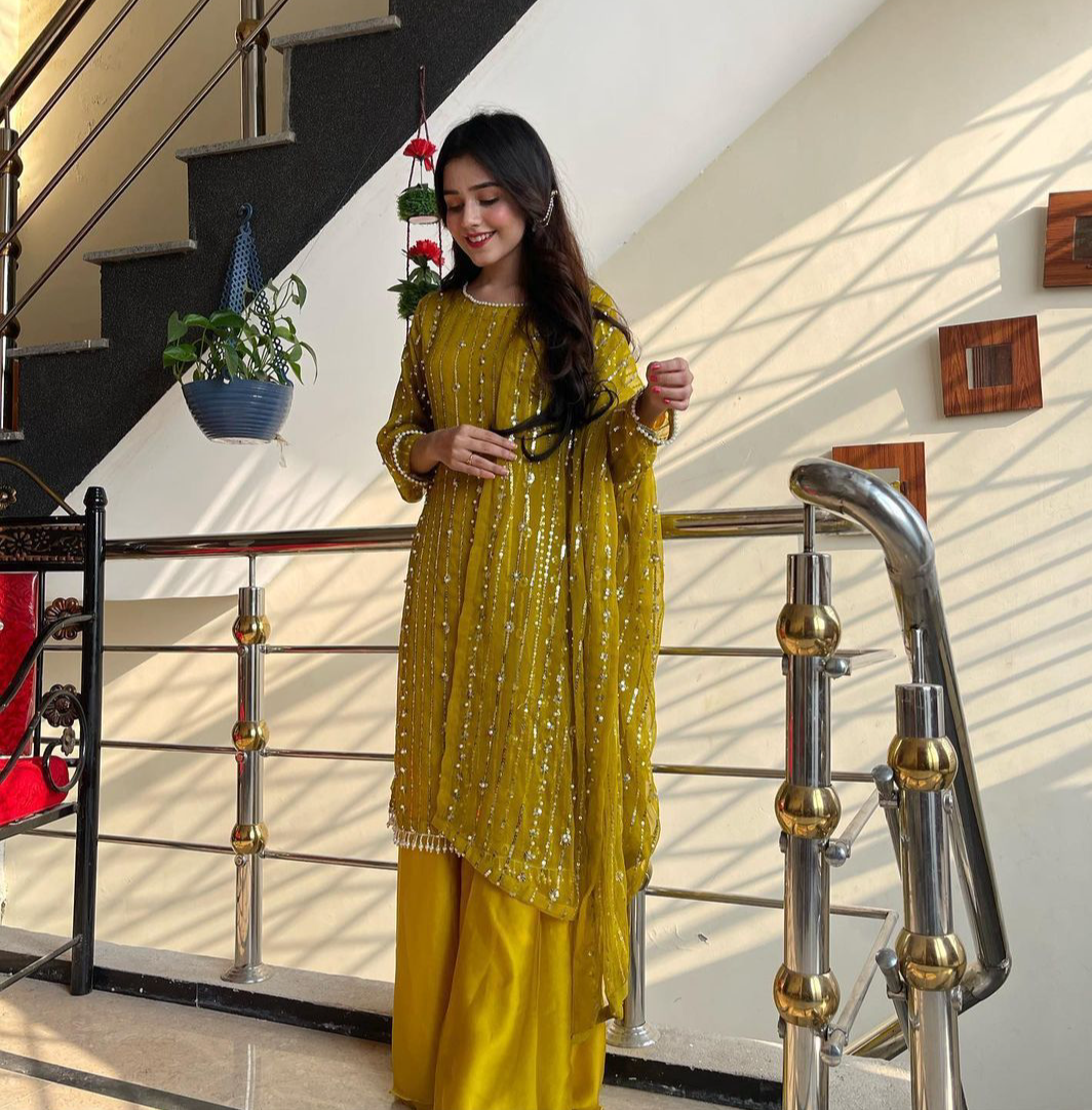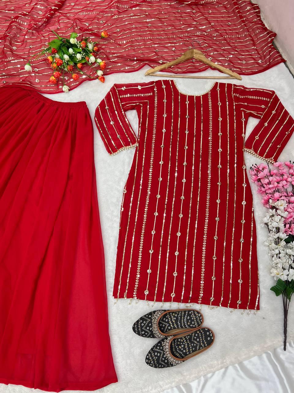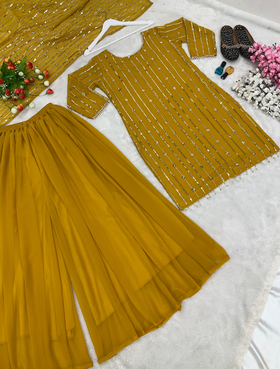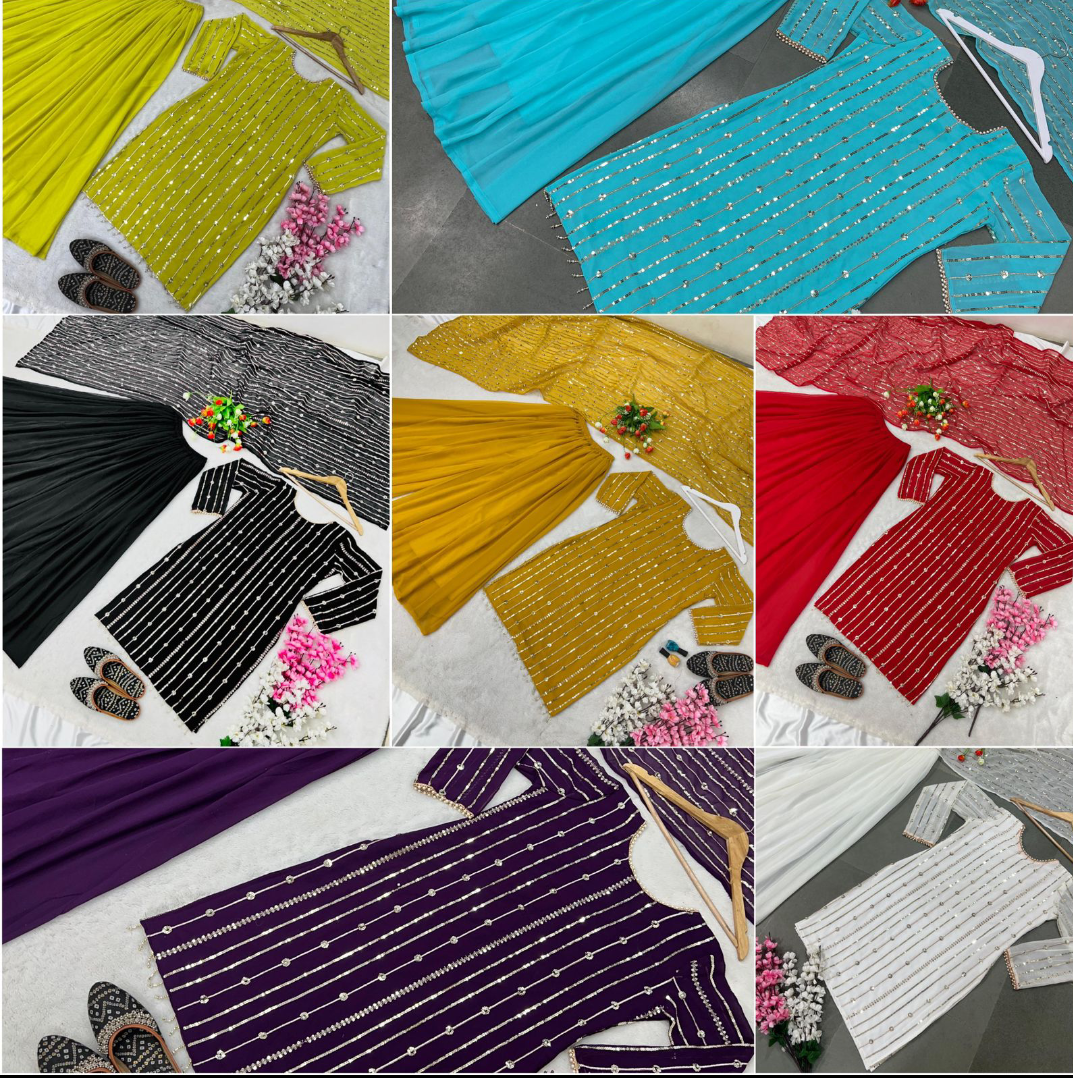 Presenting New Festival Collection With Georgette And Heavy Embroidery Sequence Work Top-Plazo And Dupatta Set Fully Stitched Ready To Wear