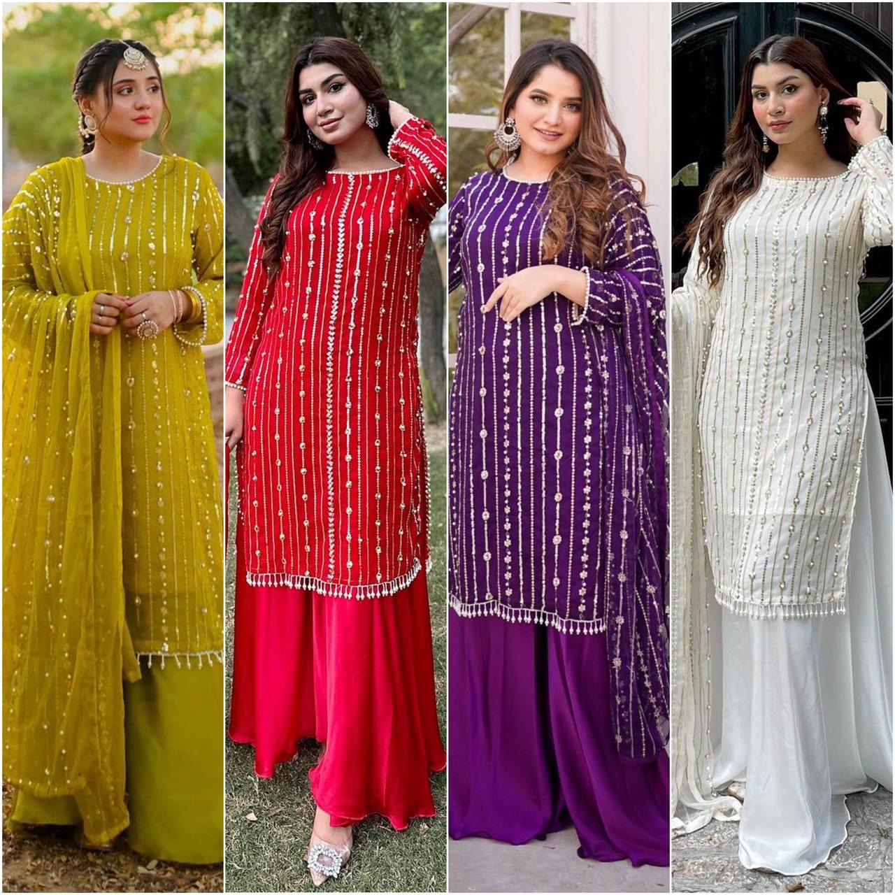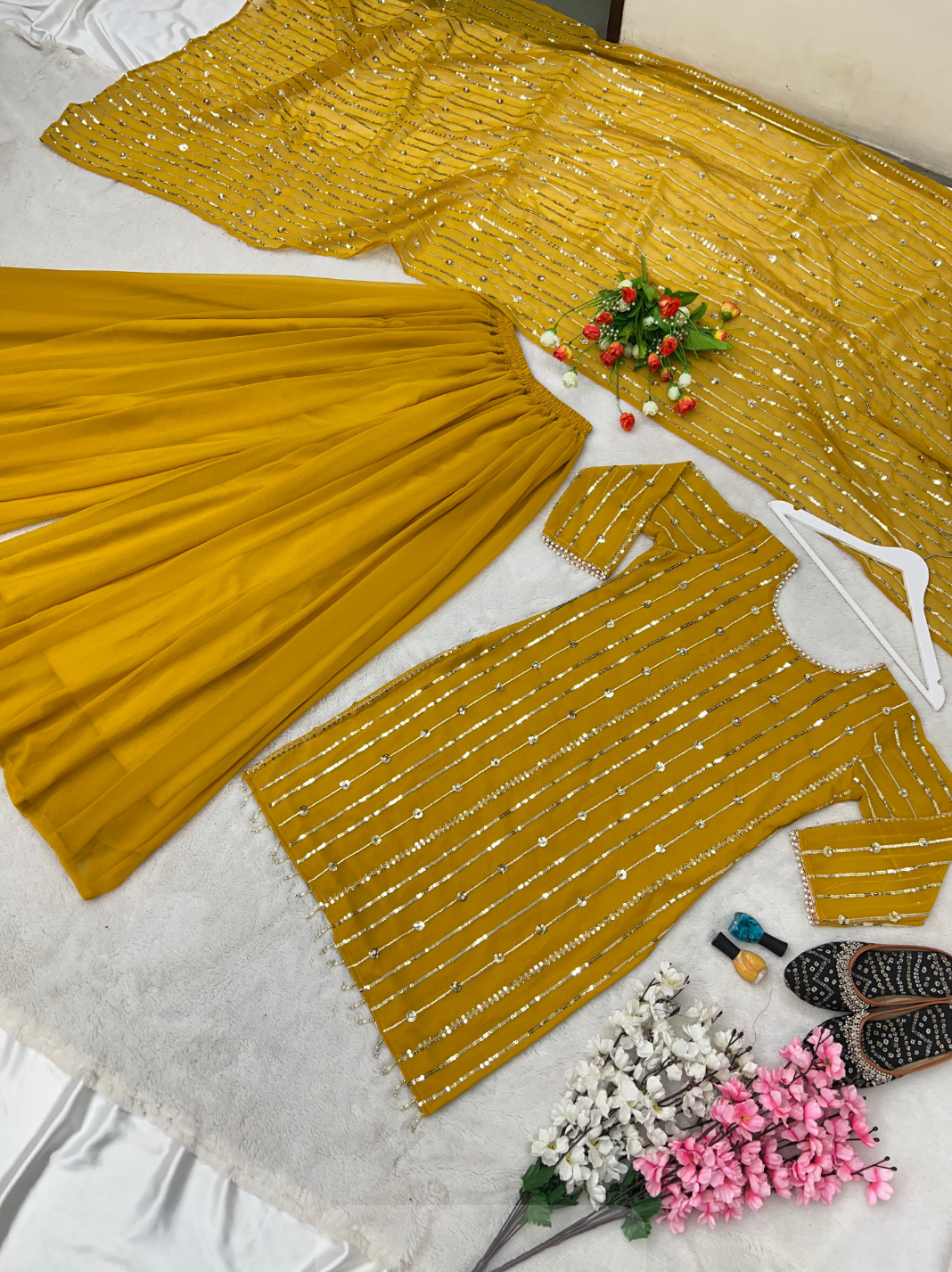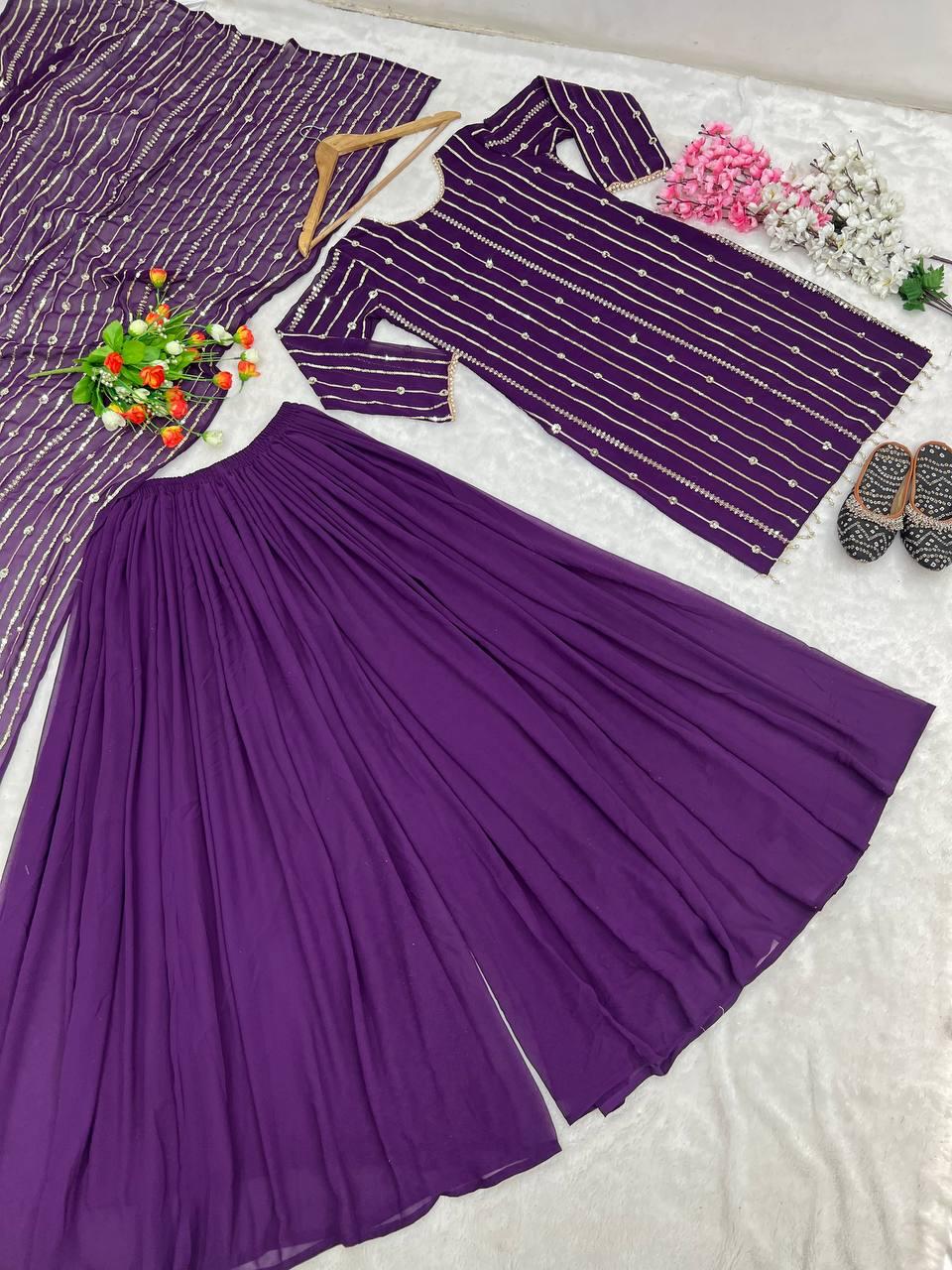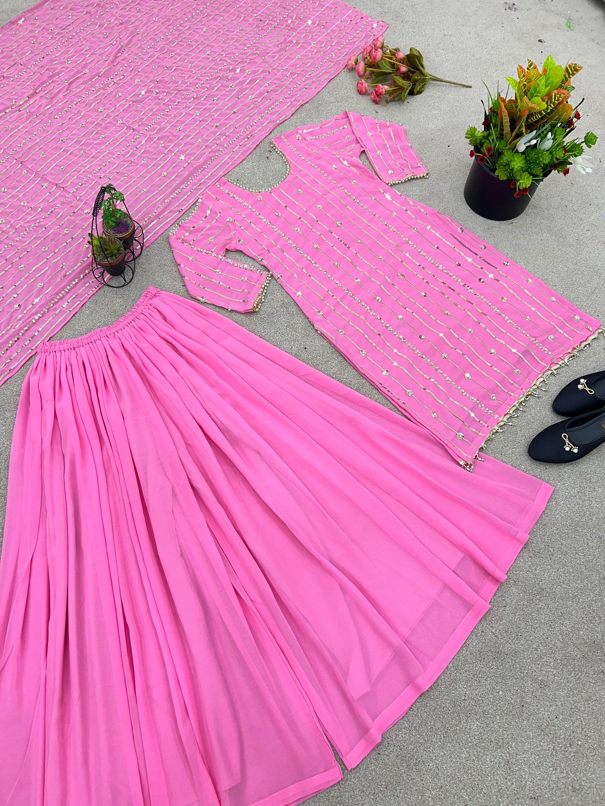 Presenting New Festival Collection With Georgette And Heavy Embroidery Sequence Work Top-Plazo And Dupatta Set Fully Stitched Ready To Wear