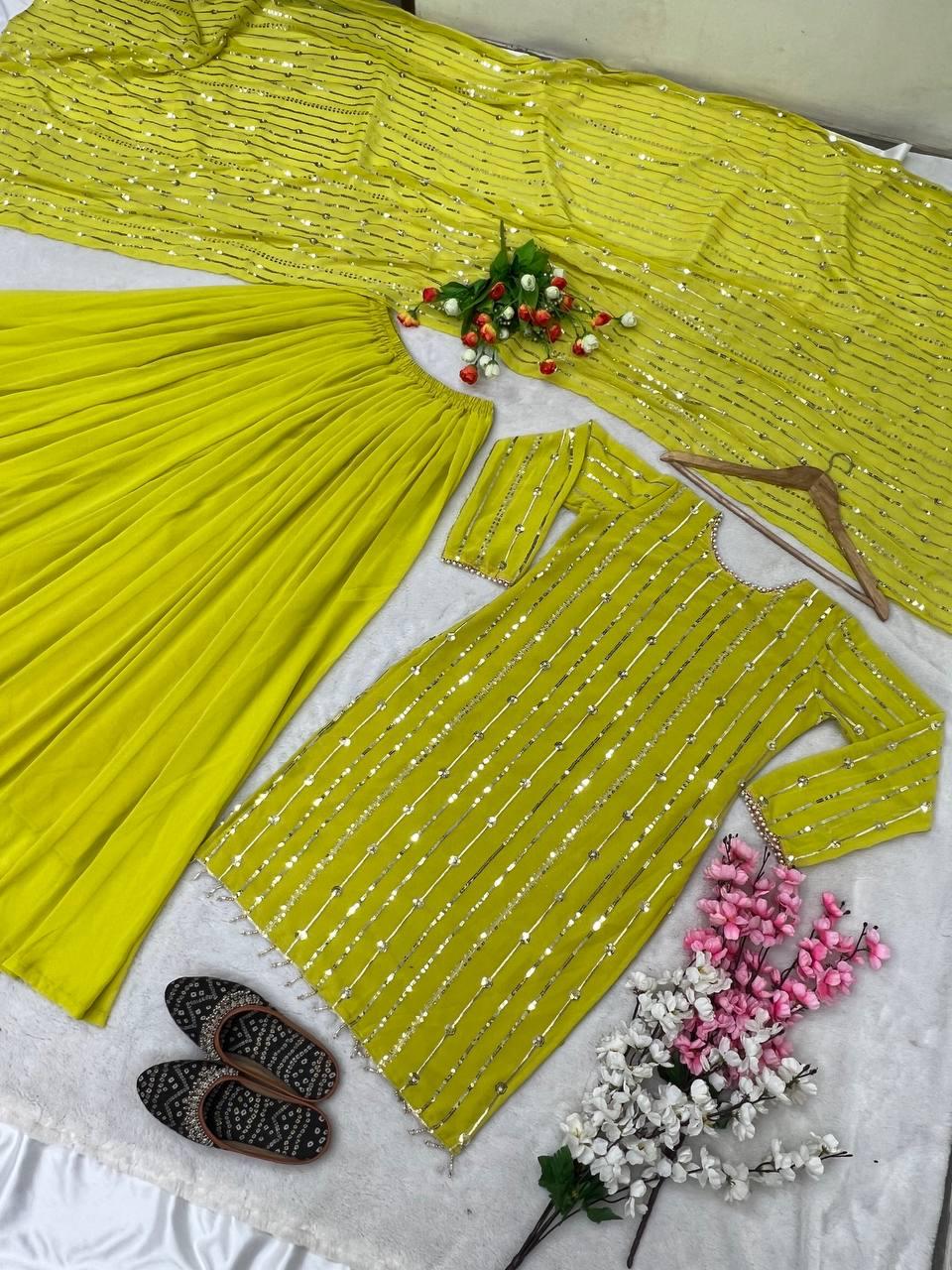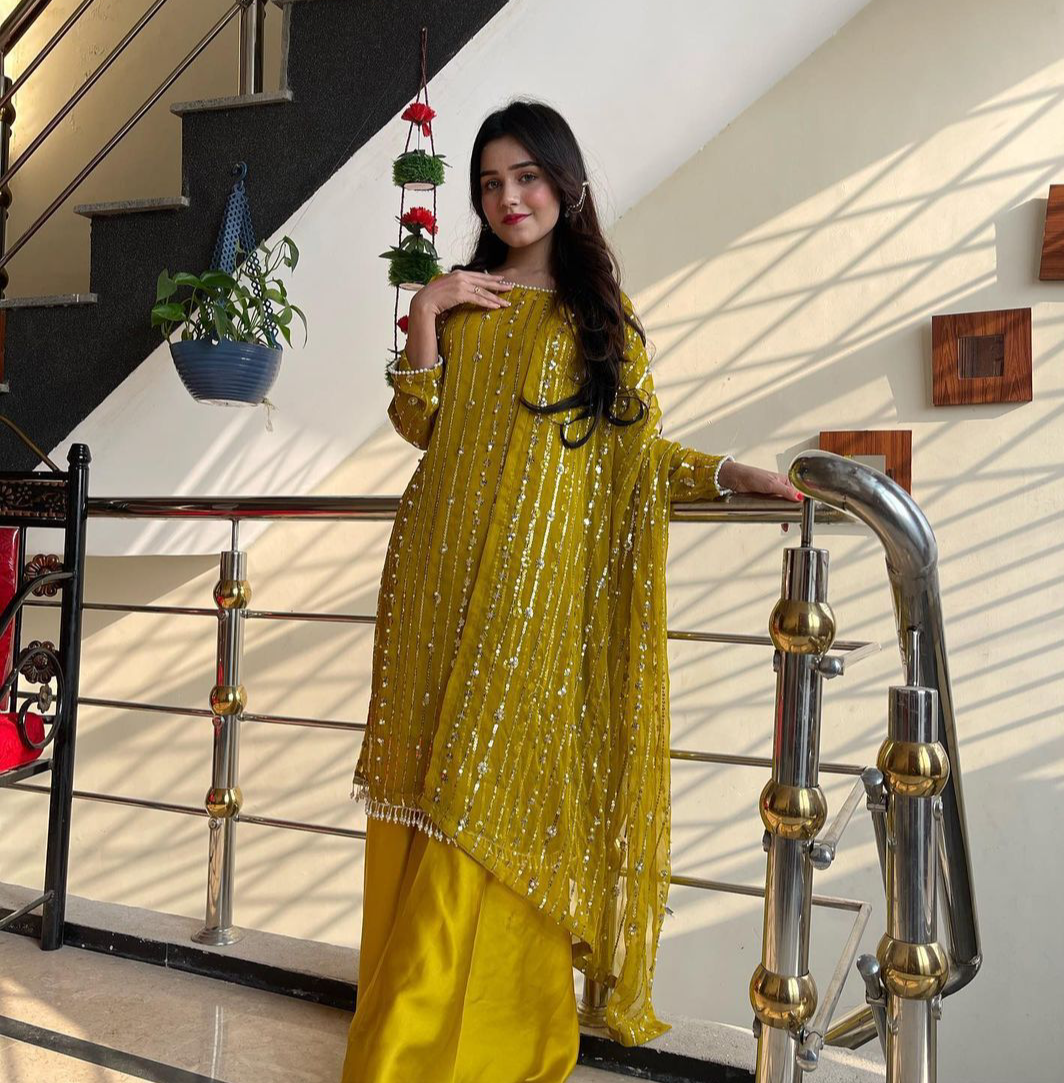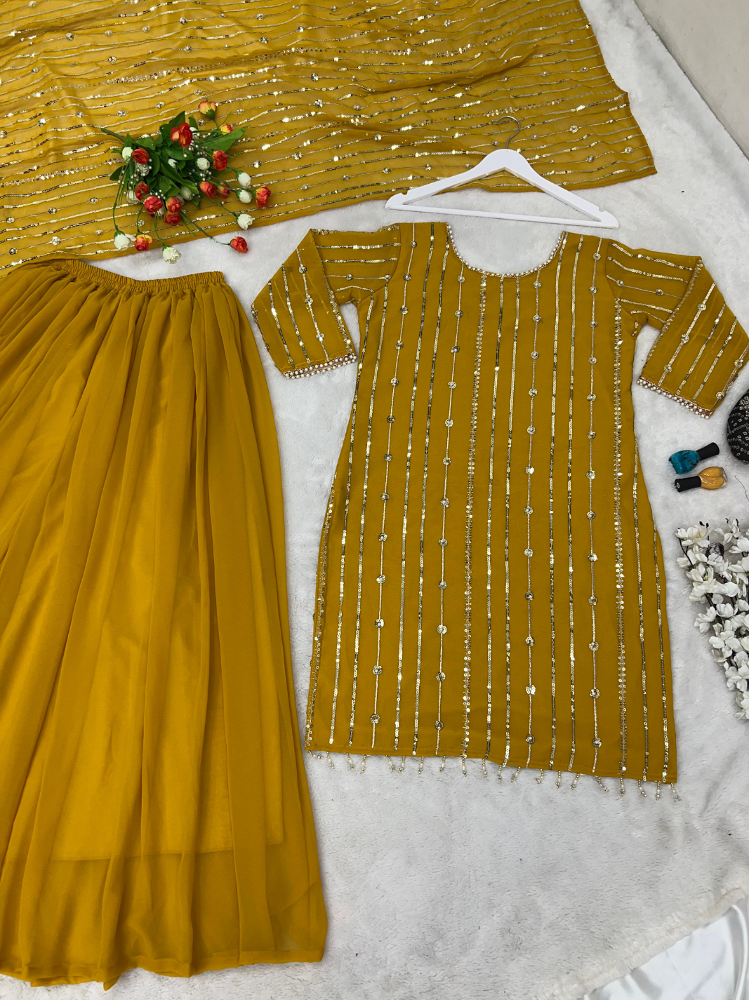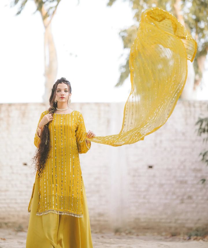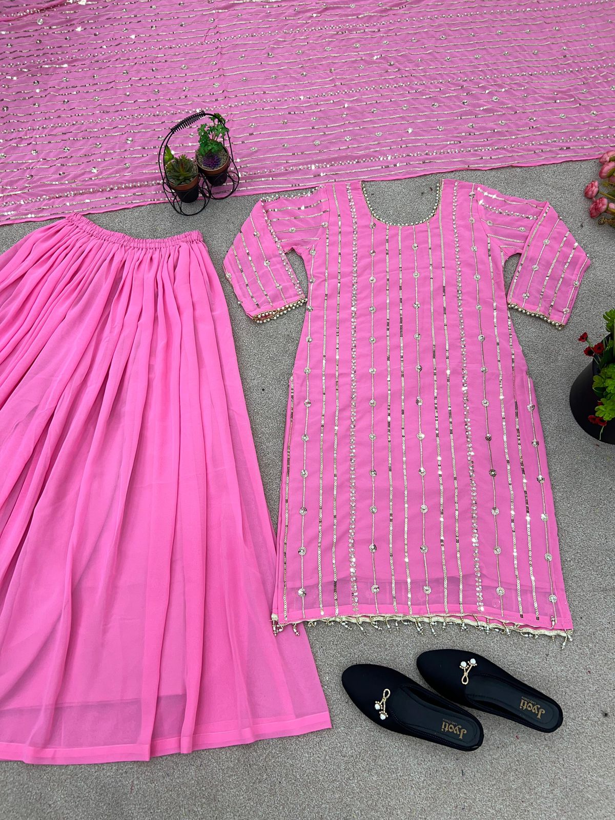Presenting New Festival Collection With Georgette And Heavy Embroidery Sequence Work Top-Plazo And Dupatta Set Fully Stitched Ready To Wear