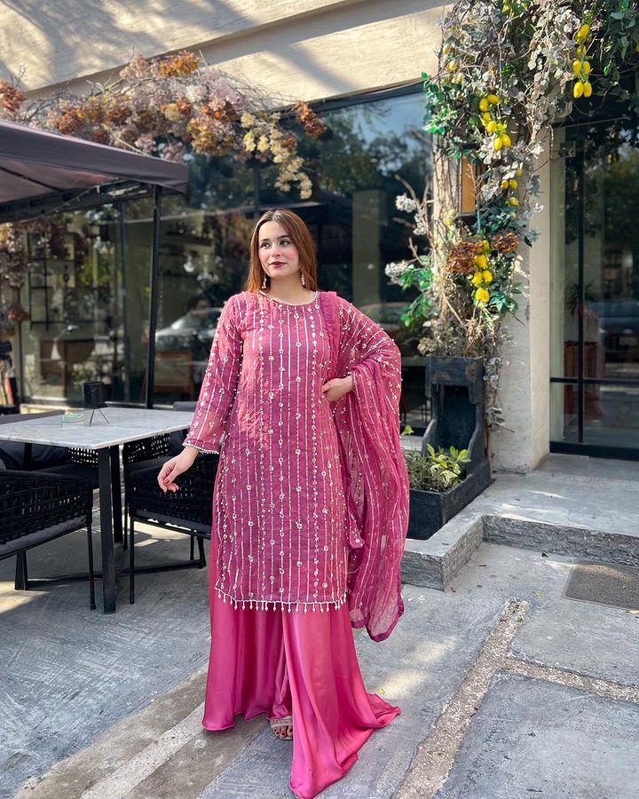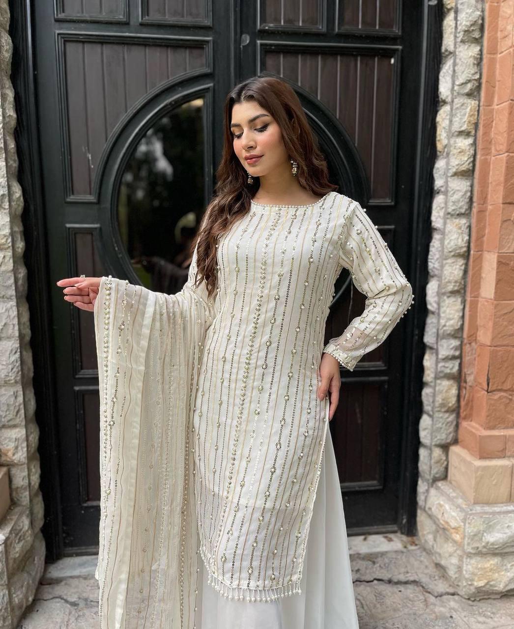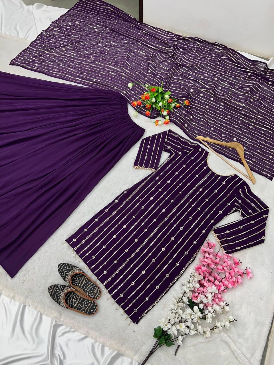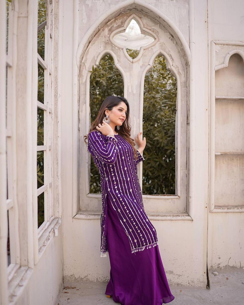 Presenting New Festival Collection With Georgette And Heavy Embroidery Sequence Work Top-Plazo And Dupatta Set Fully Stitched Ready To Wear