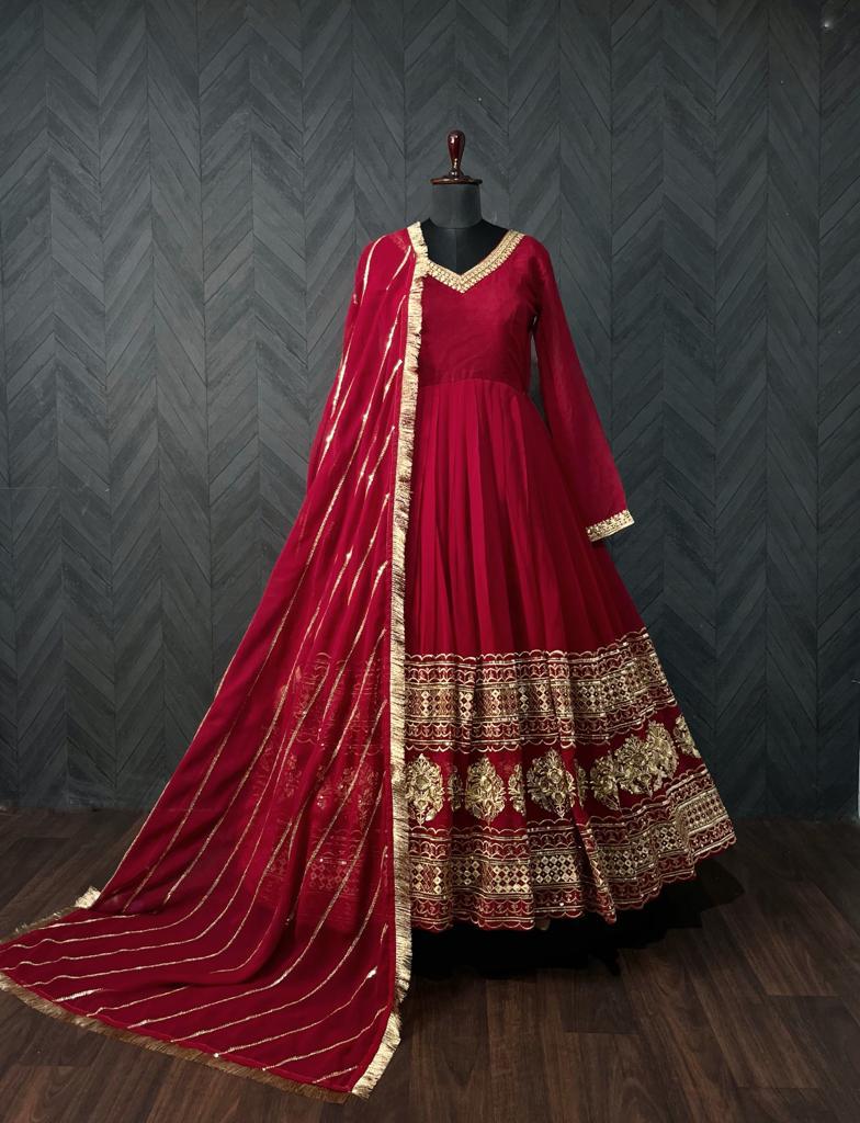 Blooming Gown with Dupatta With Attractive Embroidered Sequins work with Lace Border