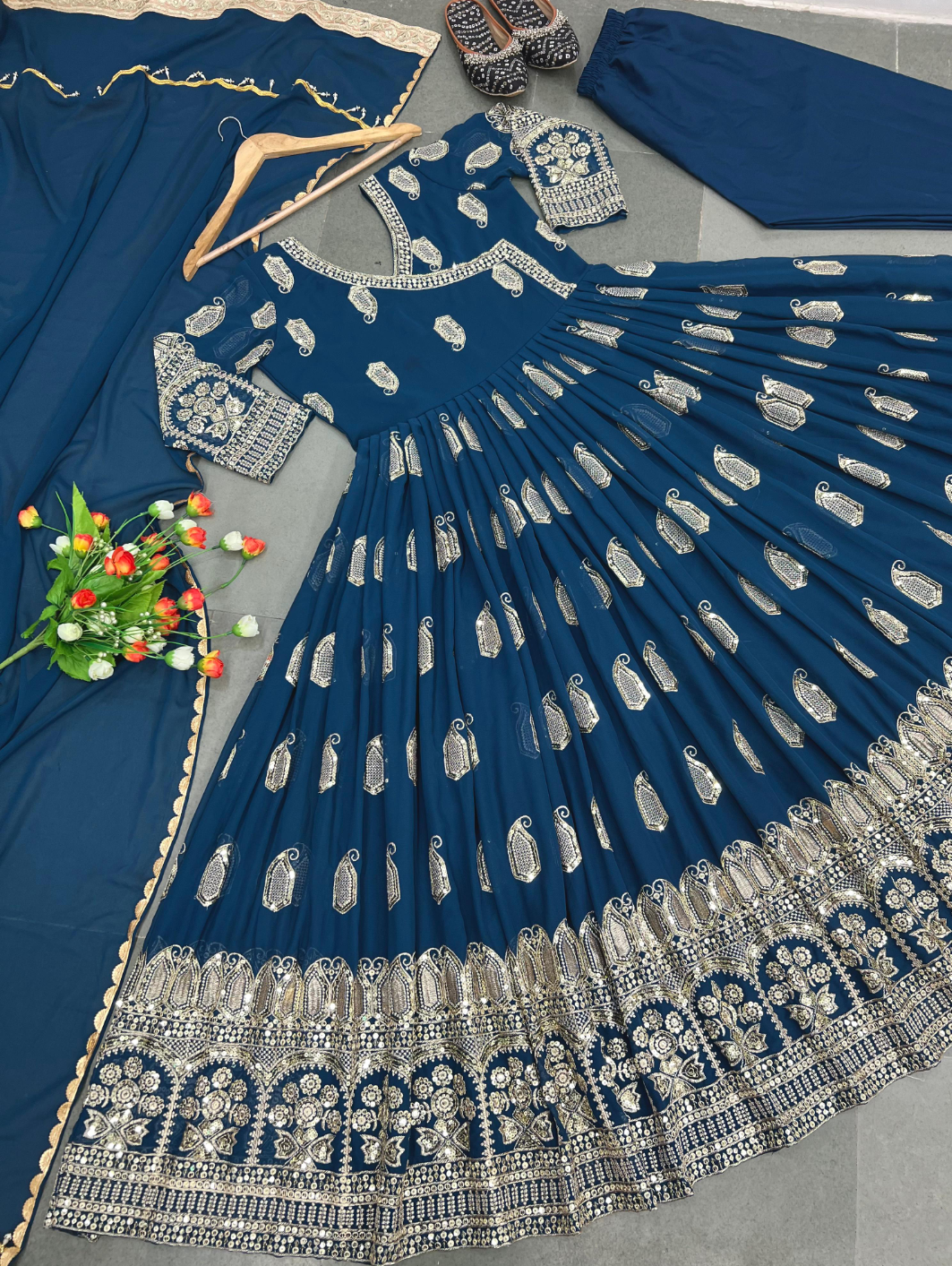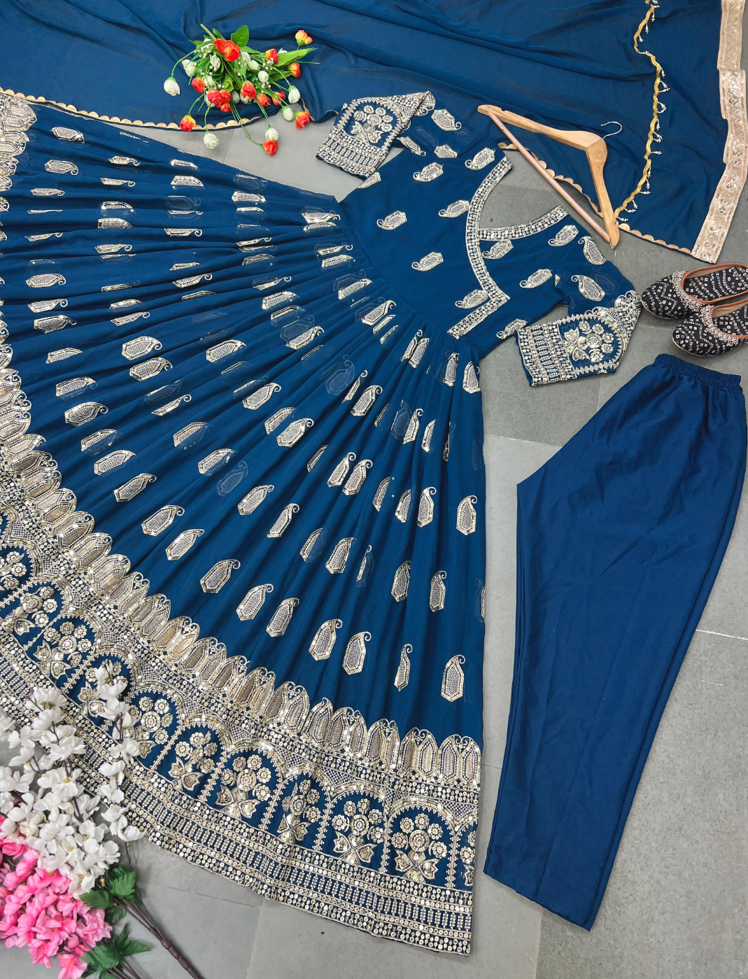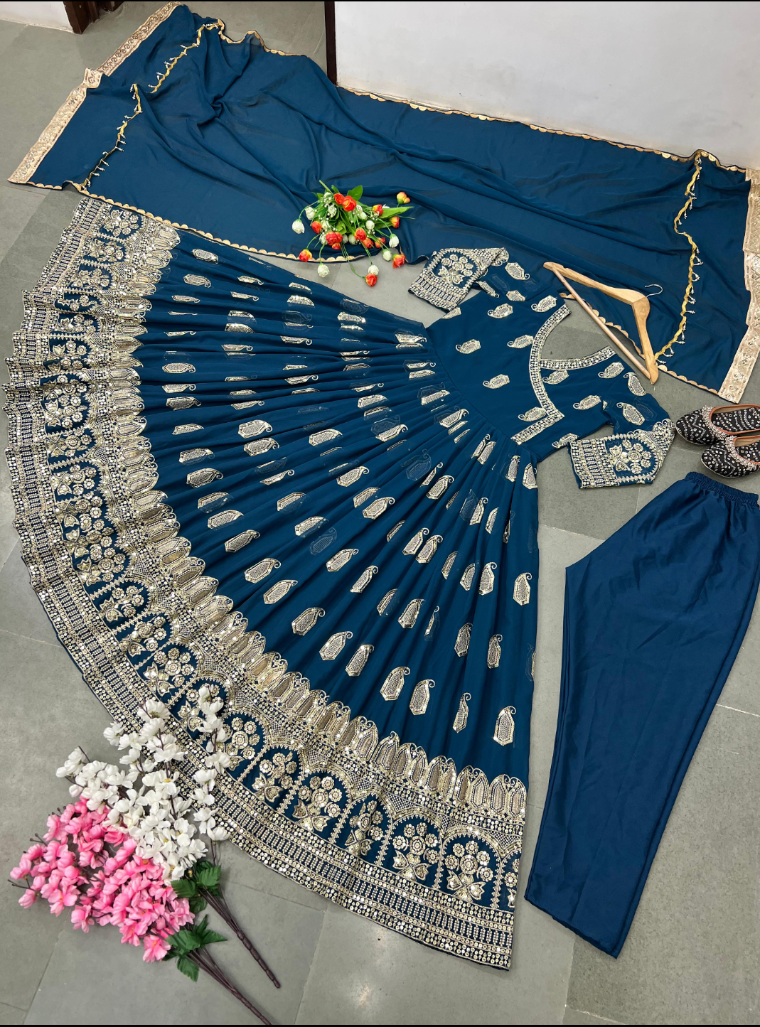 Launching New Designer Party Wear Look Gown, Bottom and Dupatta in Fully Heavy Embroidery Sequence