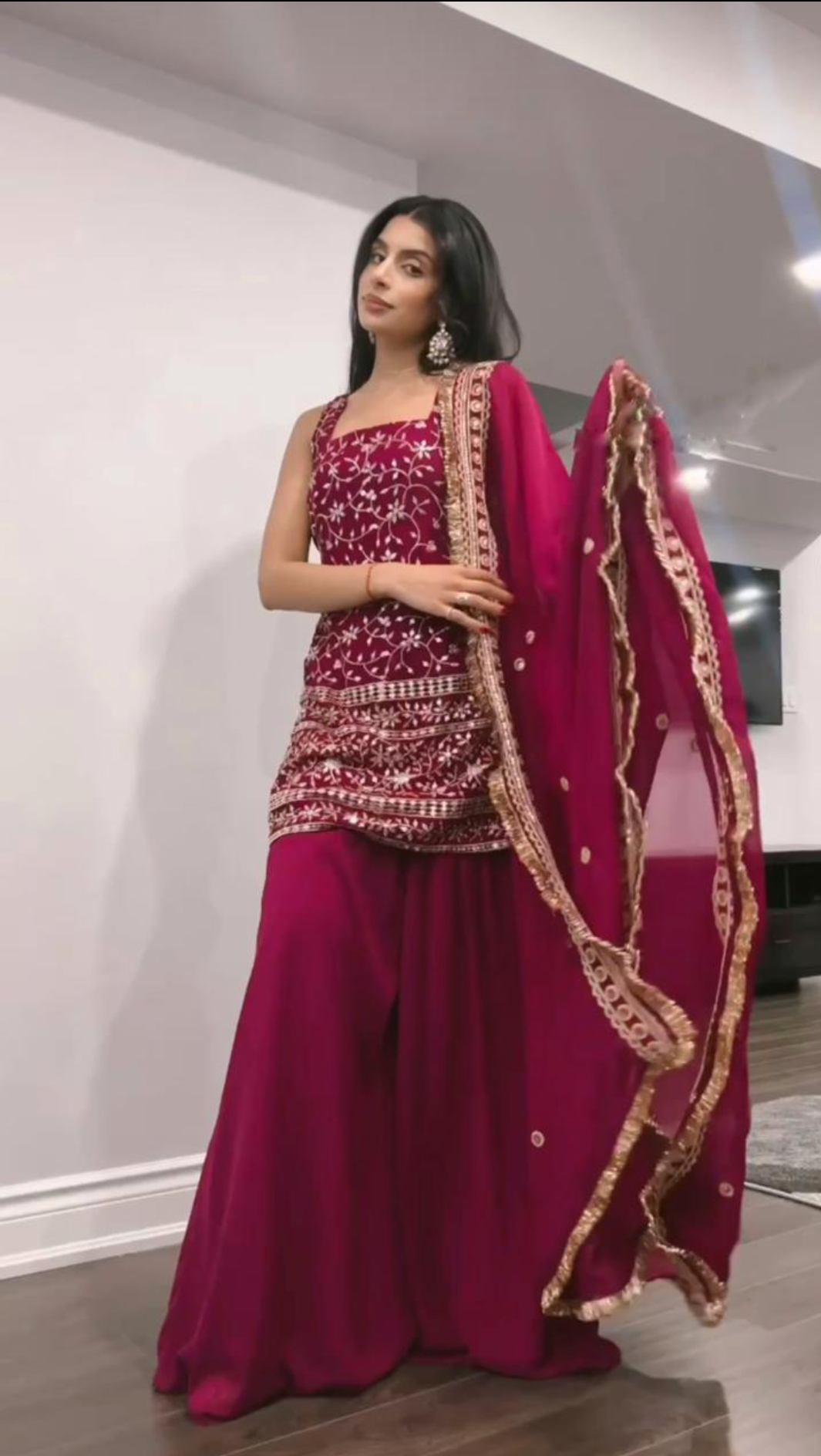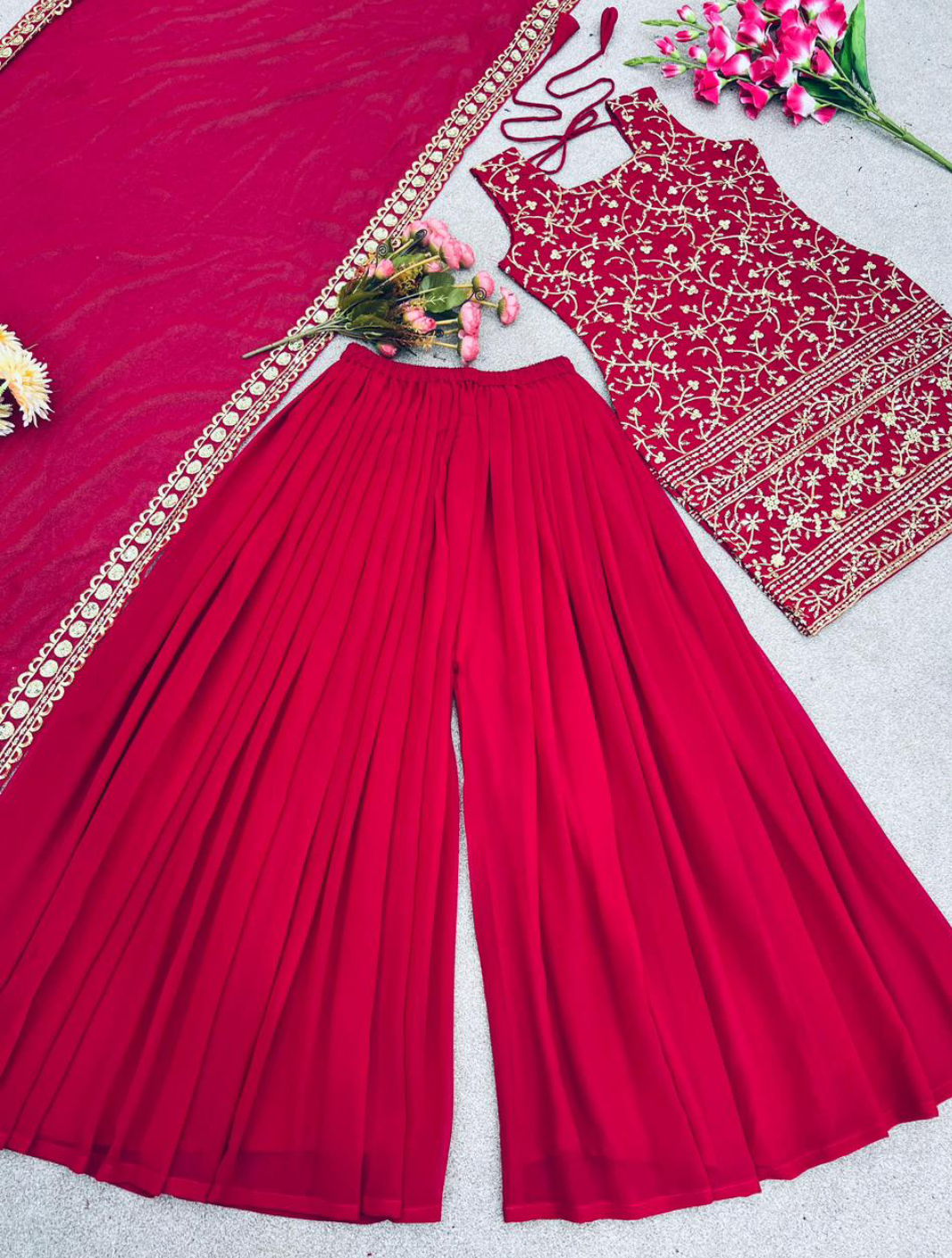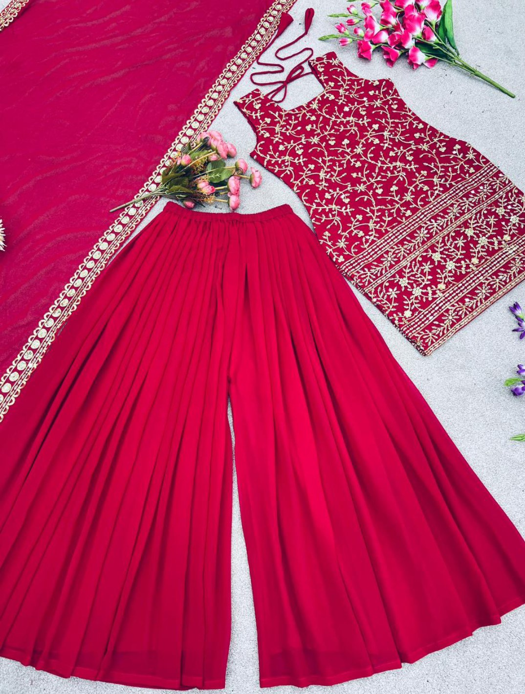 Launching New Designer Party Wear Look New Top-Plazzo and Dupatta With Heavy Embroidery Work