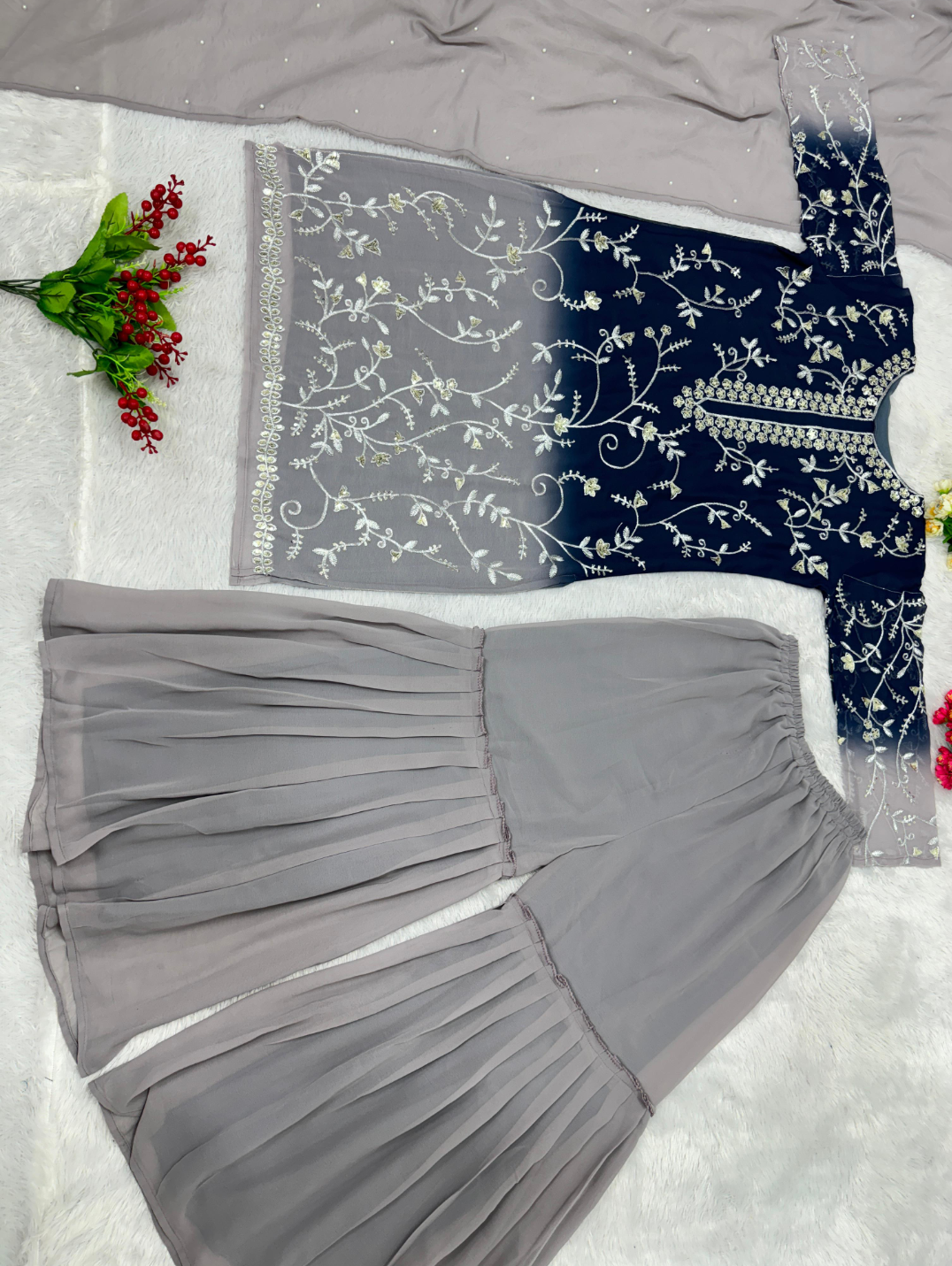 DESIGNER EMBROIDERY SEQUENCES WORK TOP WITH PALAZZO