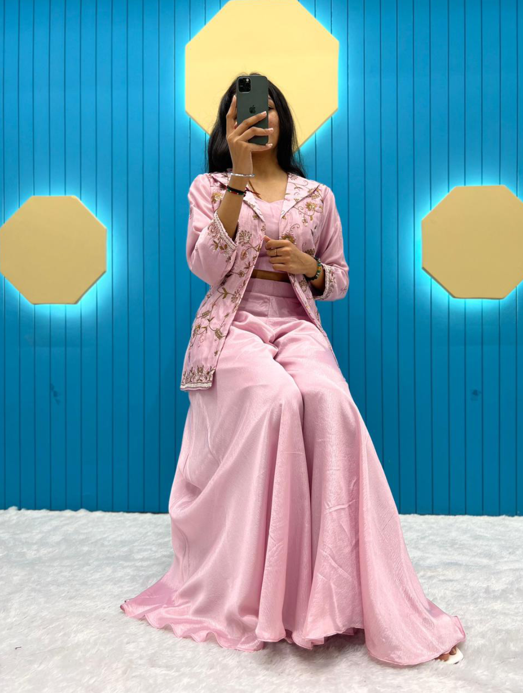 DESIGNER FANCY WESTERN STYLE FIONA SILK CORDDING SEQUENCE WORK BLAZER/KOTI, TUBE