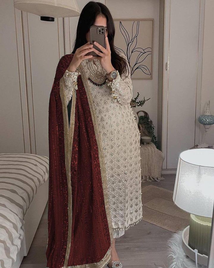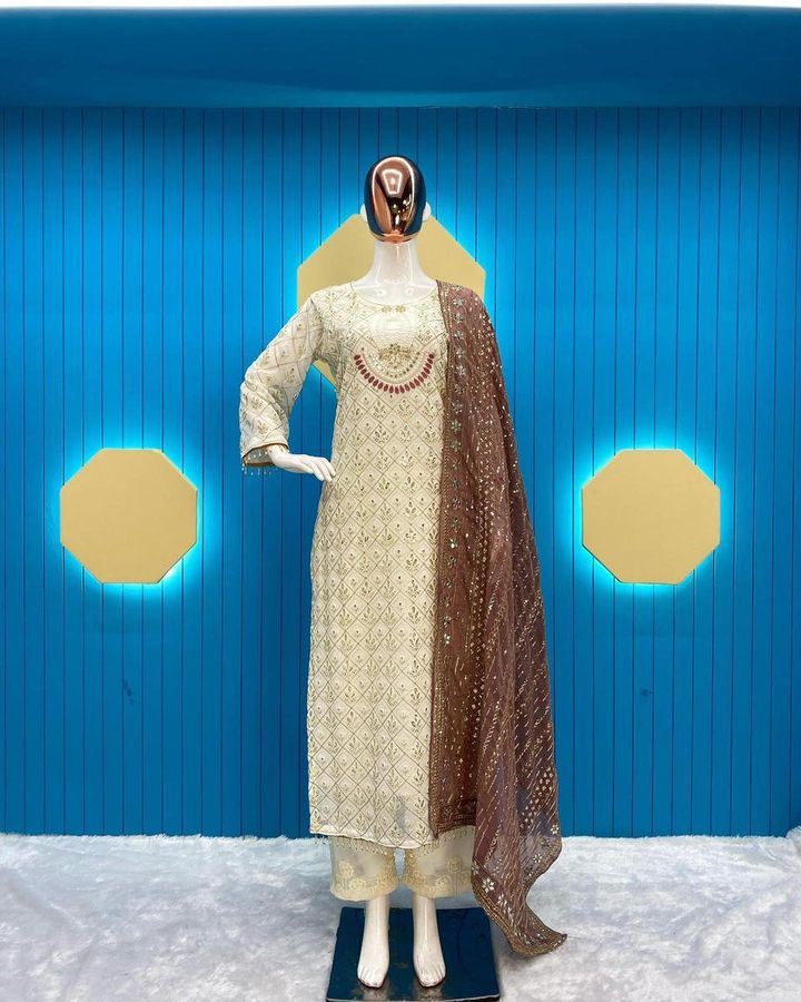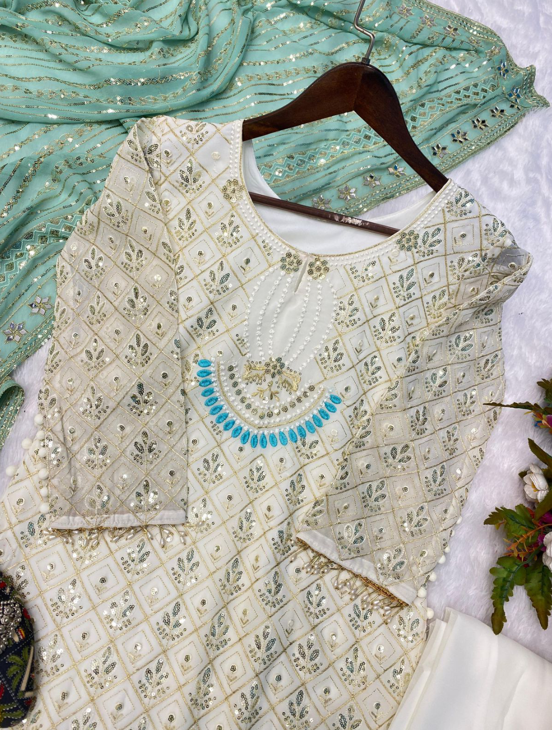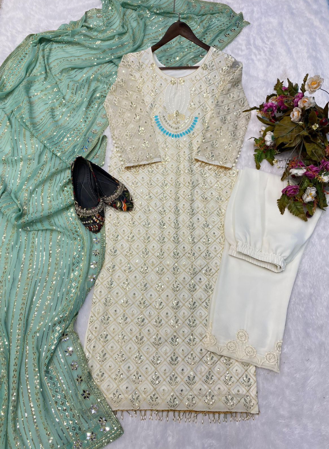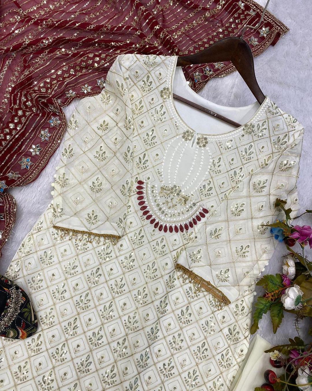 DESIRABLE FANCY GEORGETTE SEQUENCE EMBROIDERED WORK TOP AND PENT WITH DUPATTA