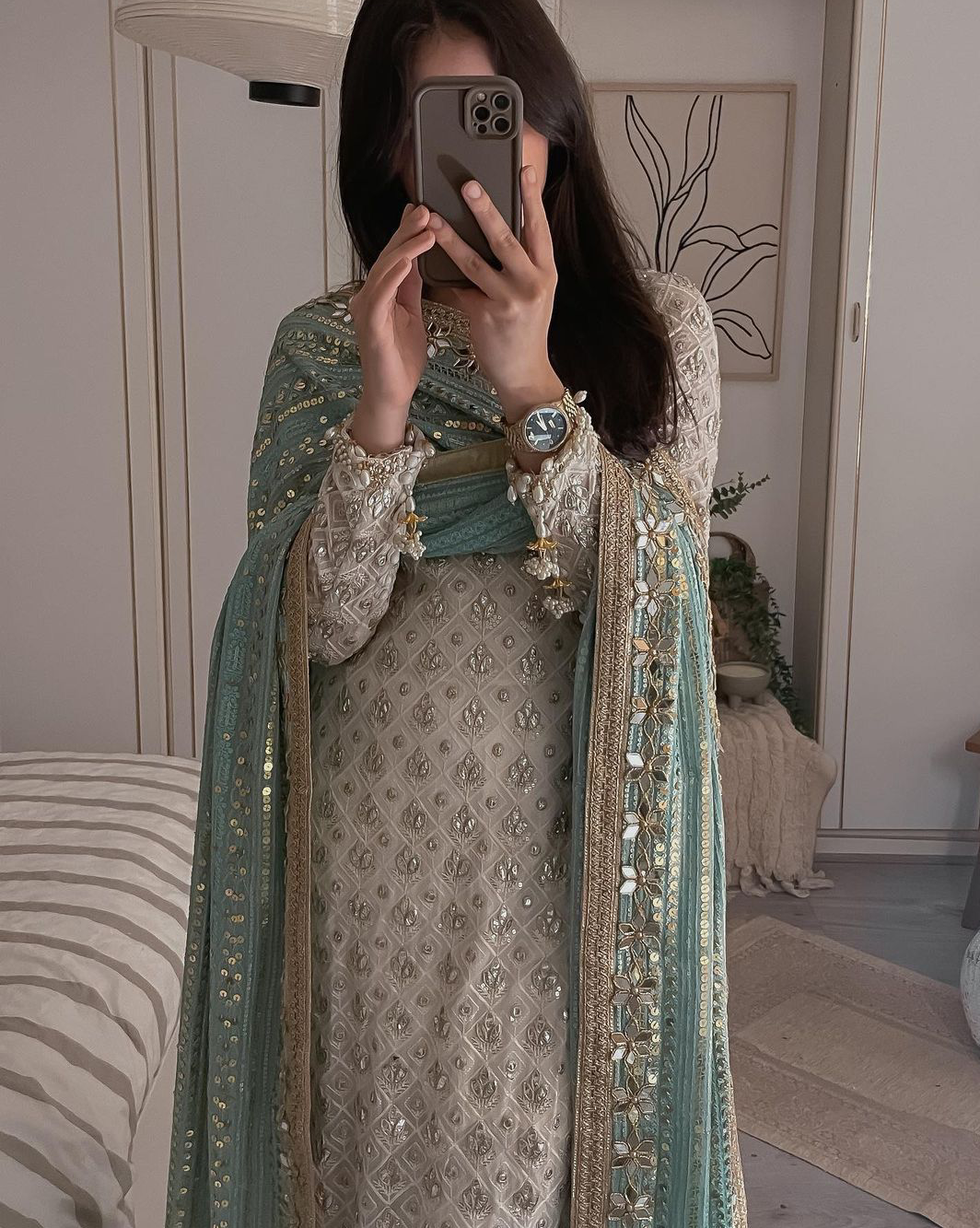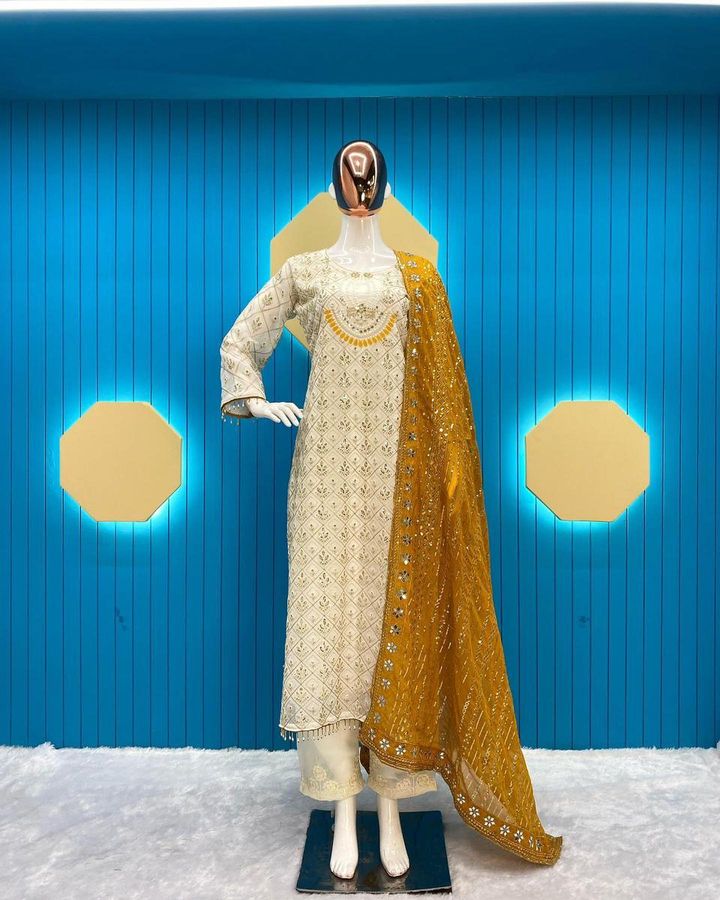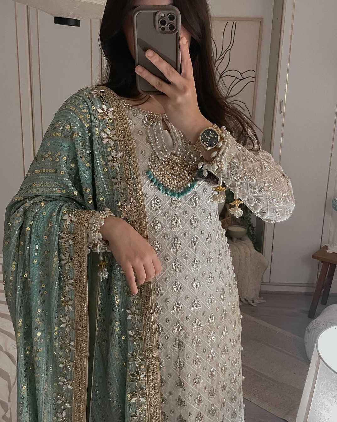 Georgette With Sequence Embroidered And 1000+Real Mirror Dupatta (2.2 mtr)