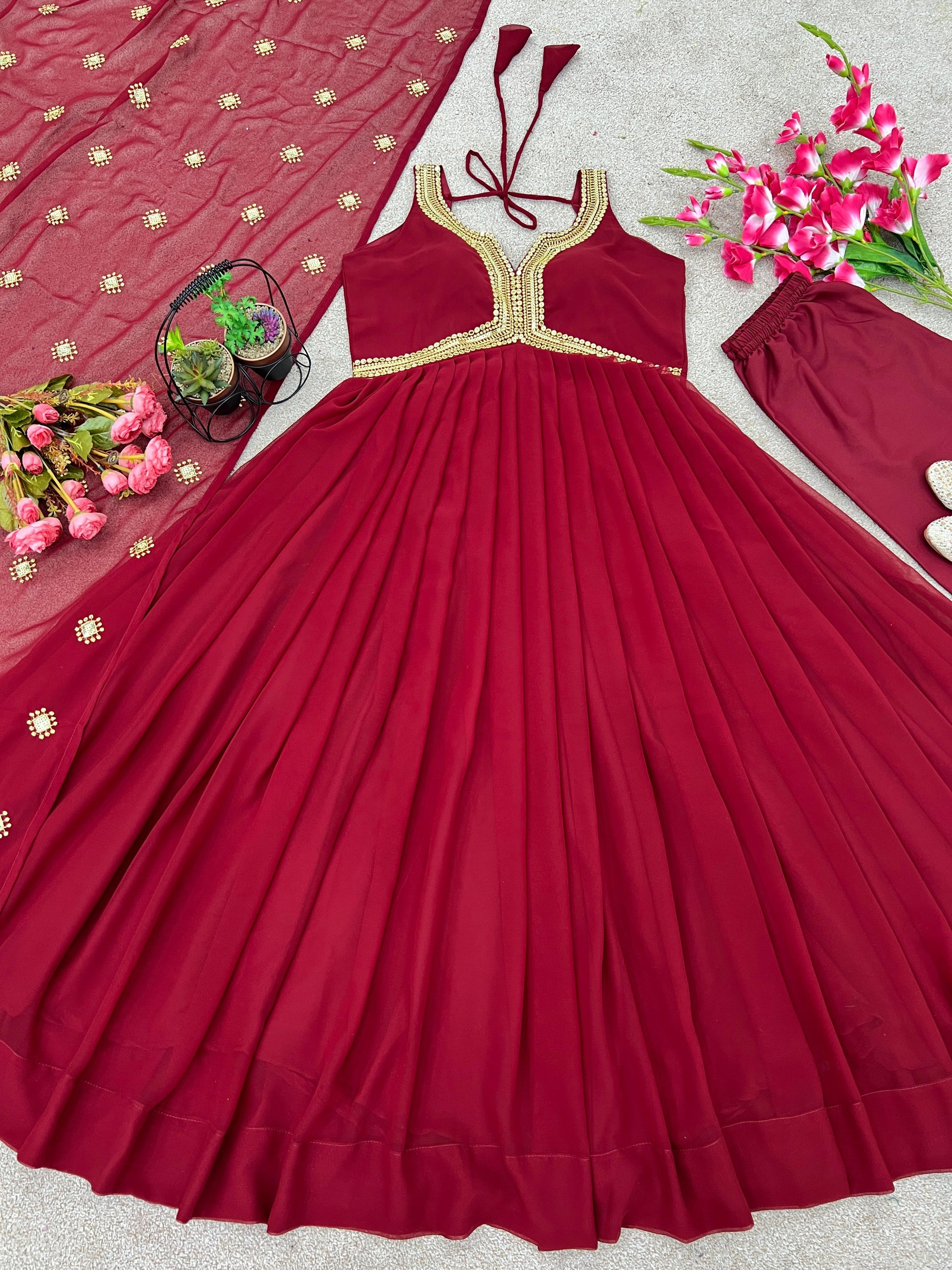 Launching New Designer Party Wear Look Full Heavy Embroidery Sequence Work Gown With Attached Pad and Fully Stiched Bottom and Heavy Dupatta Ready to Wear Collection